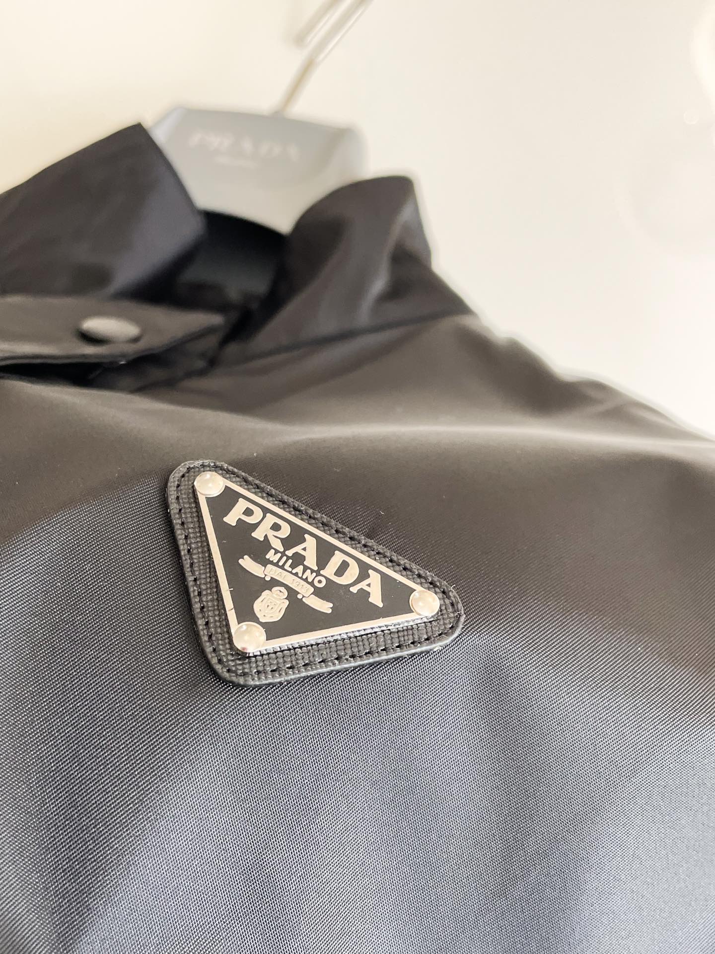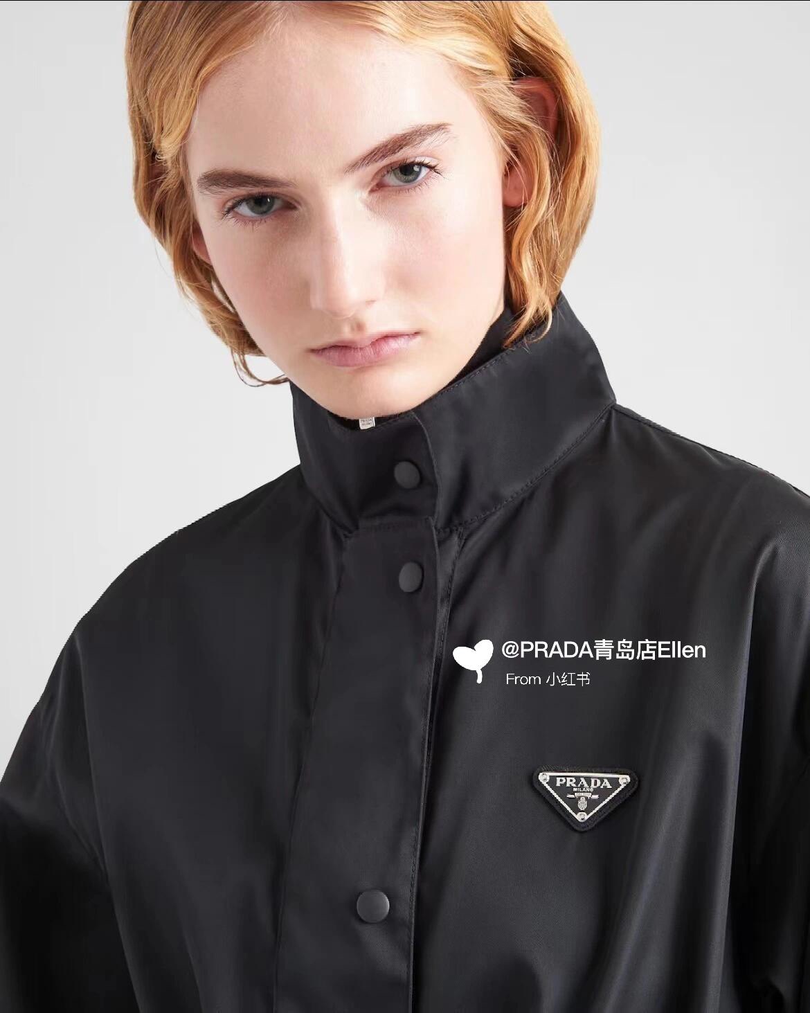 NIGO Prada Women's Fall And Winter Black Logo Collar Nylon Zipper Single Breasted Long Sleeved Jacket #nigo72874