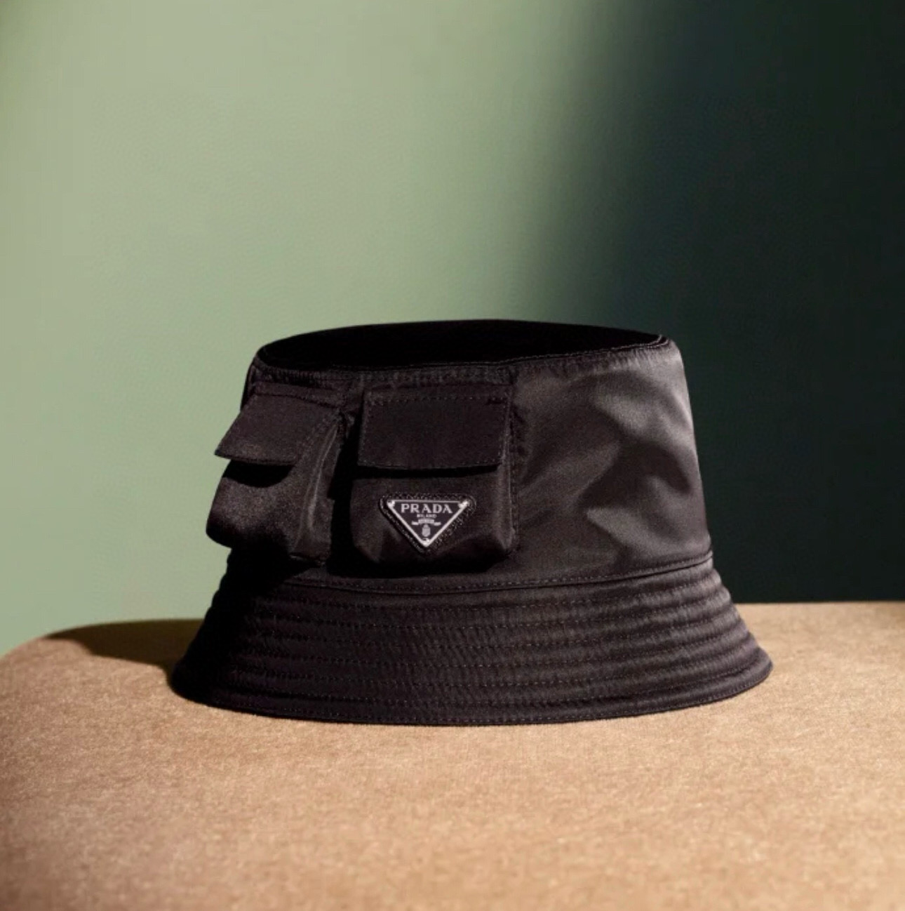 NIGO Prada Men's Black Small Pocket Nylon Triangle Label Fisherman's Hat Cap #nigo98828