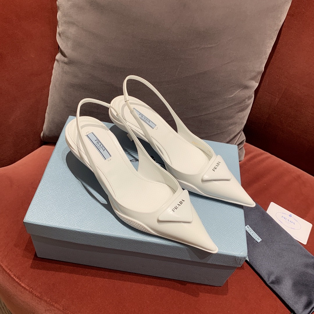 NIGO Prada Women's Triangle Label White Cowhide Fine Heeled High Heels Shoes #nigo98898