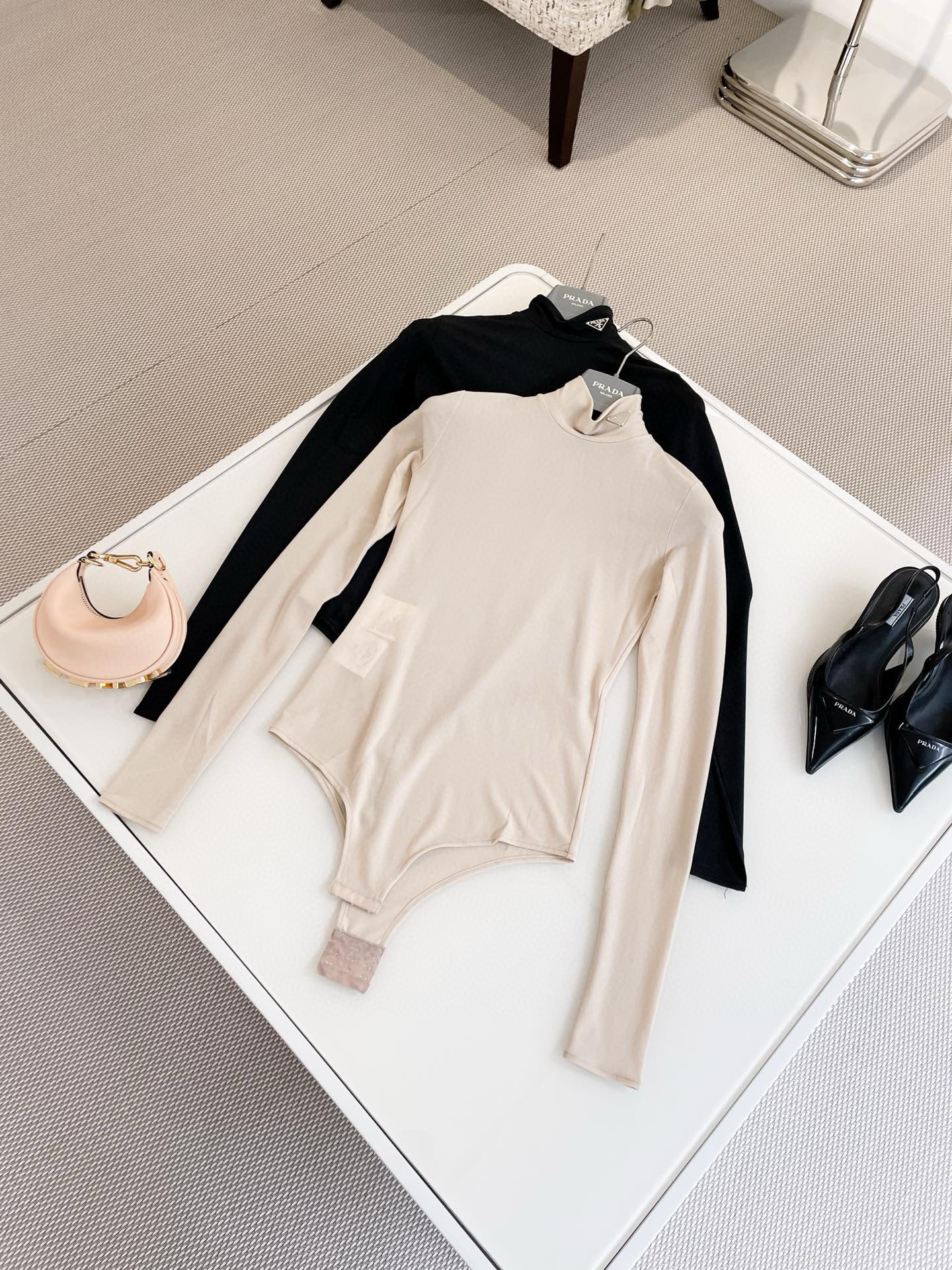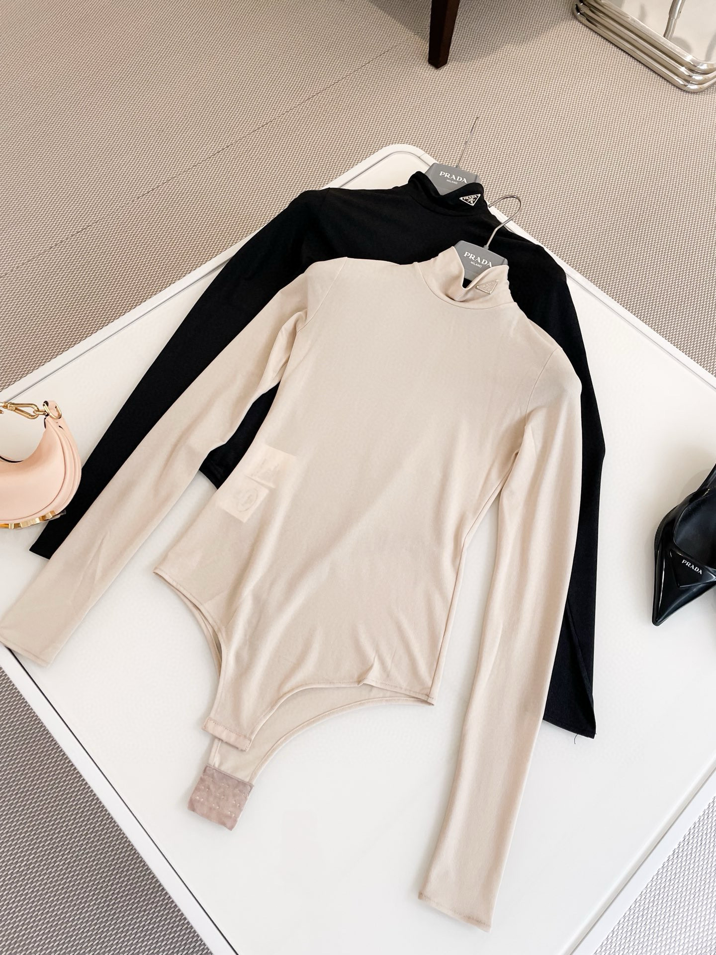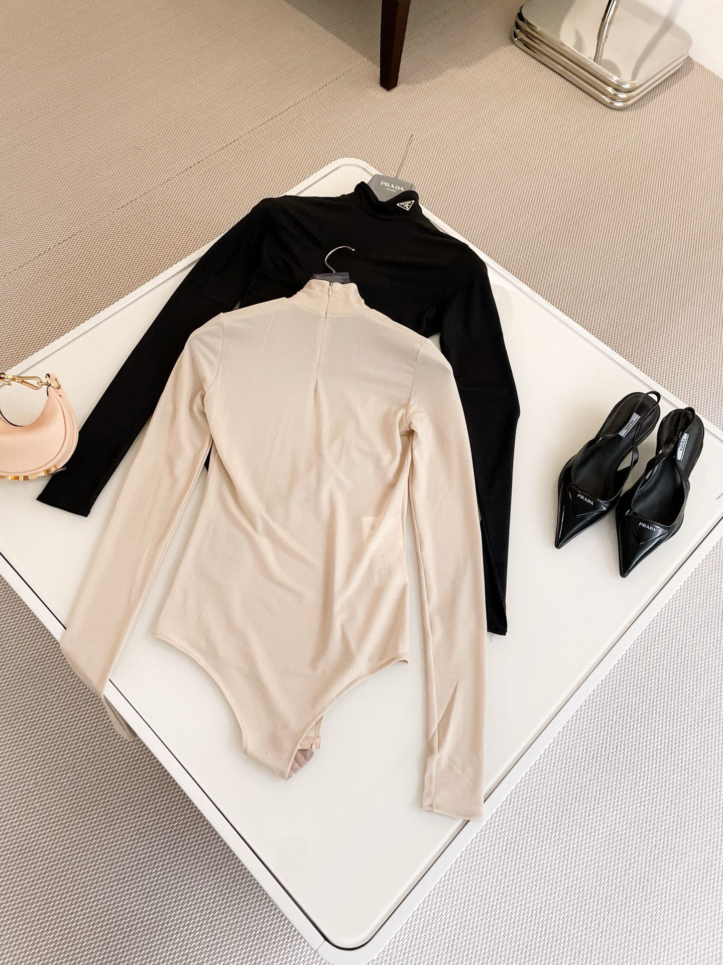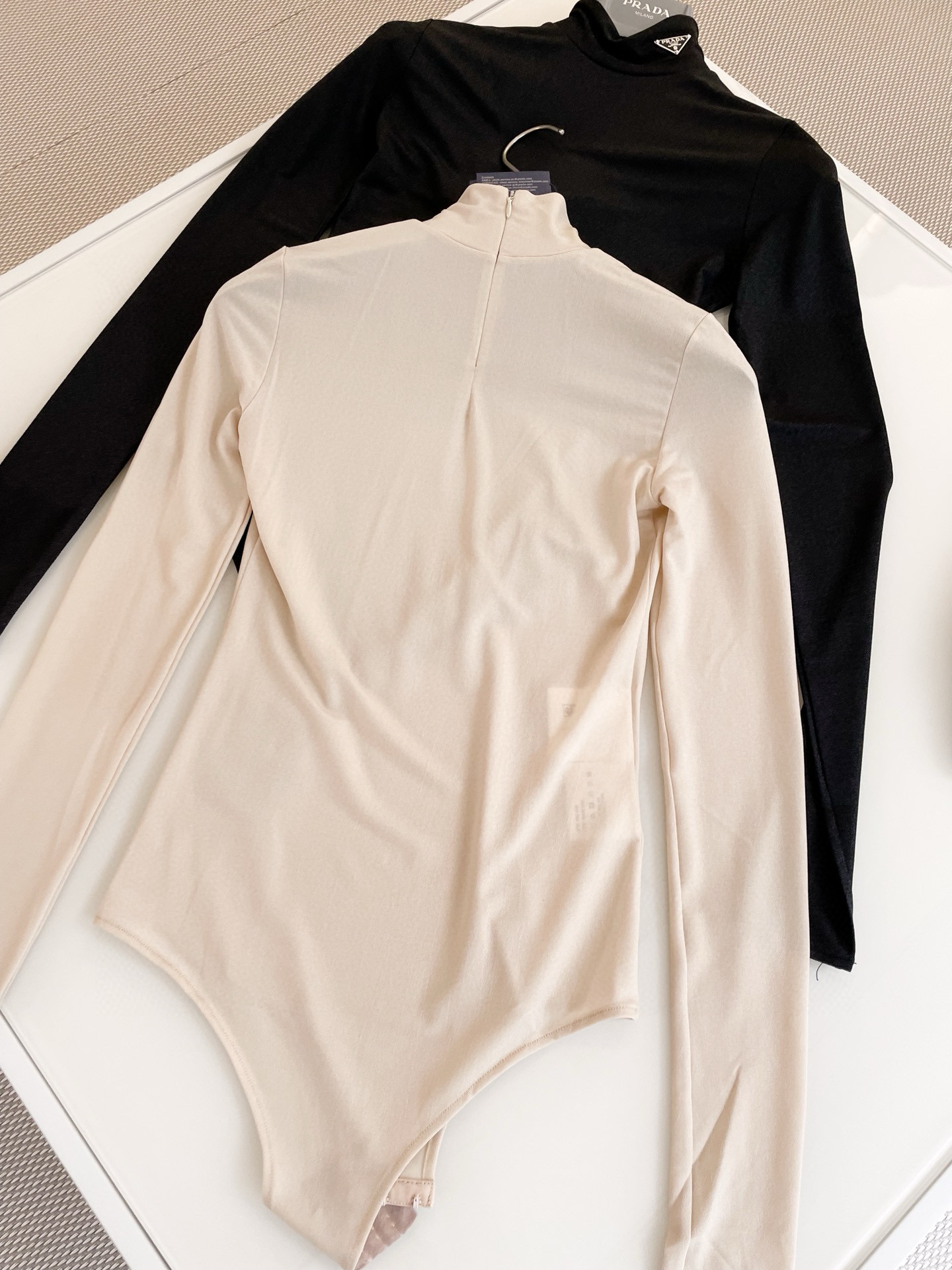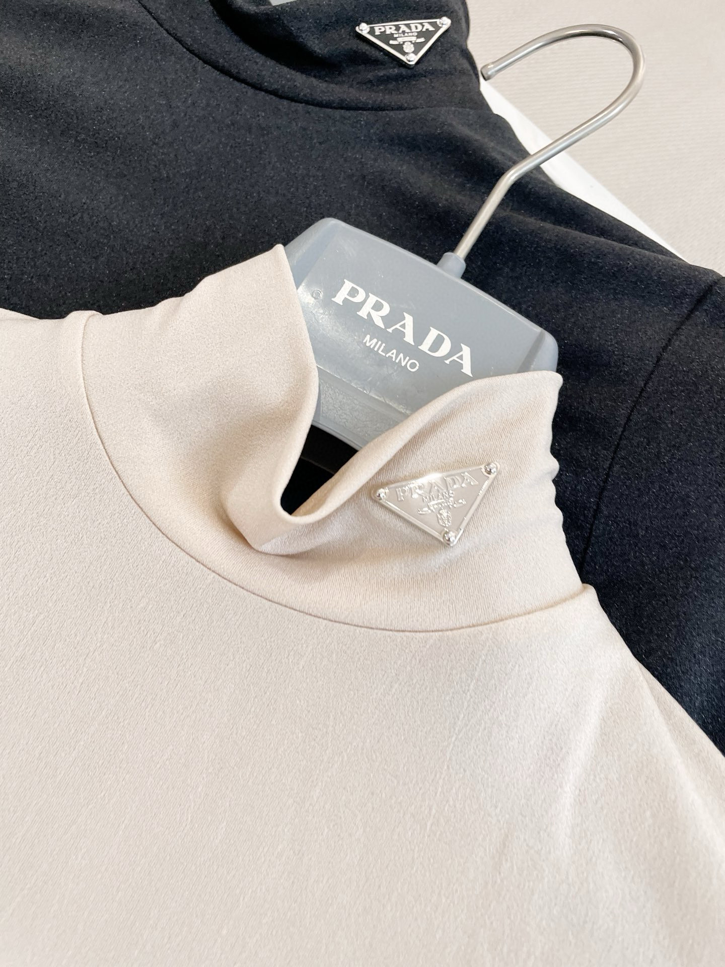 NIGO Prada Women's Spring and Autumn Solid Color High Neck Casual Long Sleeve One-piece Top #nigo98657