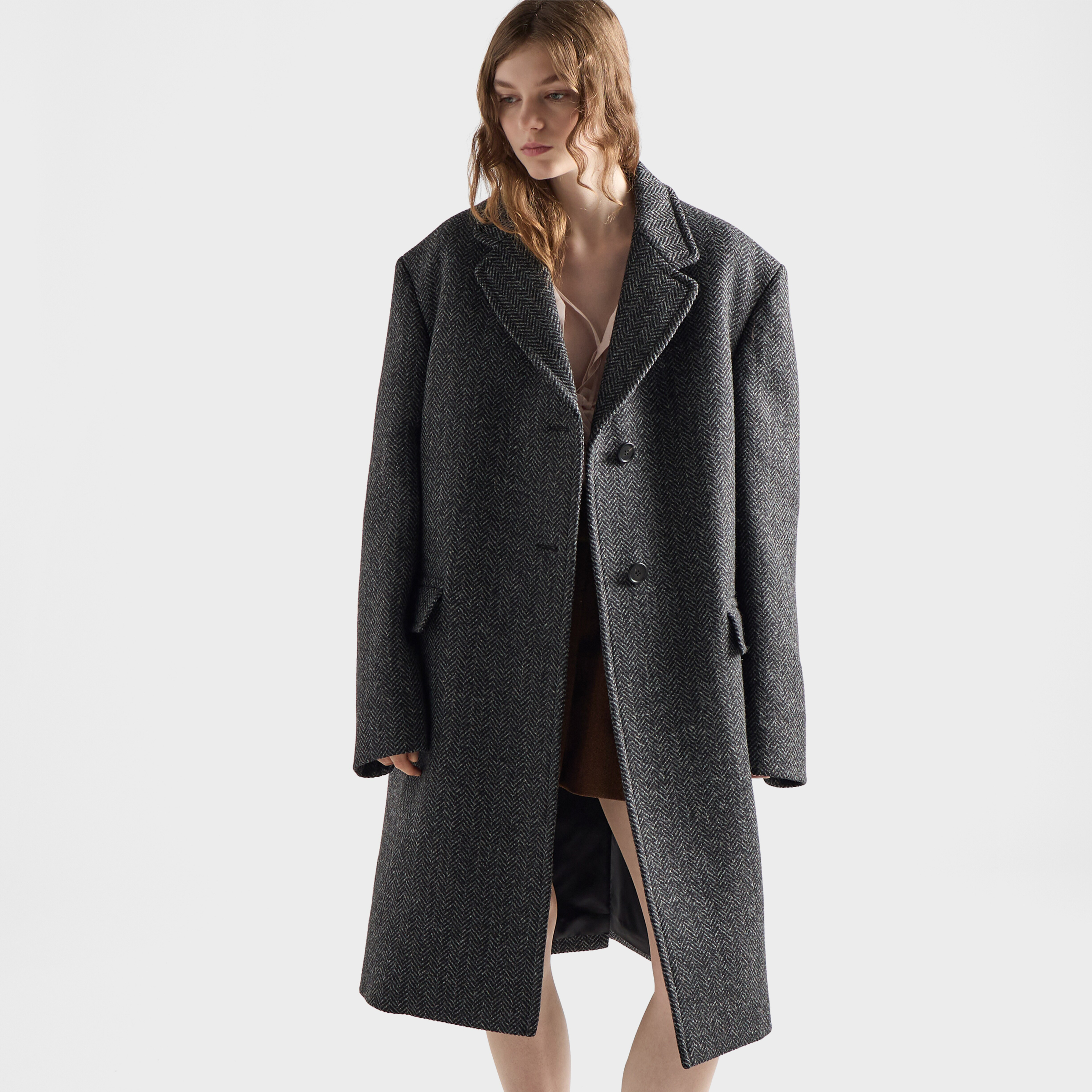 NIGO Prada Women's Fall/Winter Fashion Classic V Neck Single Breasted Herringbone Wool Coat Jacket #nigo78862