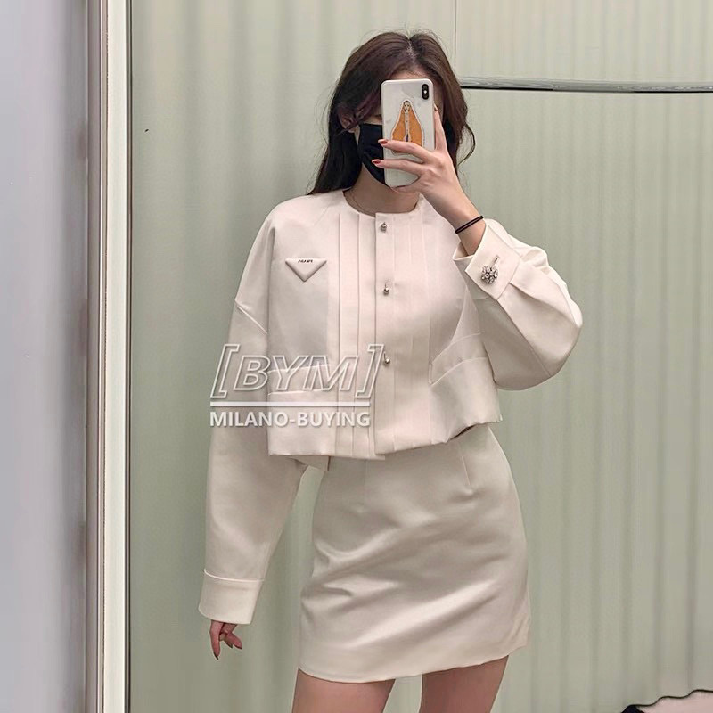 Prada NIGO Pleated Pearl Short Jacket Short Skirt Set Suit #nigo57437