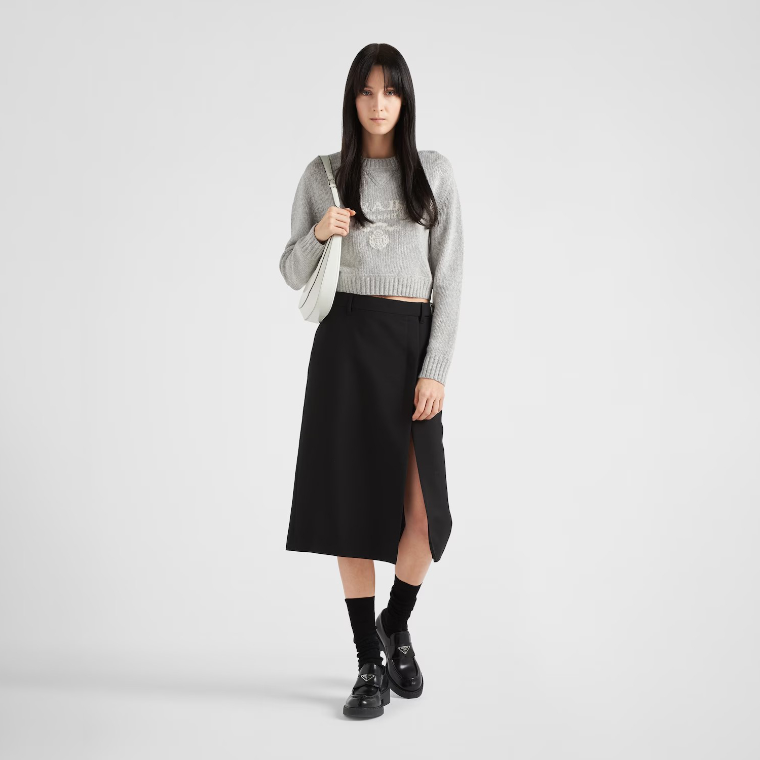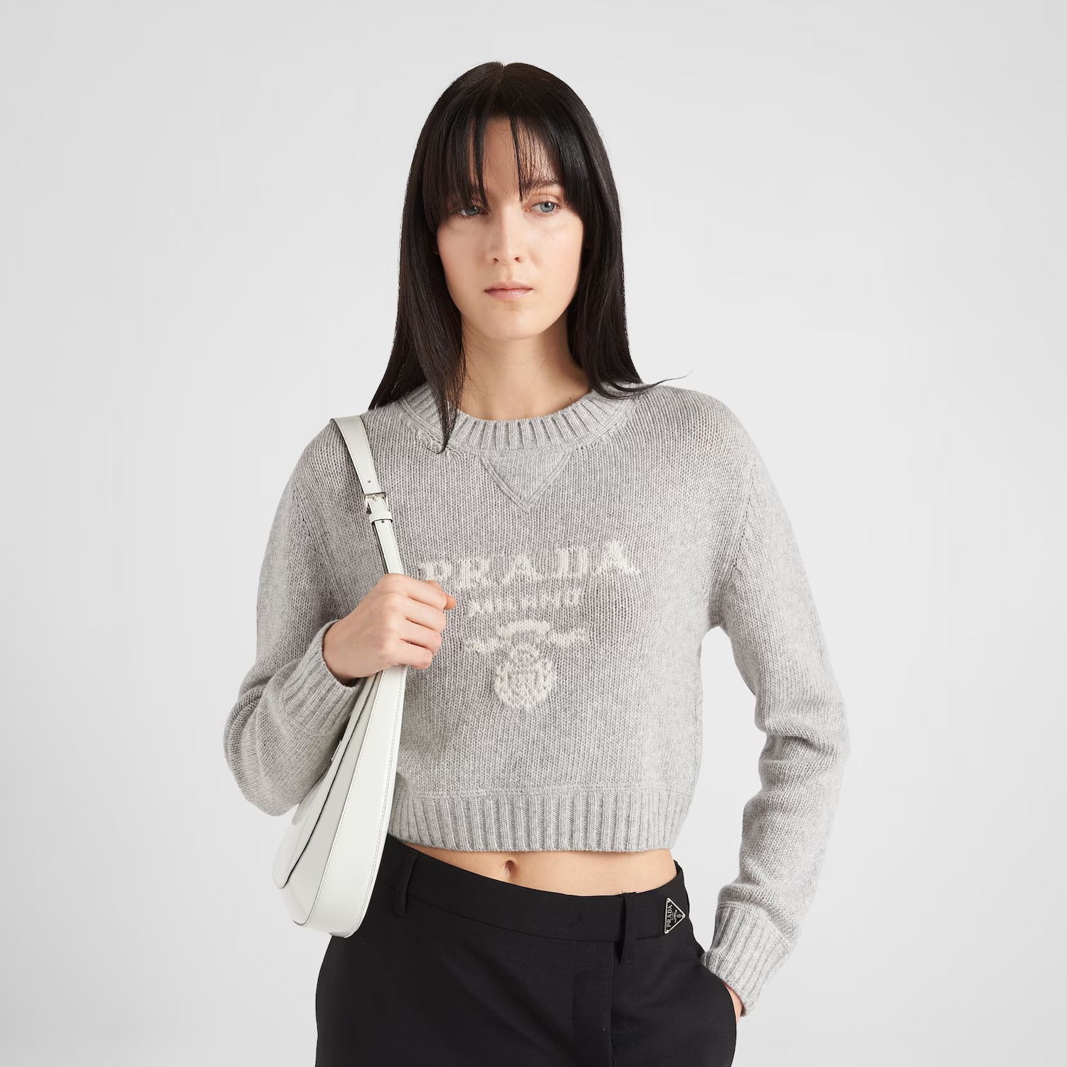 Prada NIGO Woman Grey Letter Long Sleeved Short Knit Sweater #nigo21533
