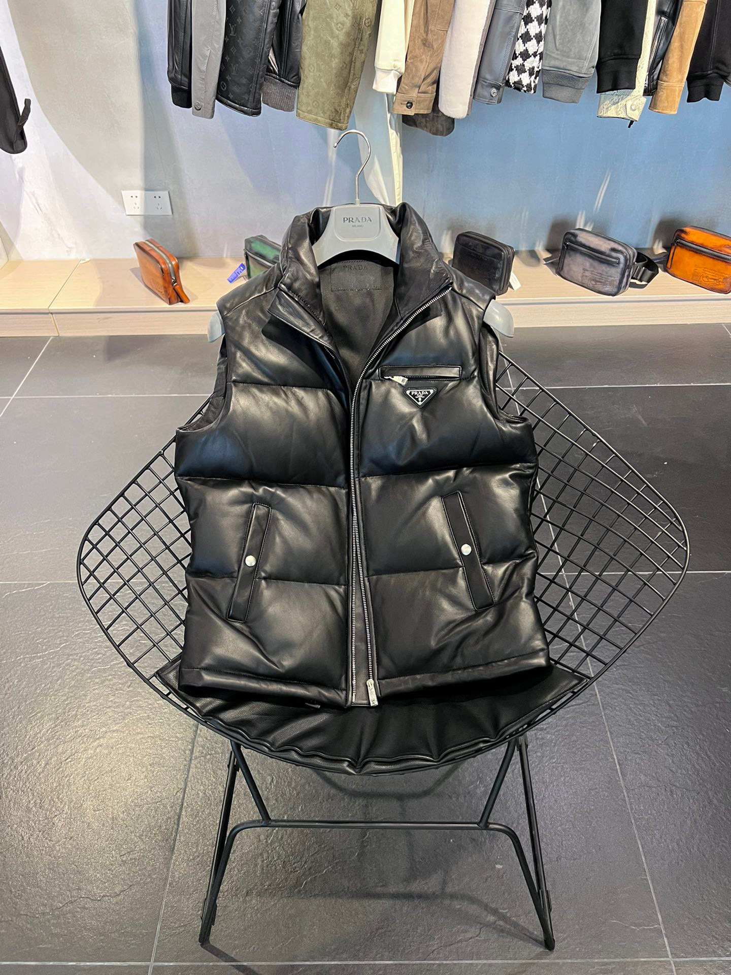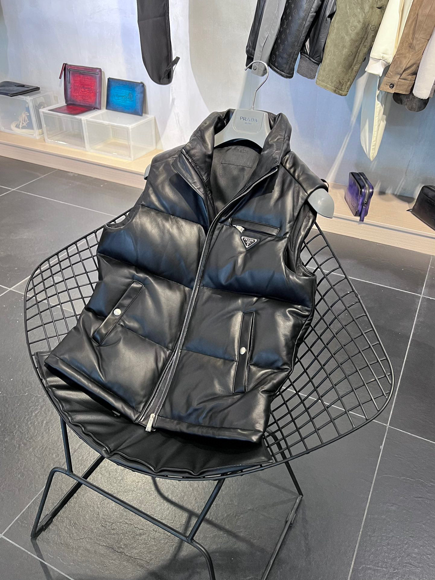 Prada NIGO Man Leather Down Vest Jacket #nigo9789