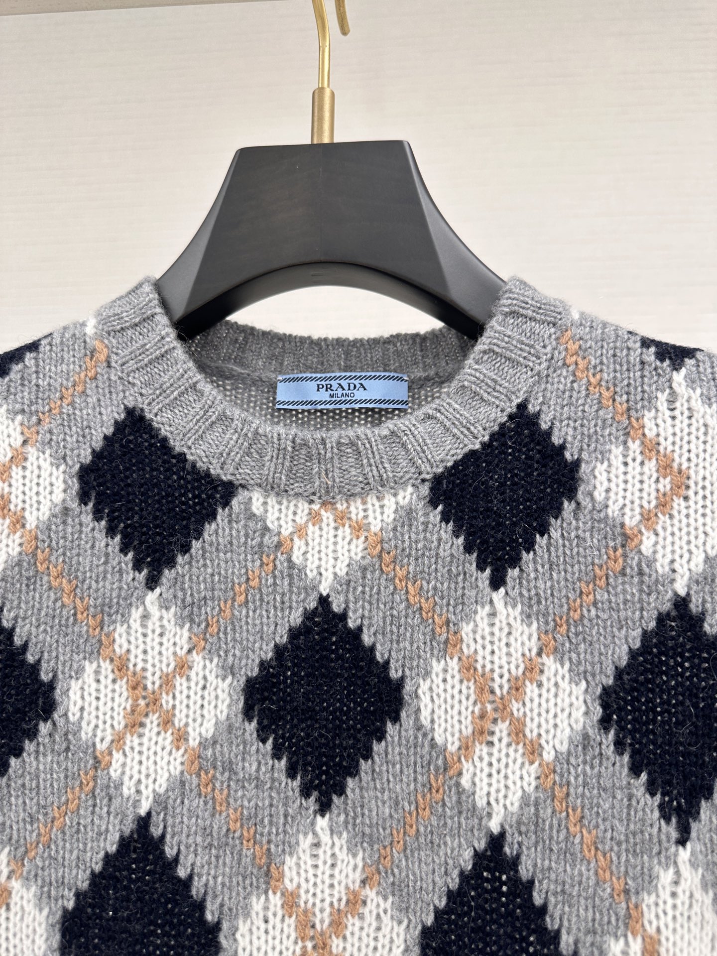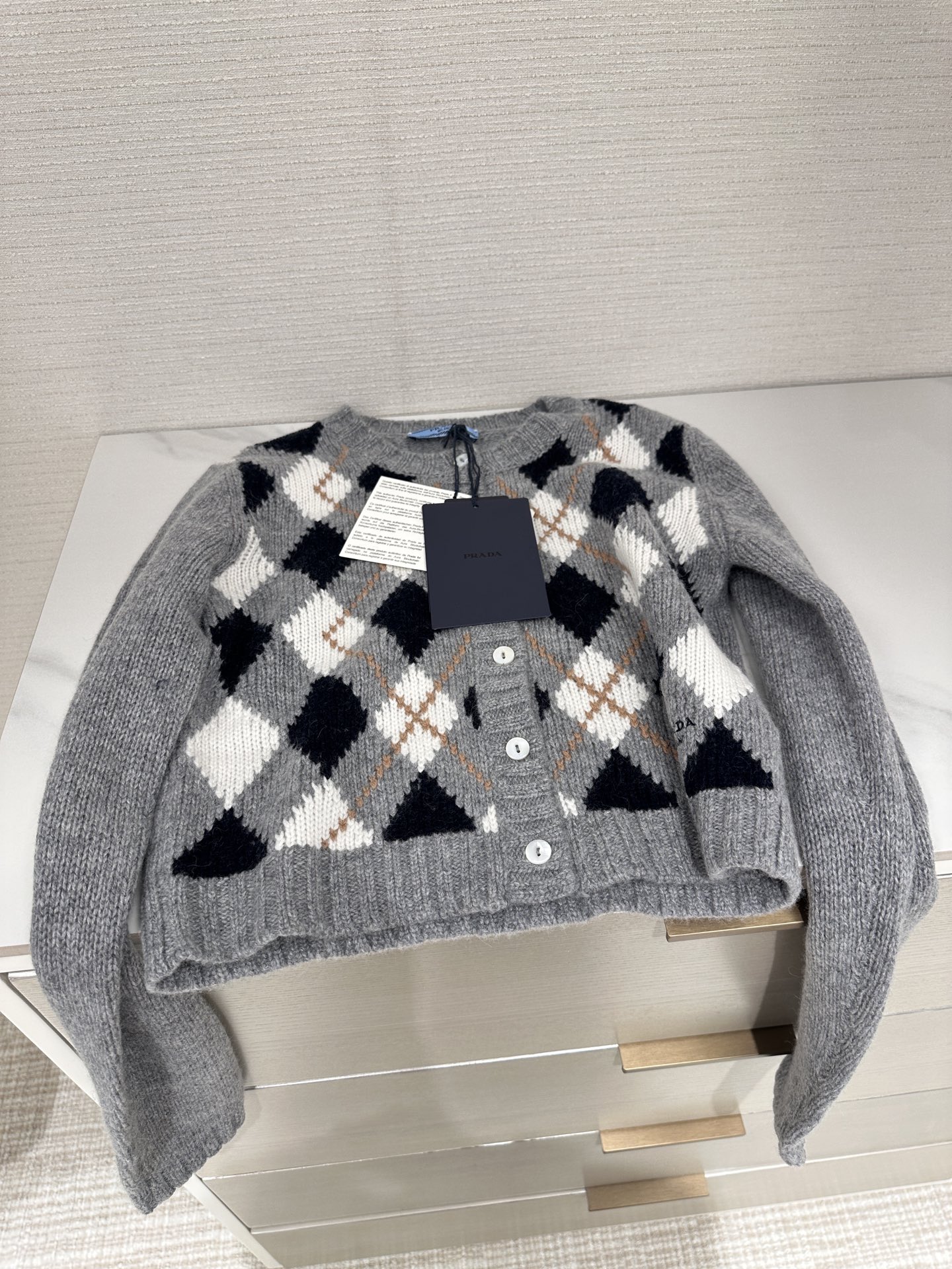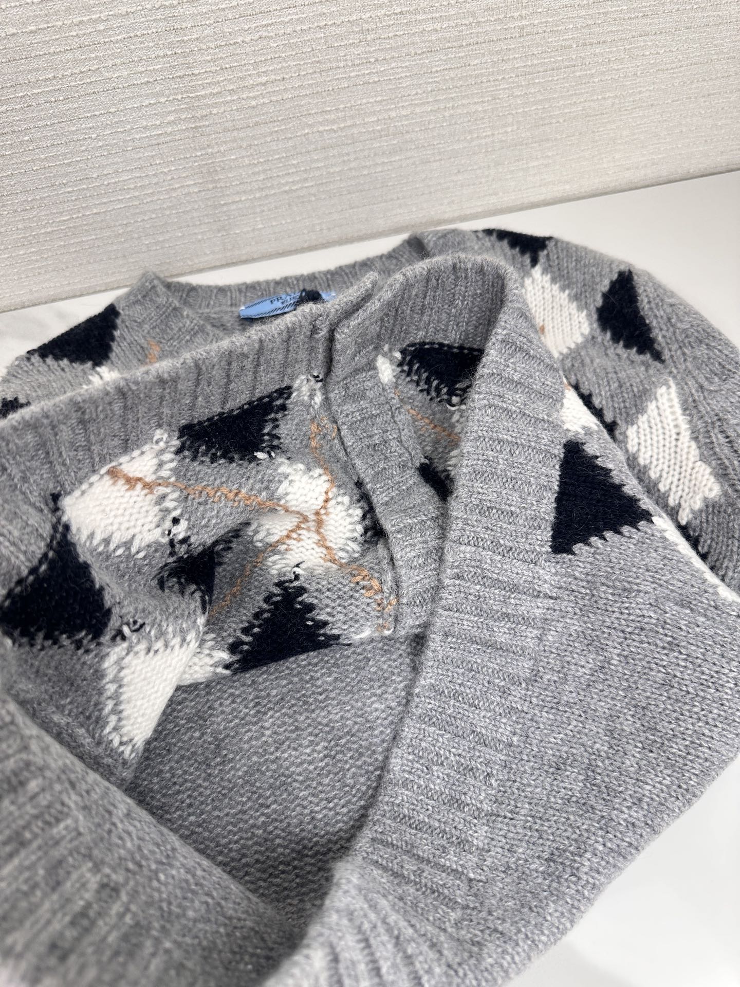 NIGO Prada Women's Spring/fall Fashion Casual Crew Neck Single-button Diamond Pattern Long-sleeve Cardigan #nigo78467