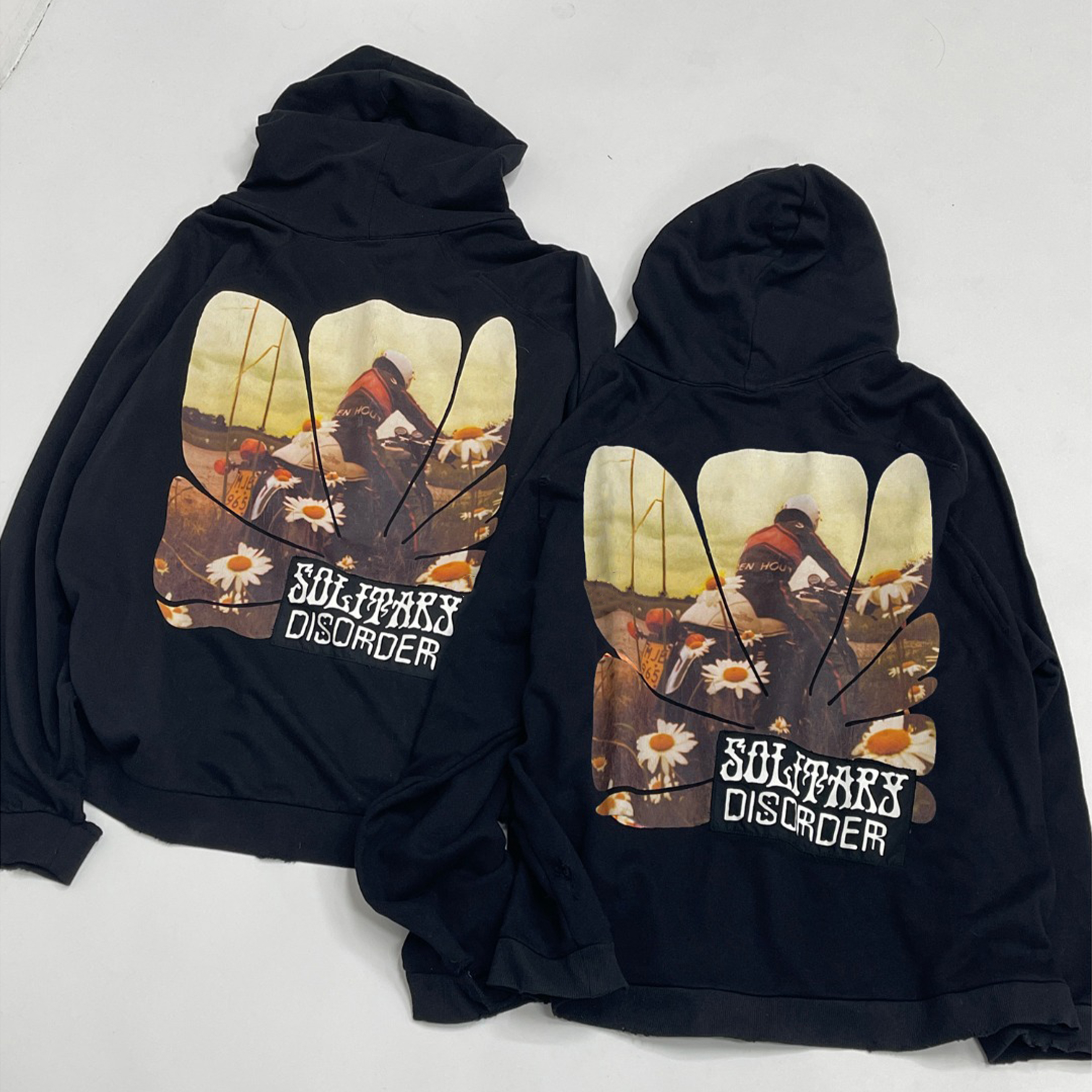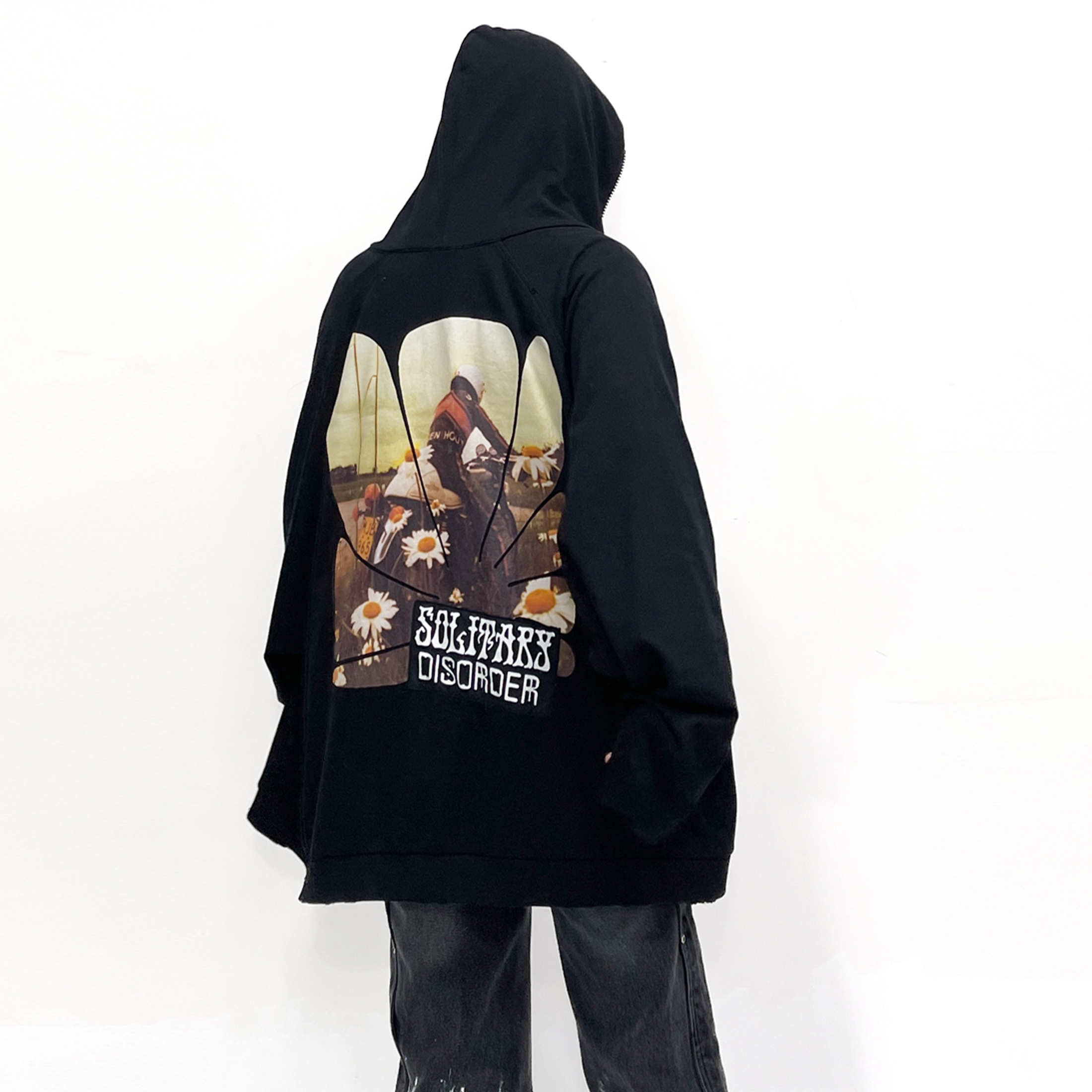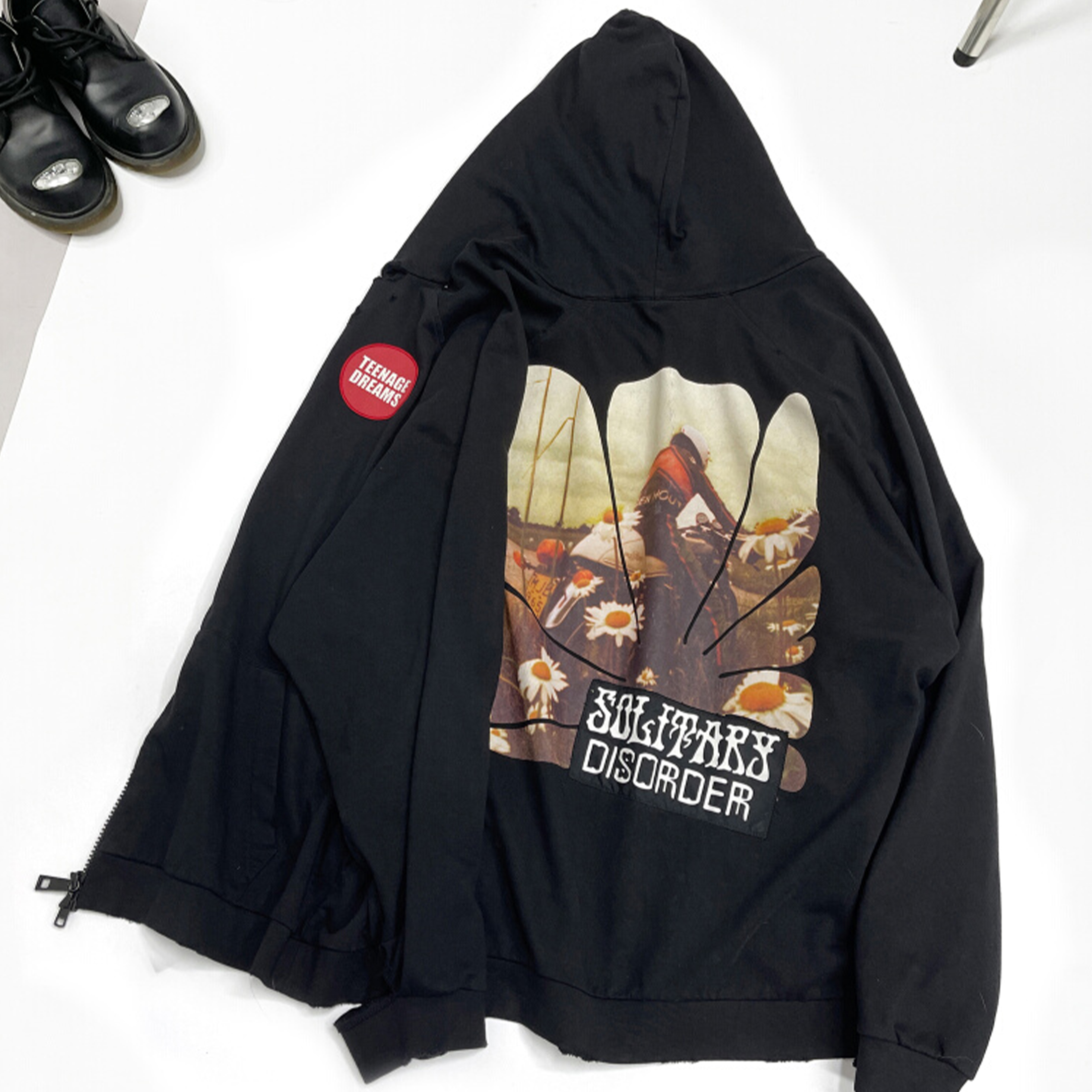 NIGO Raf Simons Men's Spring And Autumn Badge Sunflower Motorcycle Printing Loose Hole Breaking Sweatshirt Jacket High Street Fashion Zipper Sweatshirt Jacket Ngvp #nigo1643