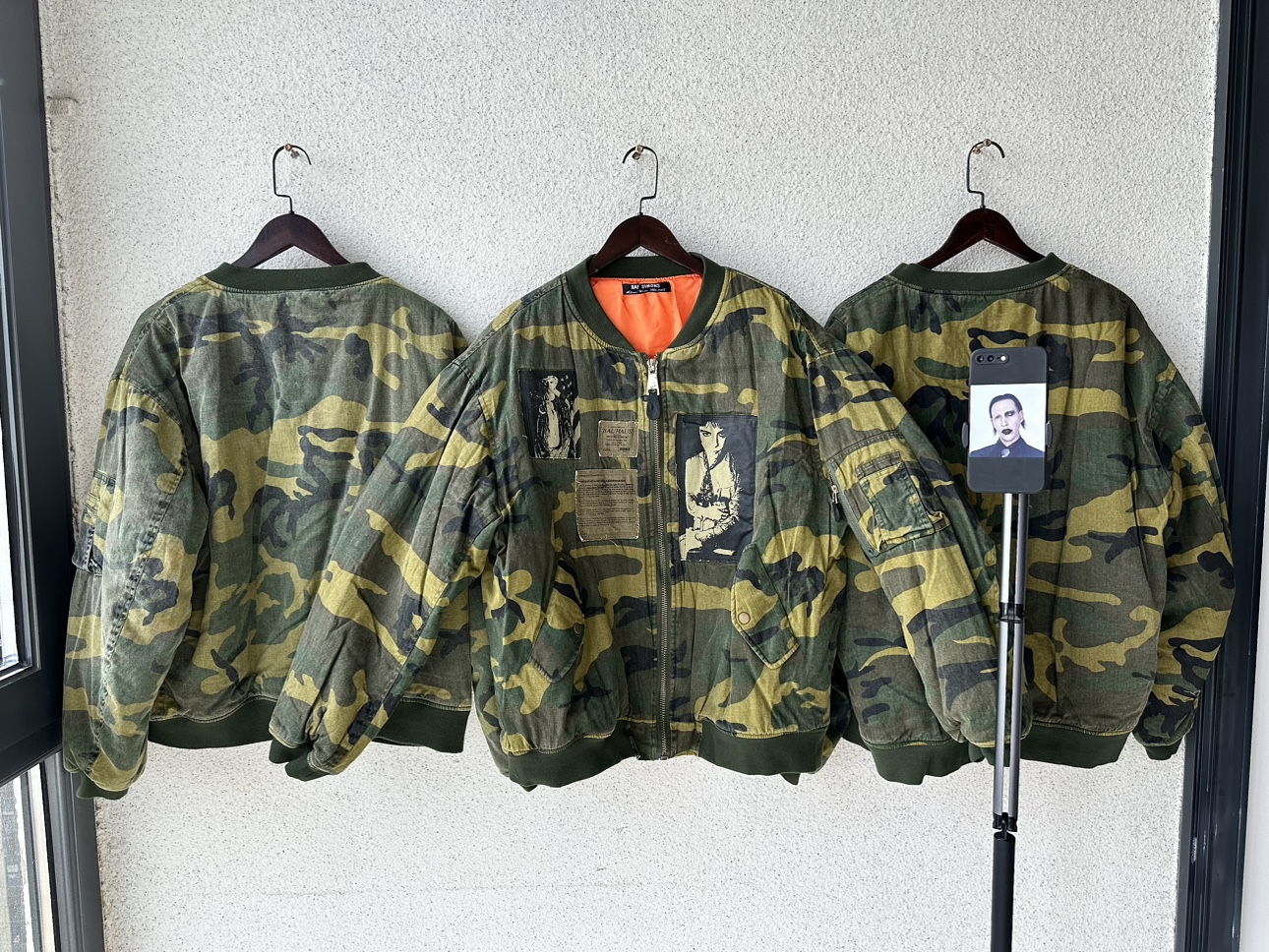 NIGO Raf Simons Men's Fall And Winter Bomber Camouflage Patch Ma1 Aviator Jacket Zipper Long Sleeve Cotton Jacket #nigo74728
