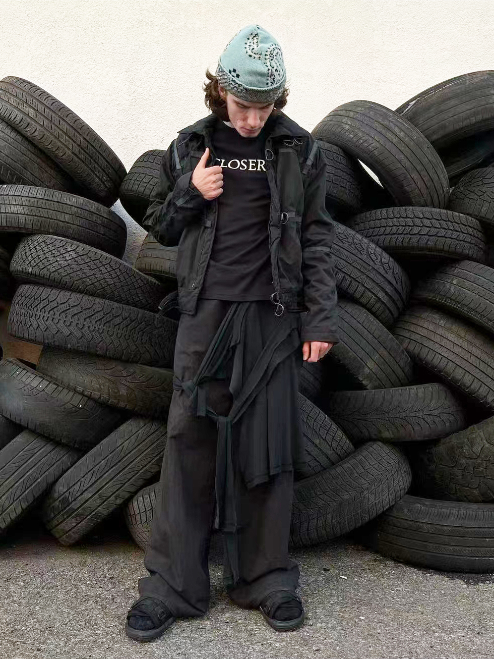 NIGO Raf Simons Men's Four Seasons Solid Color Splicing Do Old Loose Wide-Leg Pants Cotton Casual Straight Pants Ngvp #nigo1664