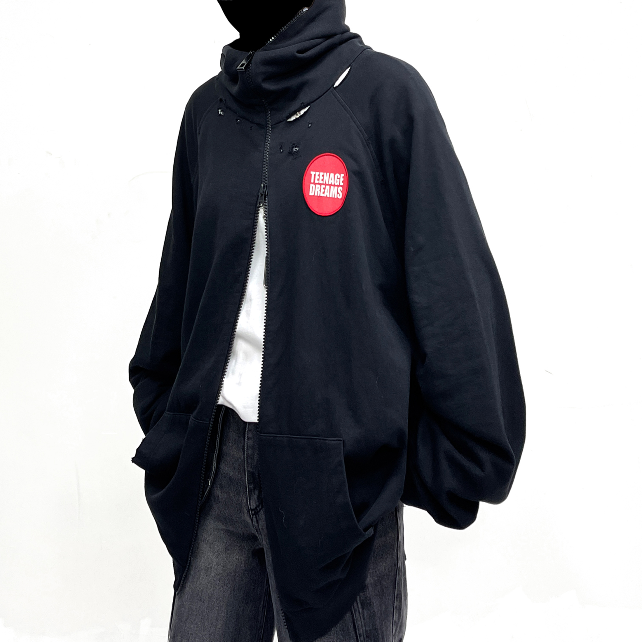 NIGO Raf Simons Men's Spring And Autumn Badge Sunflower Motorcycle Printing Loose Hole Breaking Sweatshirt Jacket High Street Fashion Zipper Sweatshirt Jacket Ngvp #nigo1643