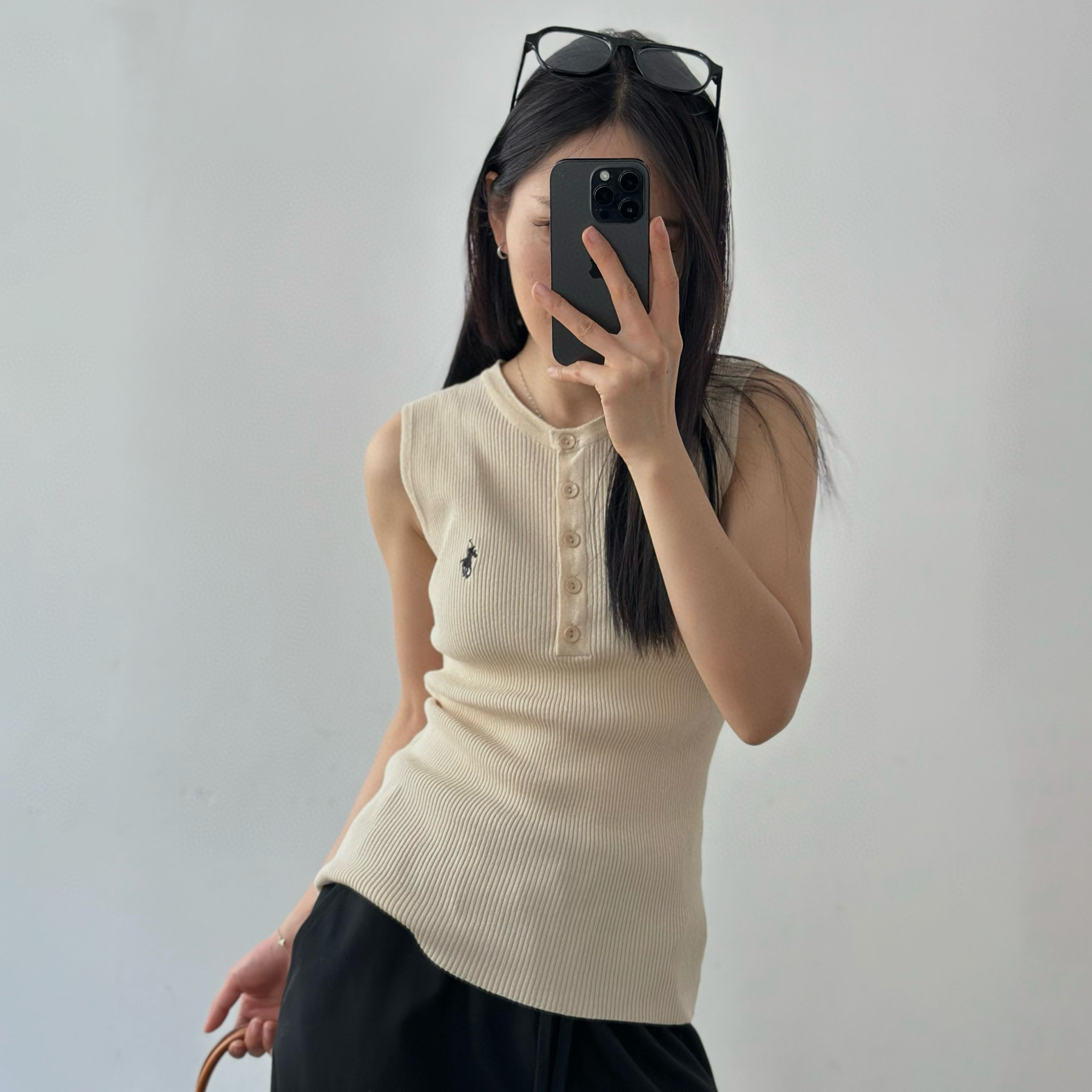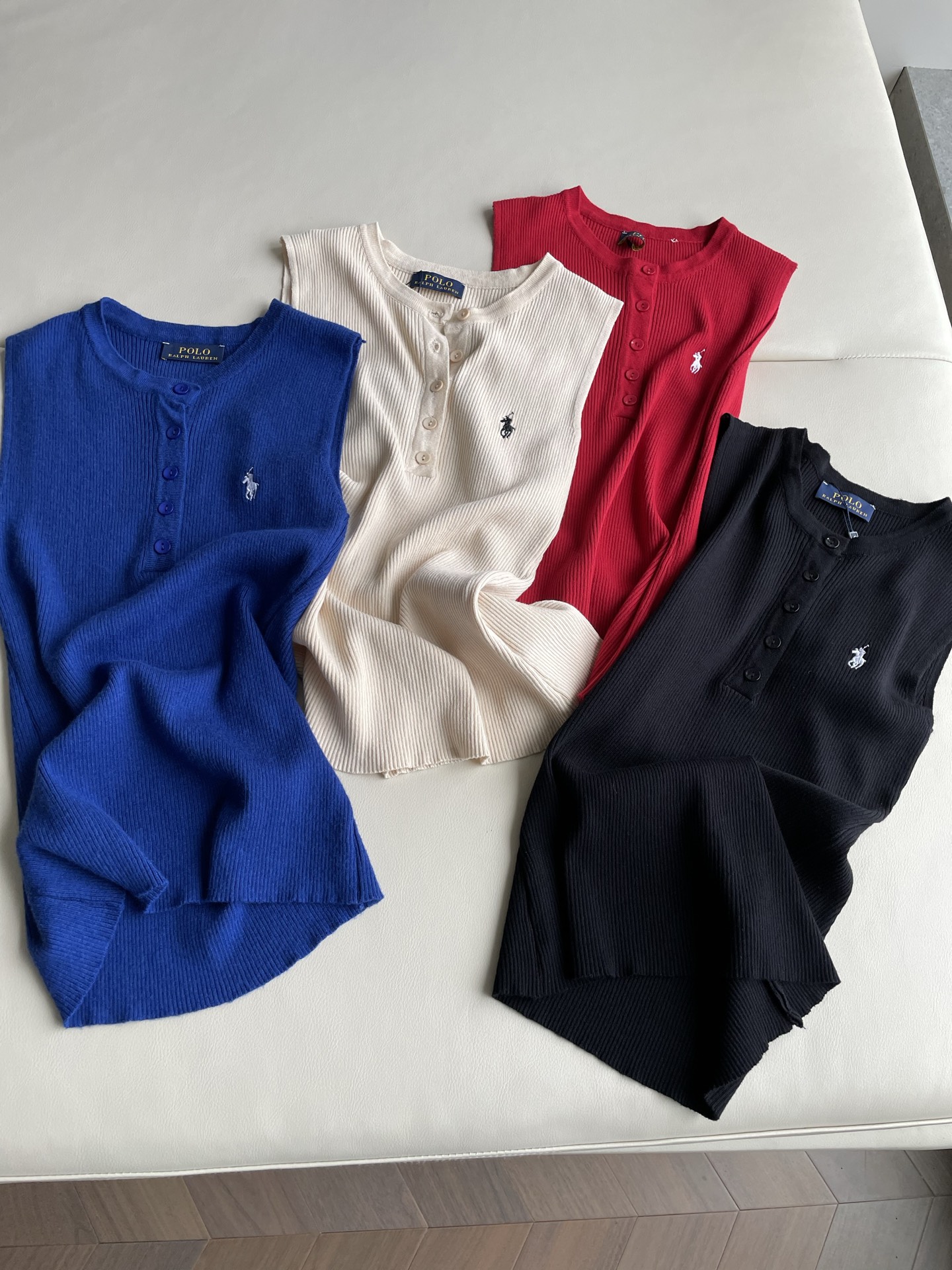 NIGO Ralph Lauren Women's Summer Solid Colour Embroidered Logo Knitted Polo Neck Tank Top #nigo76728