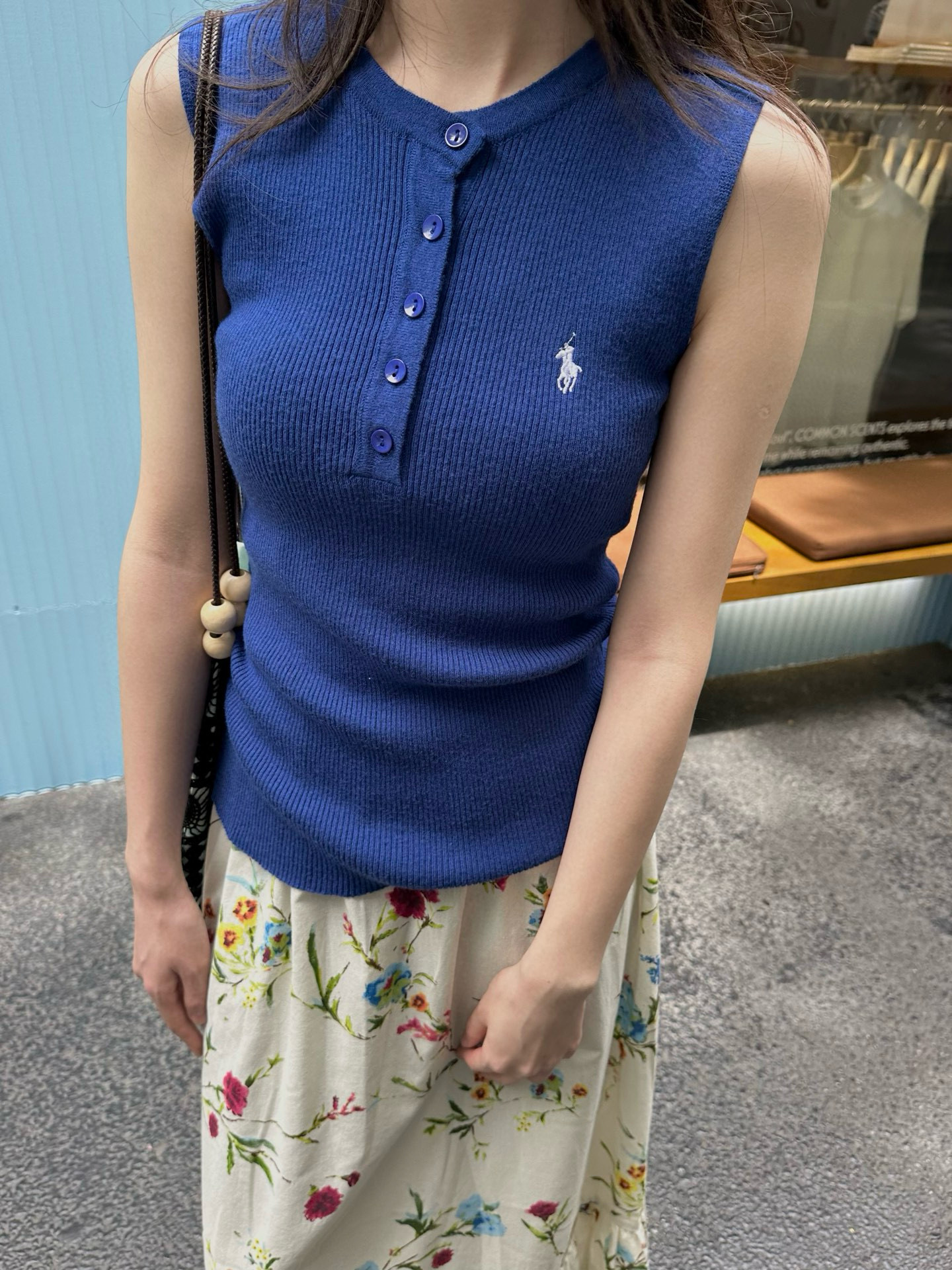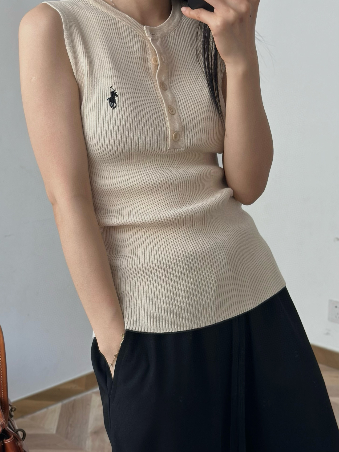 NIGO Ralph Lauren Women's Summer Solid Colour Embroidered Logo Knitted Polo Neck Tank Top #nigo76728
