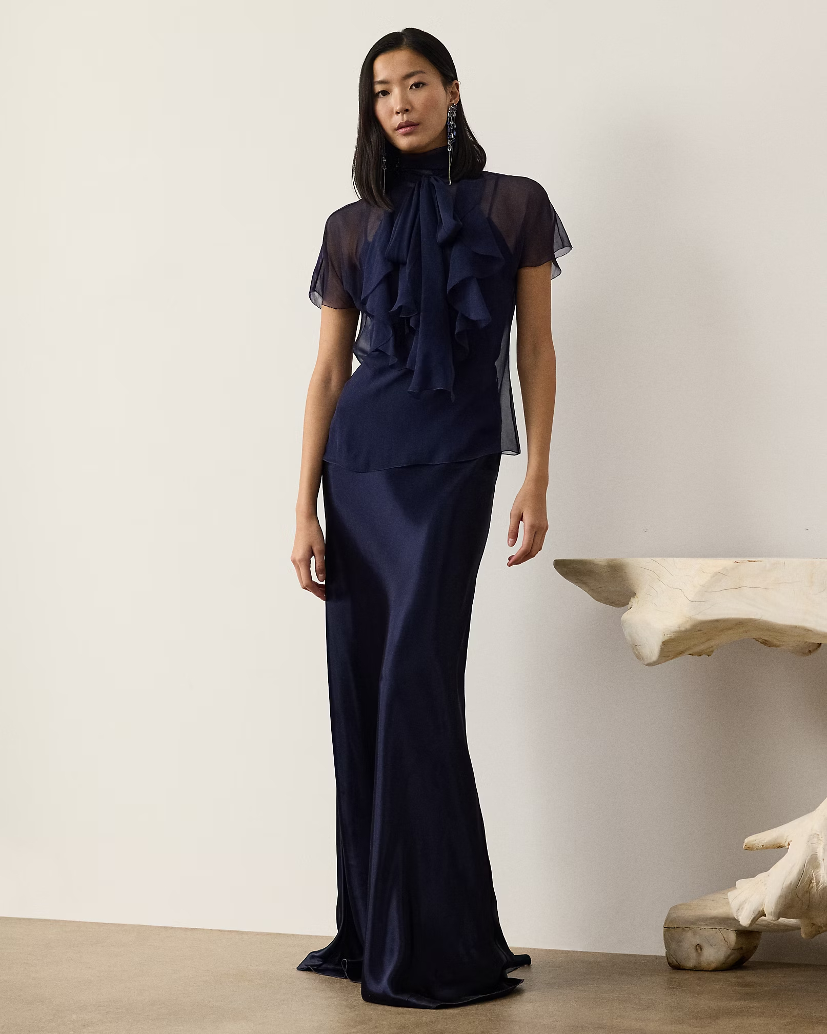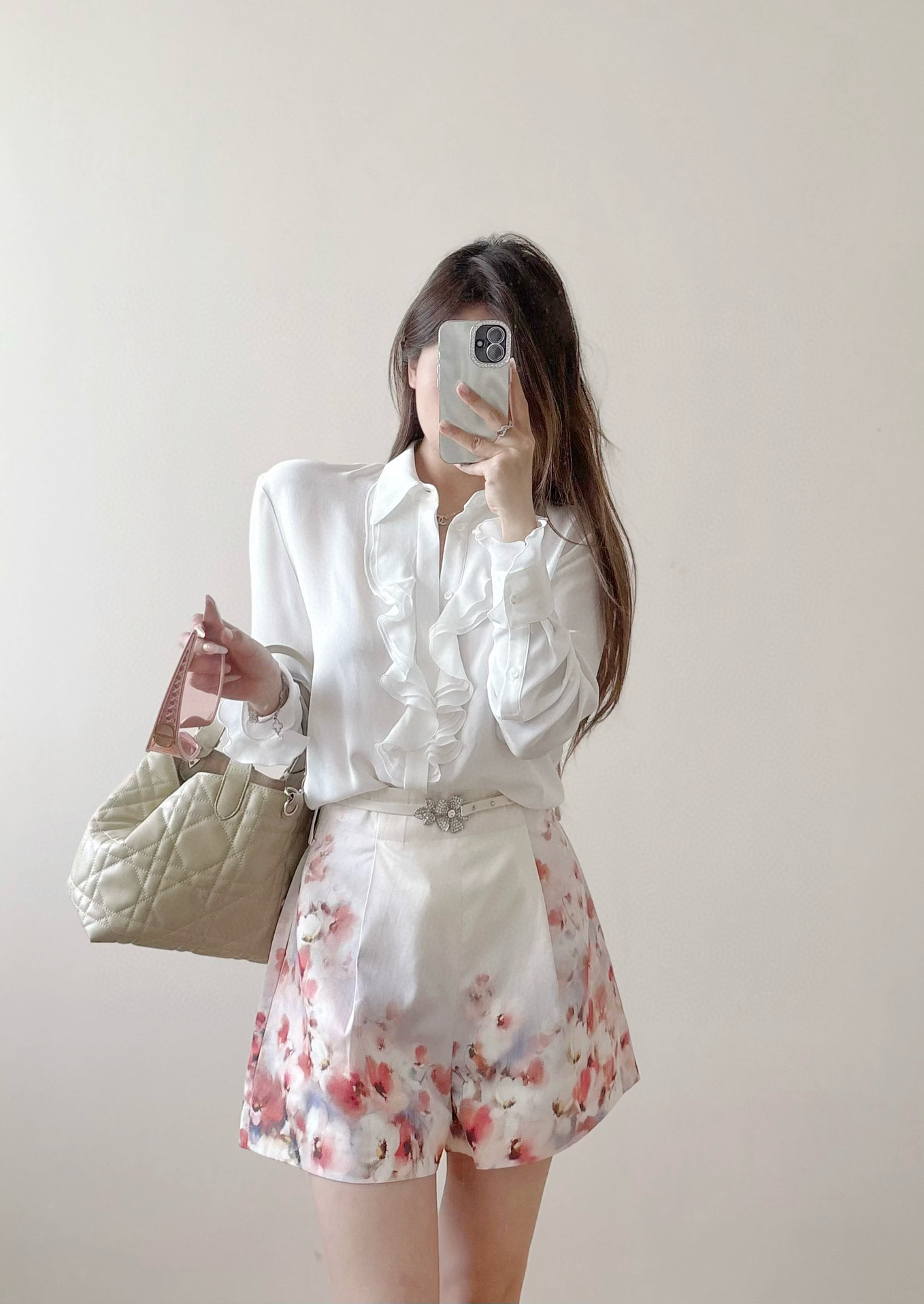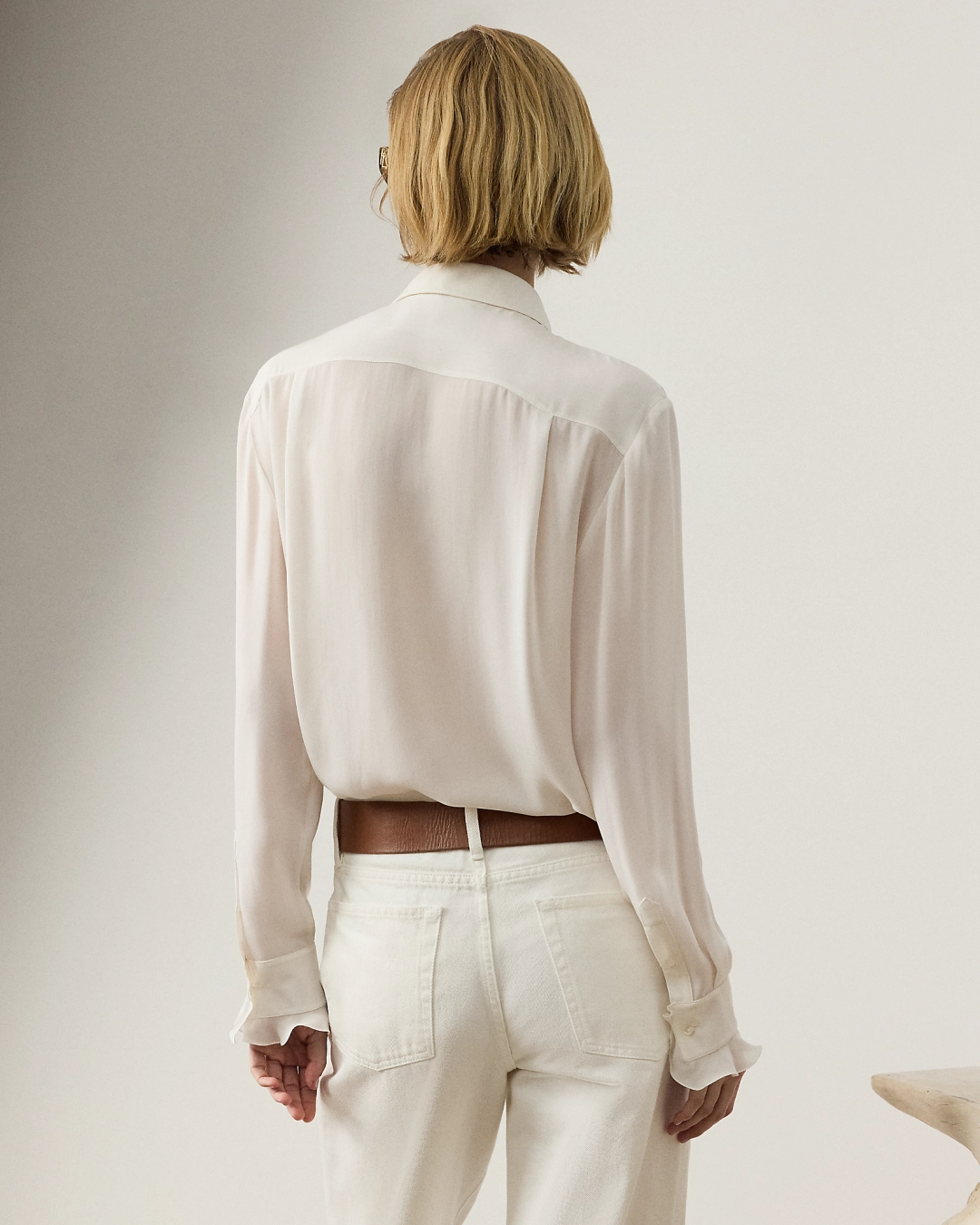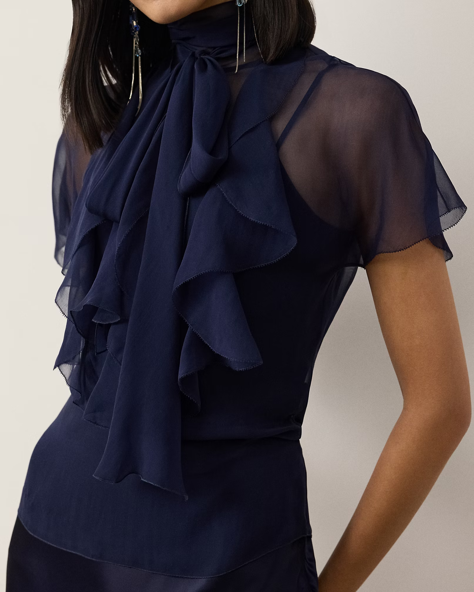NIGO Ralph Lauren Women's Etta Washed Chiffon Blouse Summer Solid Color Ruffle Short Sleeve Loose Shirt Ngvp #nigo1542