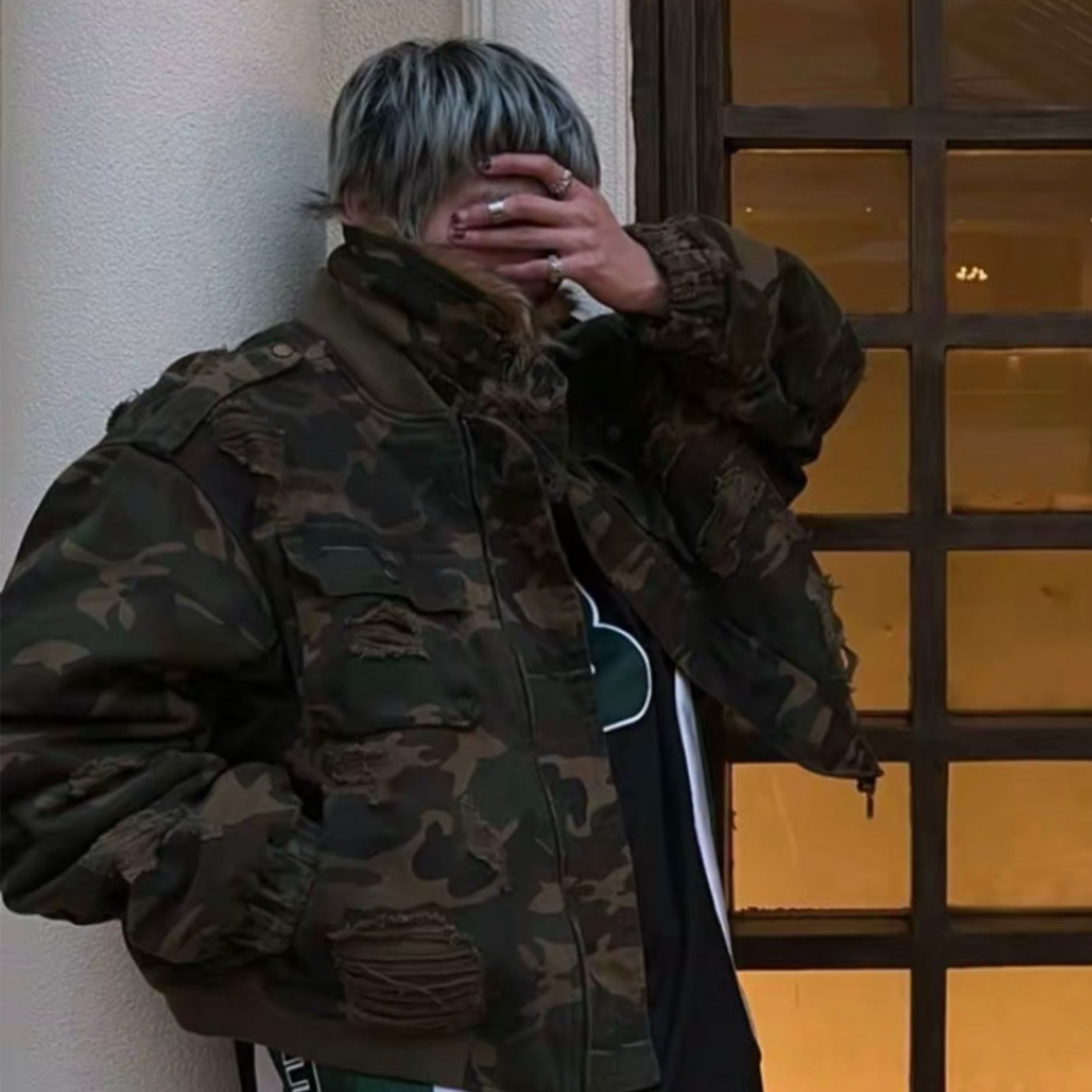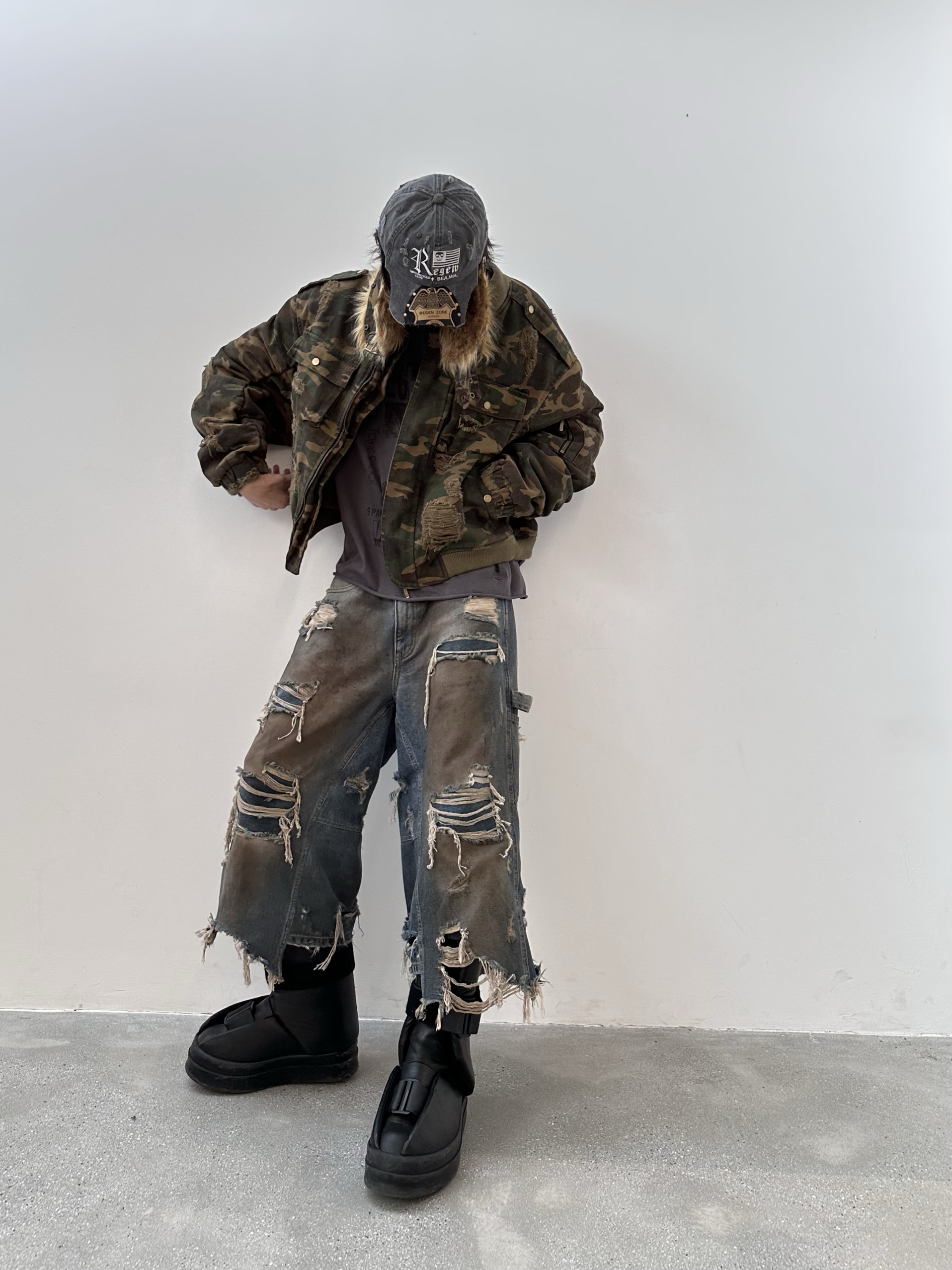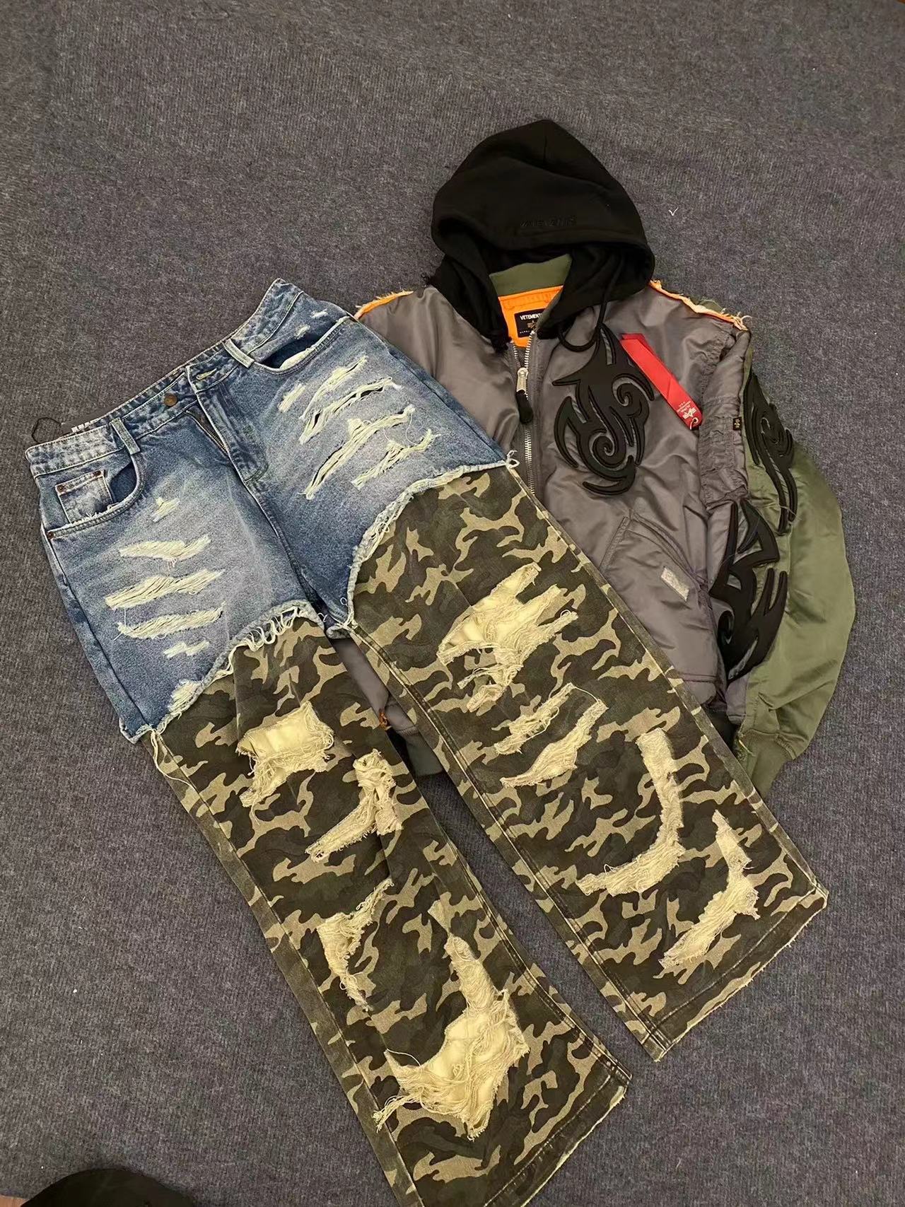 NIGO REGEN ZONE Men's Four Seasons Fashion Washed Camouflage Denim Patchwork Destroyed Casual Pants Ngvp #nigo8175