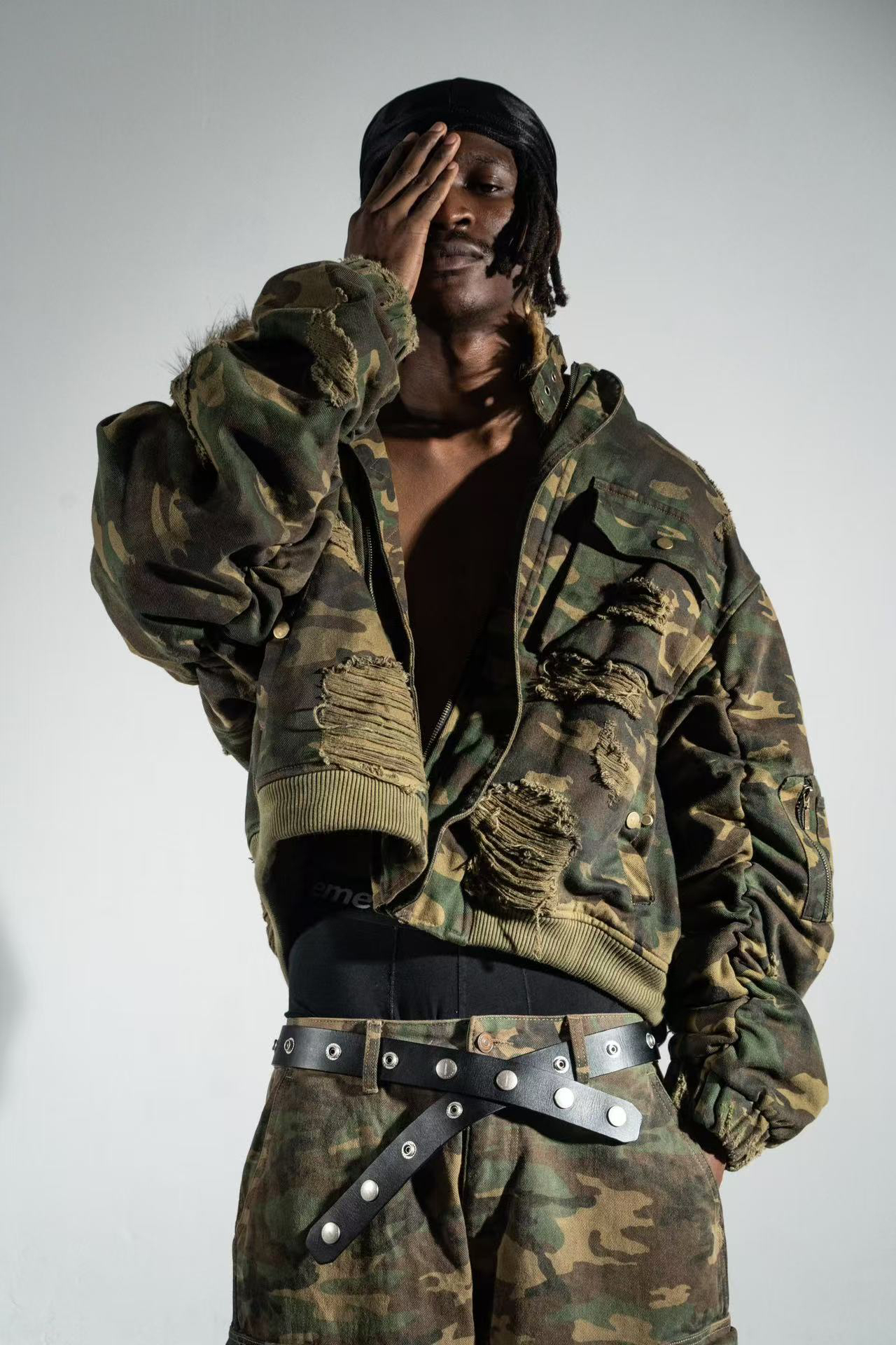 NIGO REGEN ZONE Men's Winter Washed Removable Fur Collar Short Camouflage Destruction Loose Long Sleeve Cotton Jacket Ngvp #nigo1164