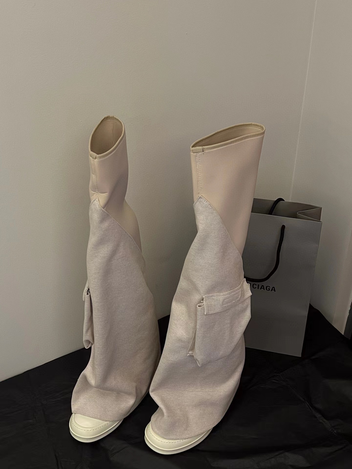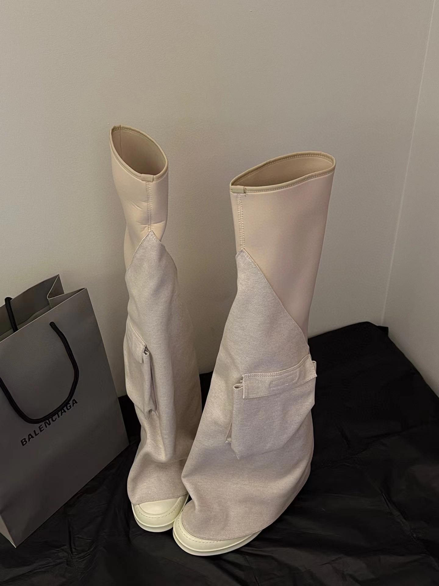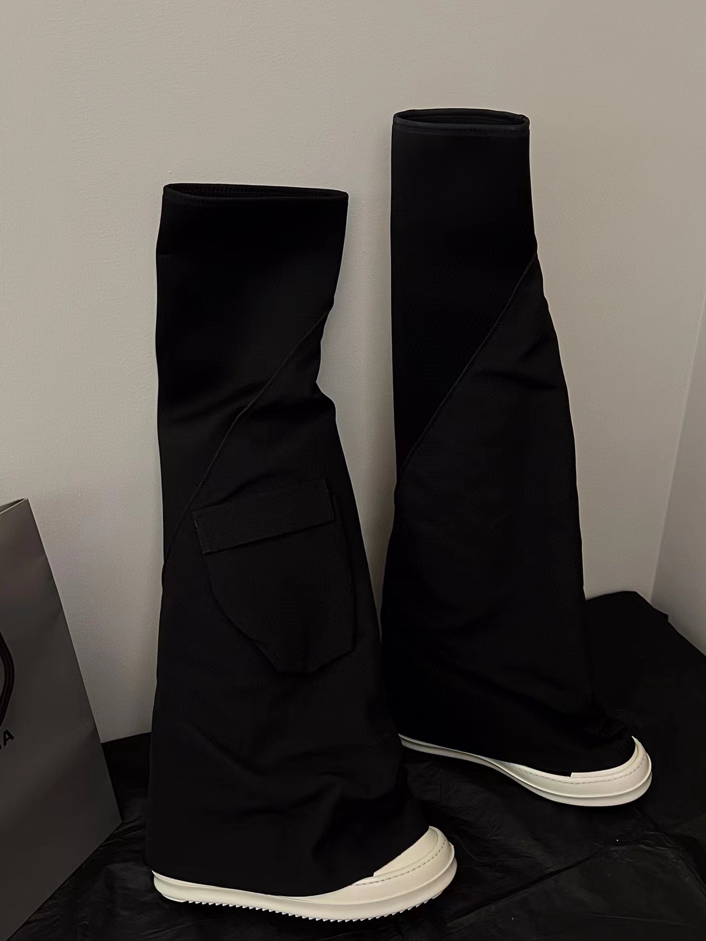 NIGO Rick Owens Women's Solid Color Knee Pocket Boots Casual Patchwork Long Boots Shoes Ngvp #nigo6176
