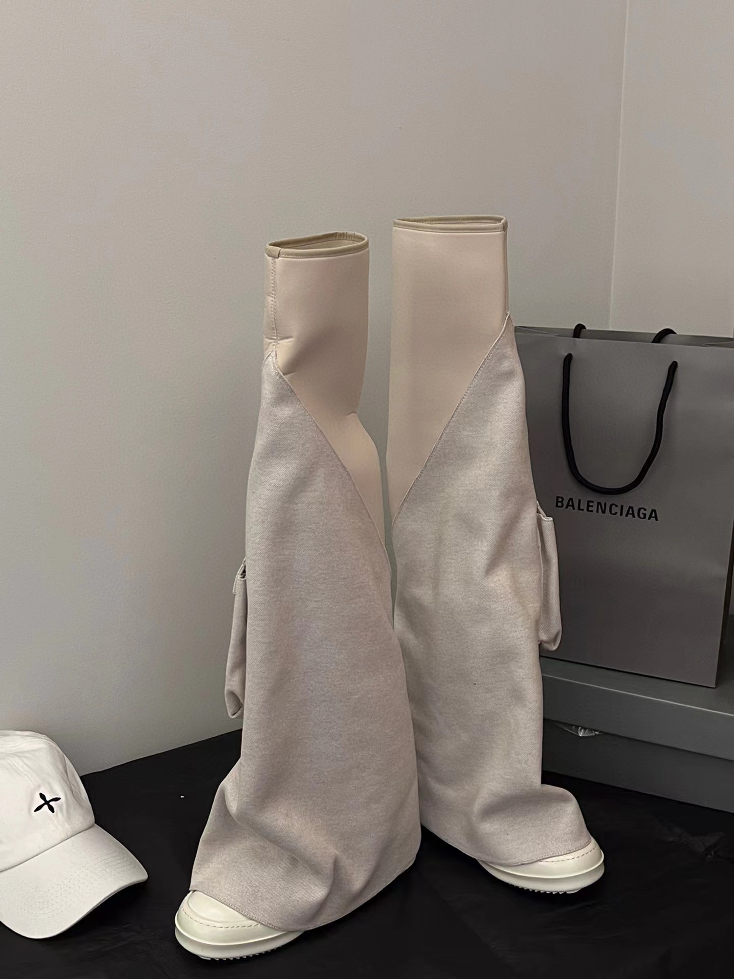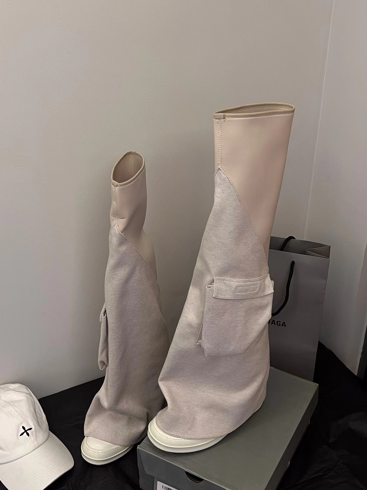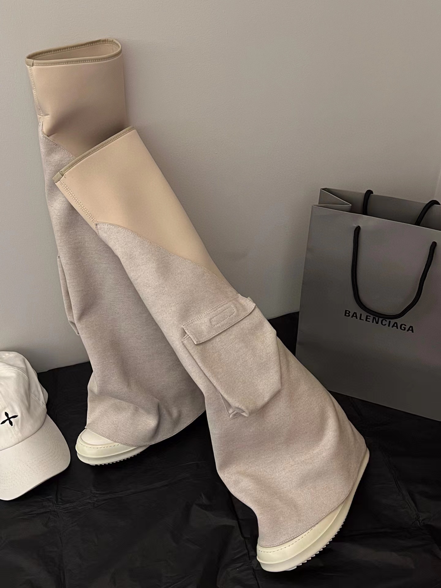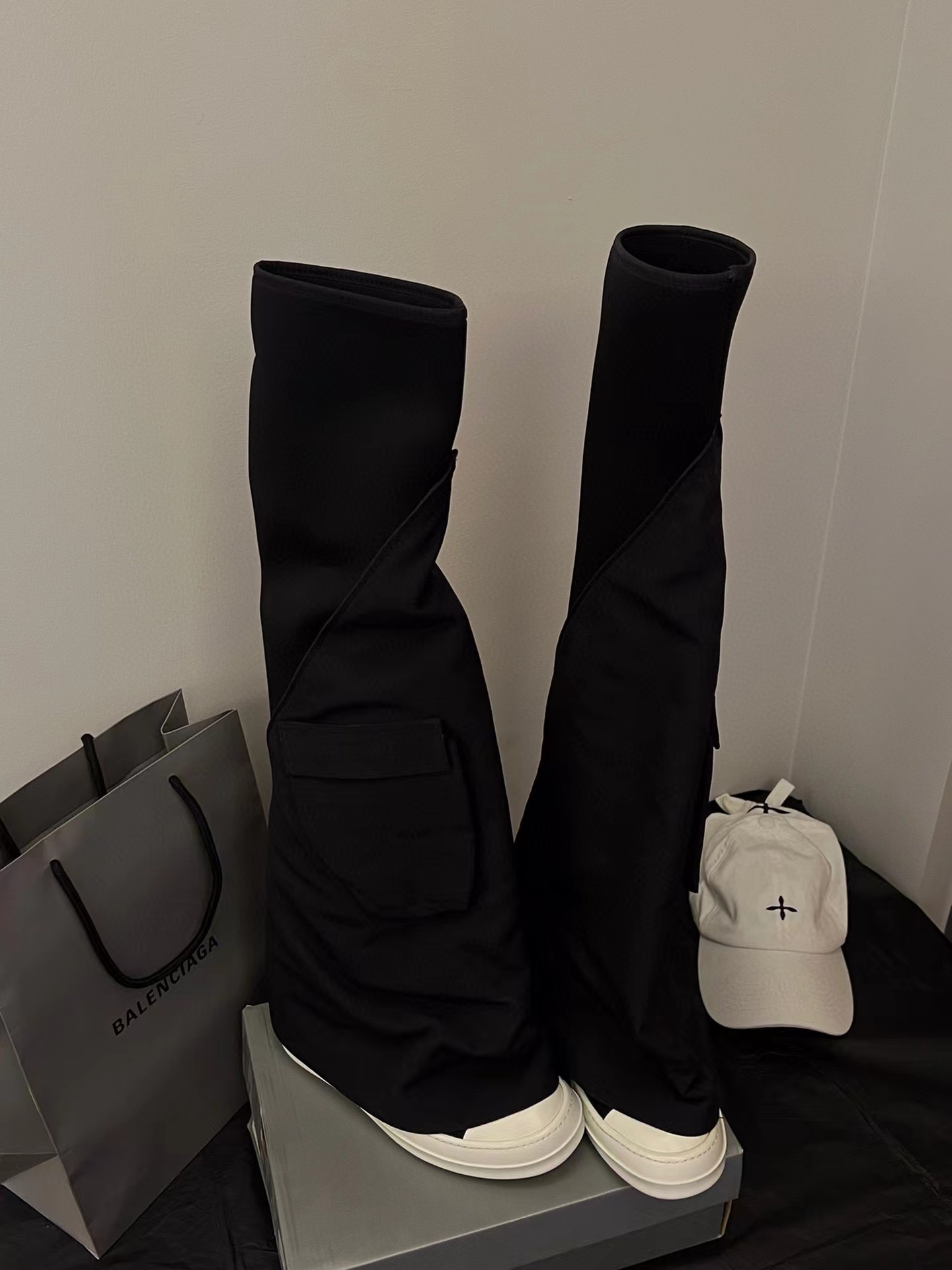 NIGO Rick Owens Women's Solid Color Knee Pocket Boots Casual Patchwork Long Boots Shoes Ngvp #nigo6176