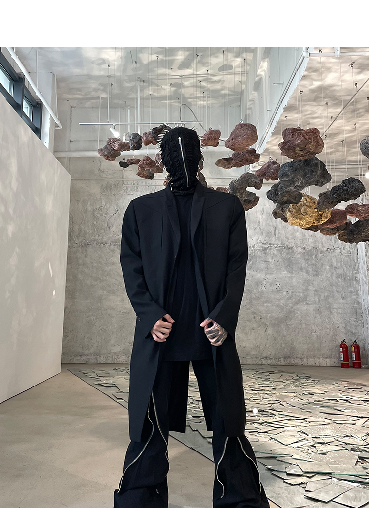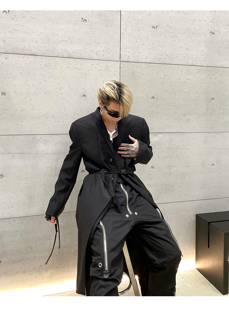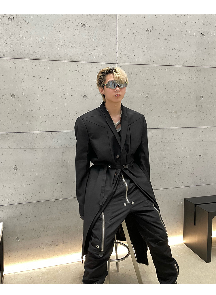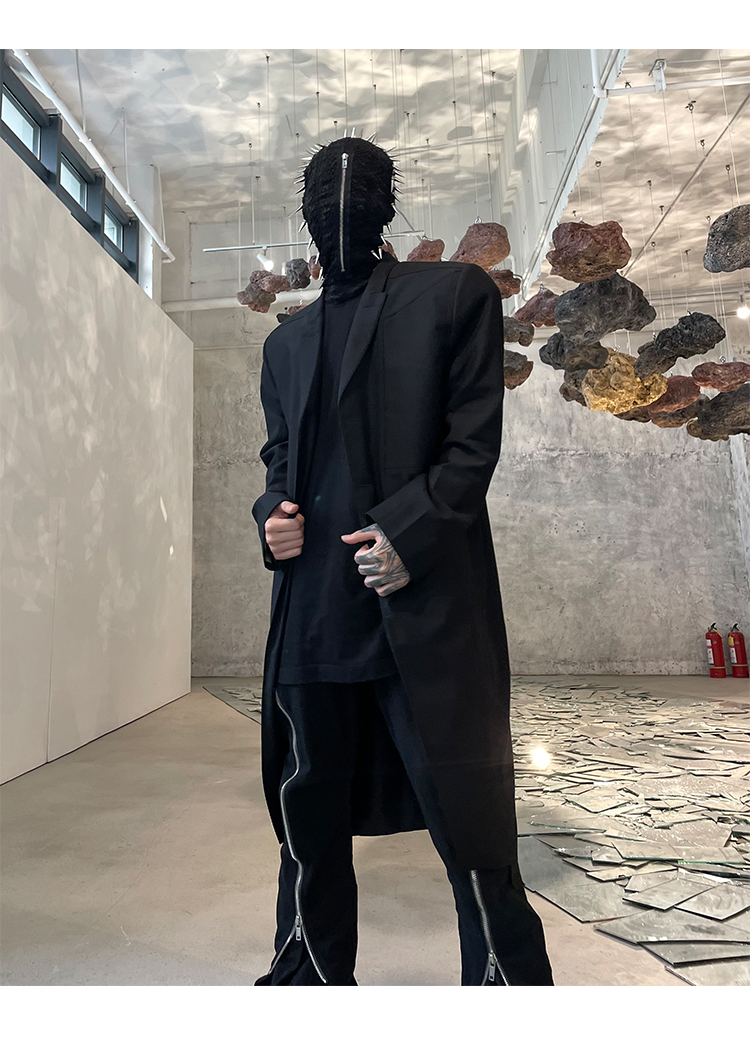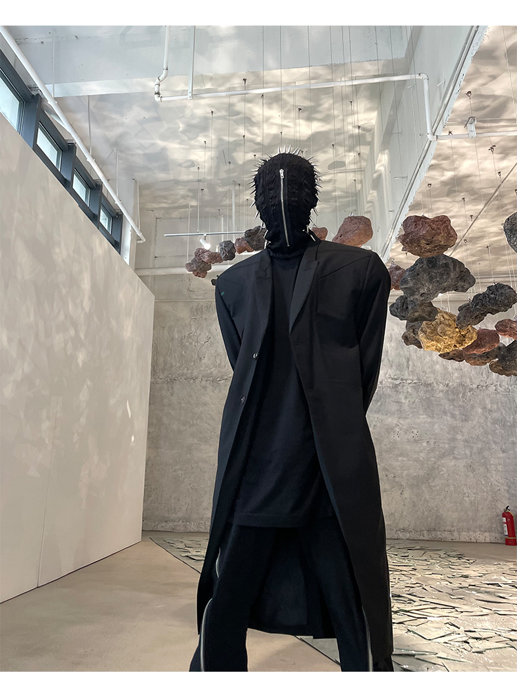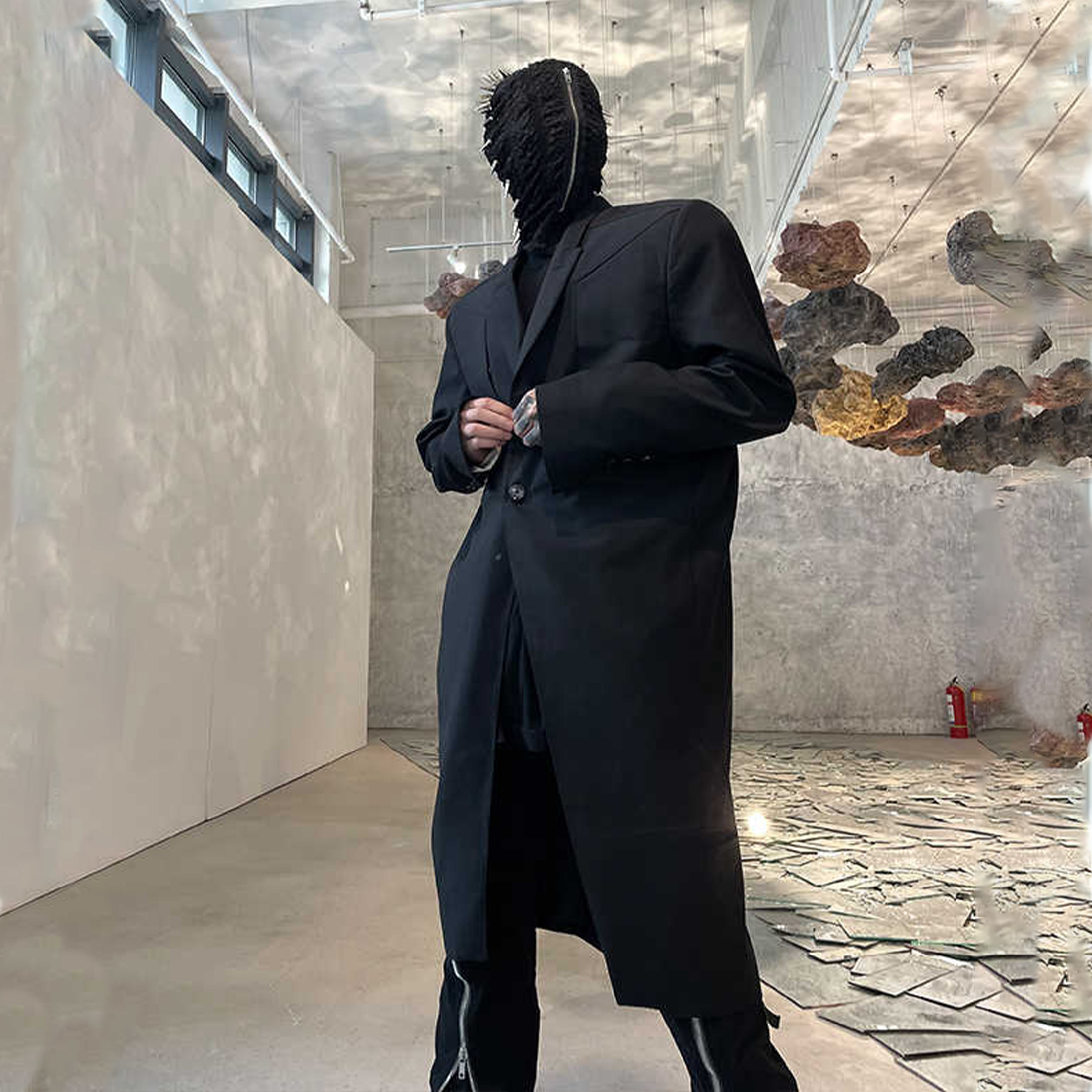 NIGO Rick Owens Black Padded Shoulder Long Suit Blazer Dark Style Trendy Handsome Casual Suit High Street Fashion Jacket #nigo71773