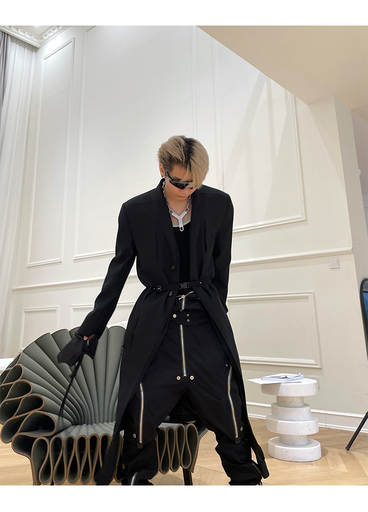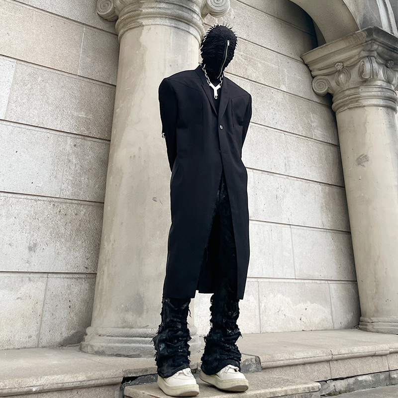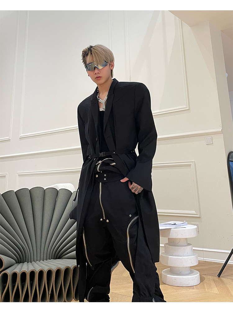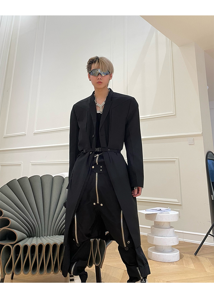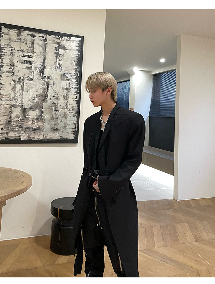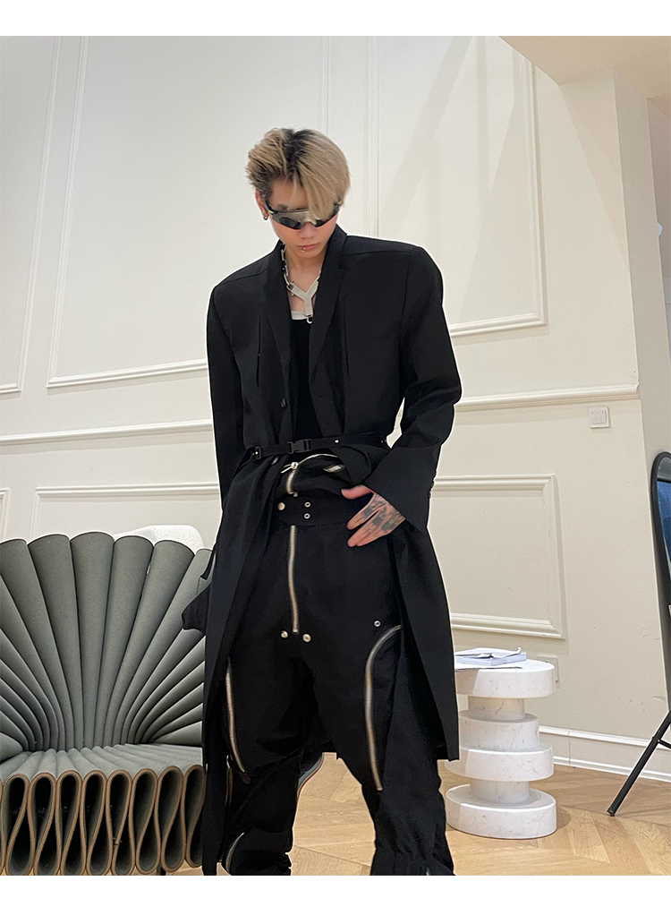 NIGO Rick Owens Black Padded Shoulder Long Suit Blazer Dark Style Trendy Handsome Casual Suit High Street Fashion Jacket #nigo71773
