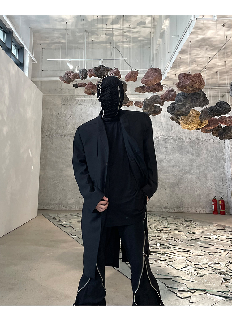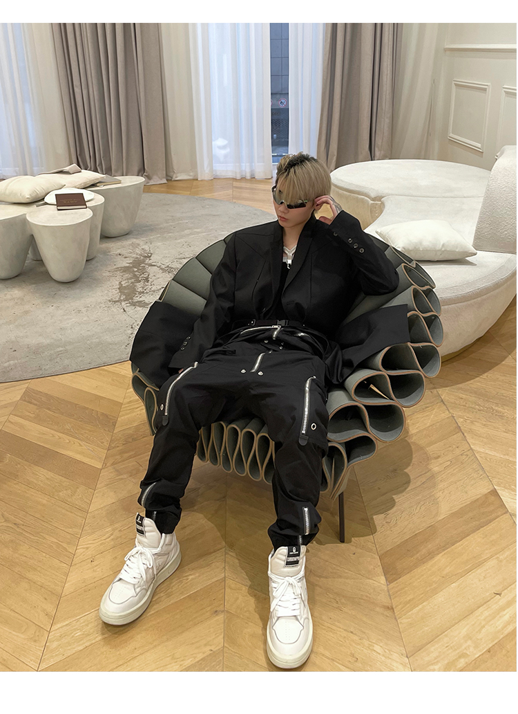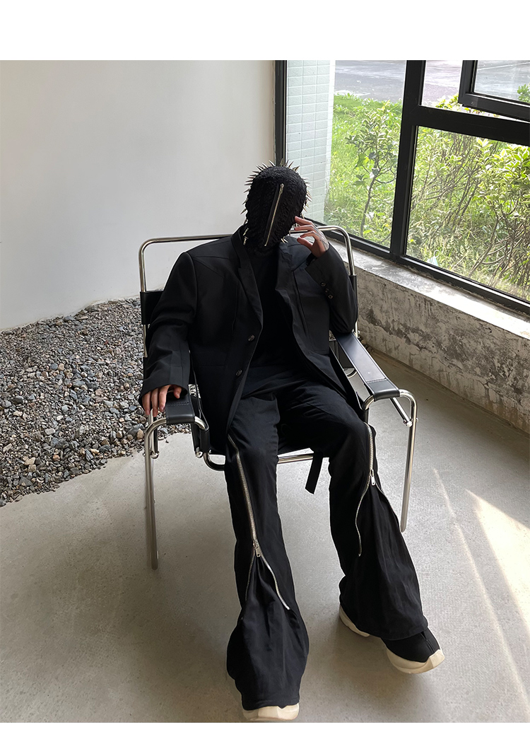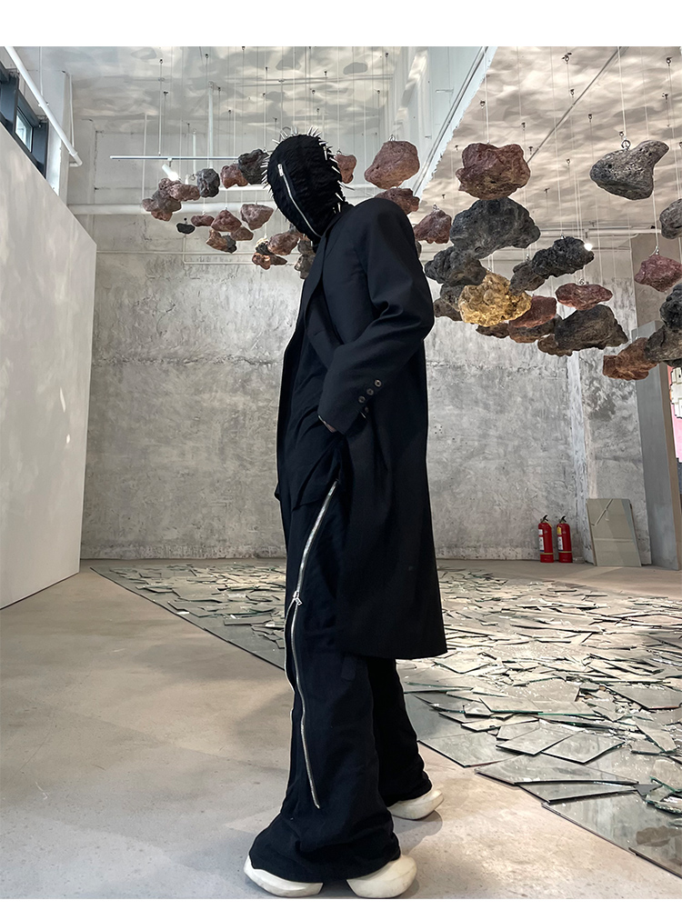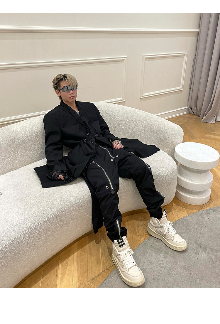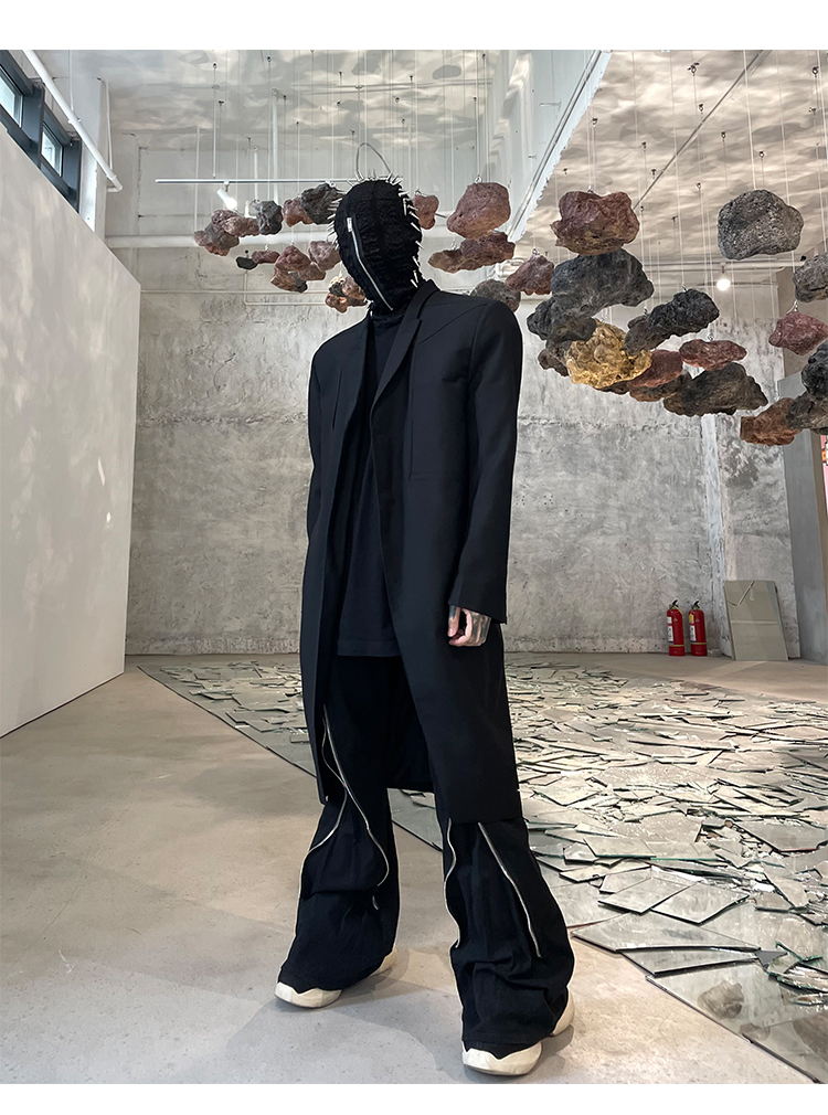NIGO Rick Owens Black Padded Shoulder Long Suit Blazer Dark Style Trendy Handsome Casual Suit High Street Fashion Jacket #nigo71773