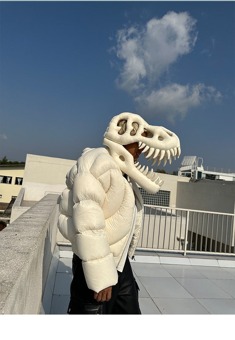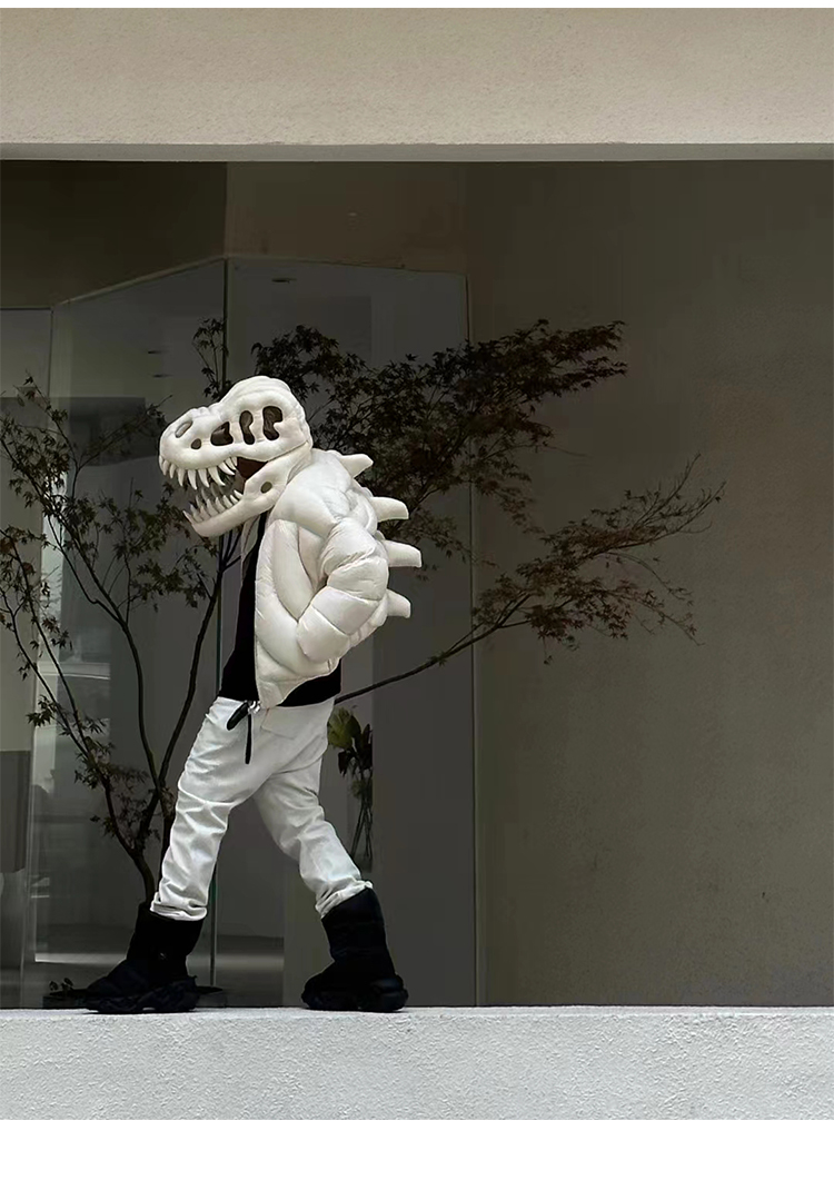 NIGO Rick Owens Men's And Women's Fall And Winter Dinosaur Down Jacket White Handmade Customized Tyrannosaurus Rex Design Ski Suit Thickened White Duck Down Ngvp #nigo8862