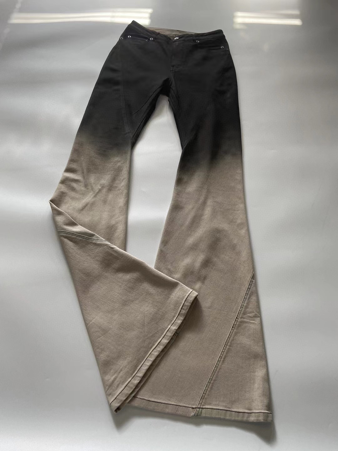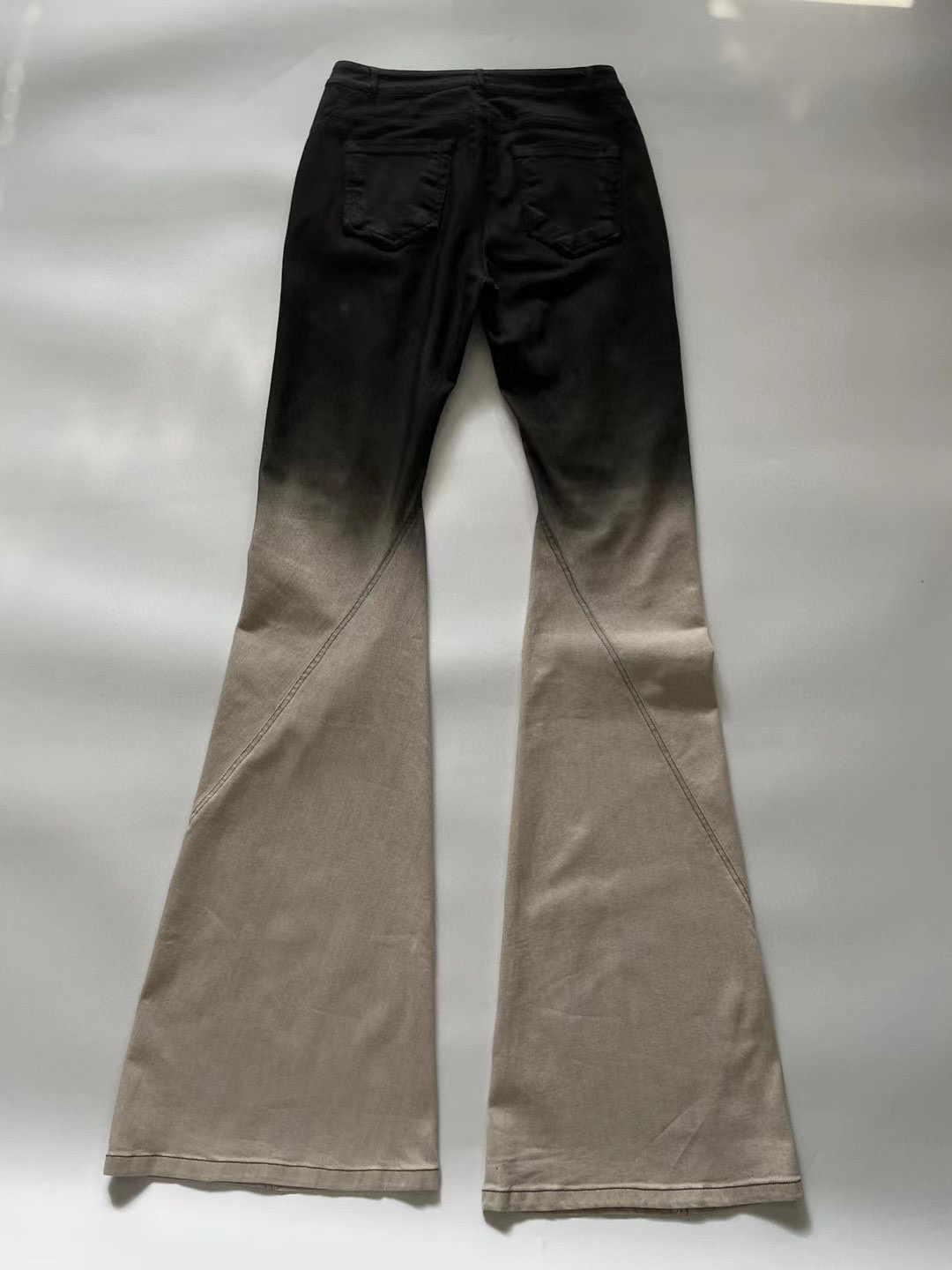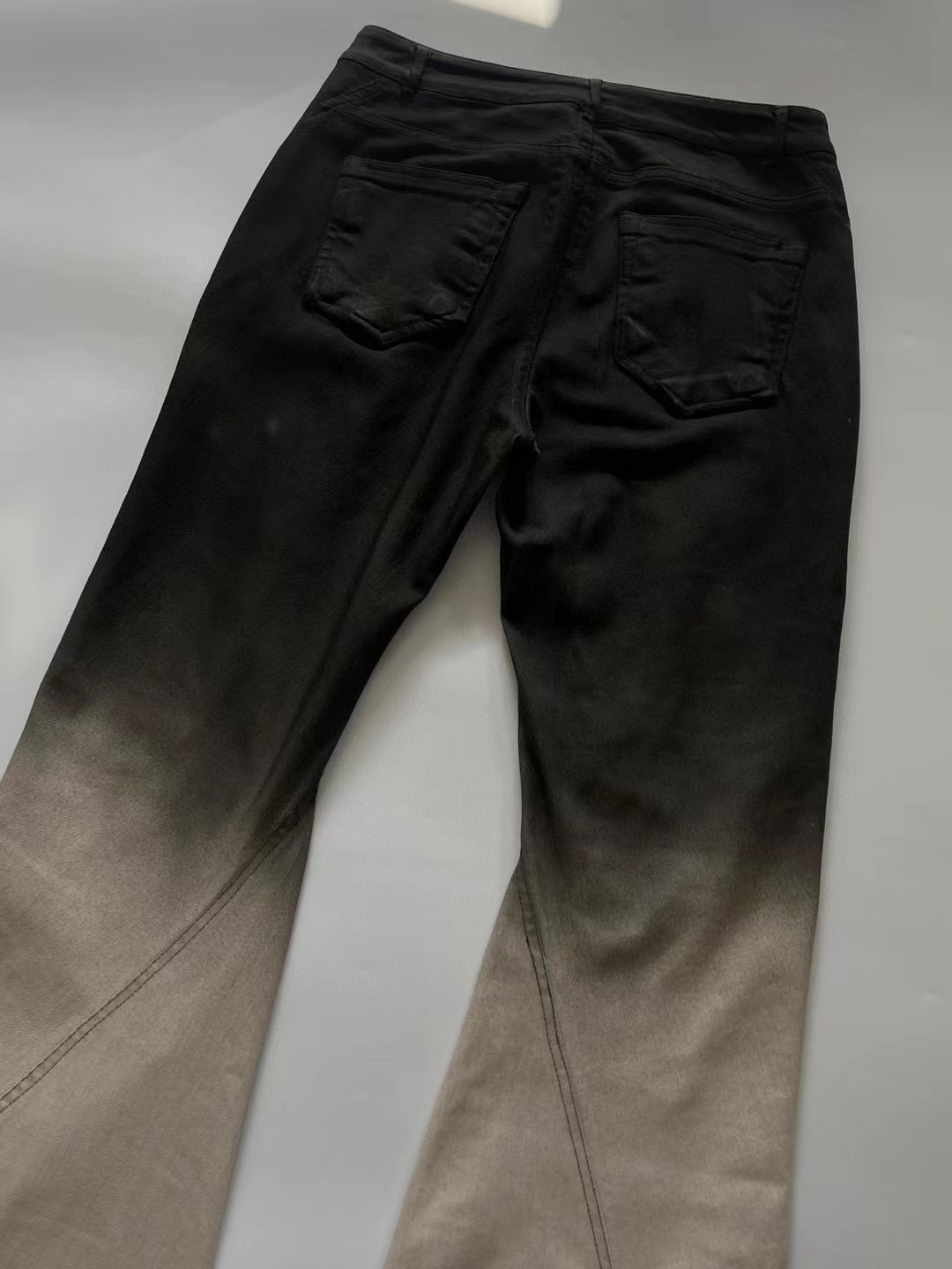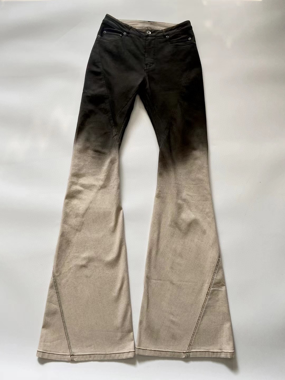 NIGO Rick Owens Men's Cotton Casual Zipper Black Gradient Skinny Wash Denim Flare Pants Ngvp #nigo7286