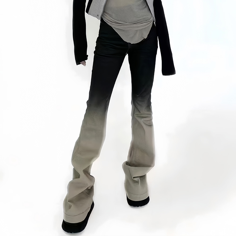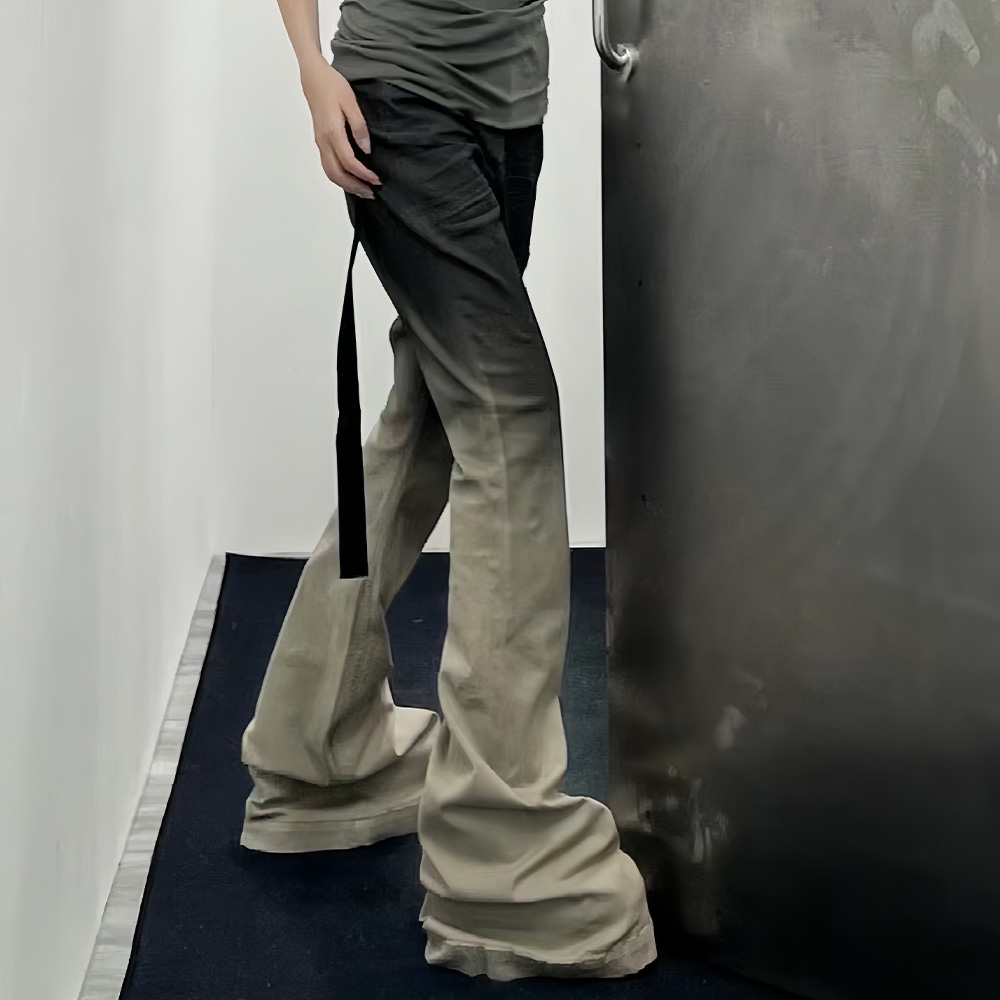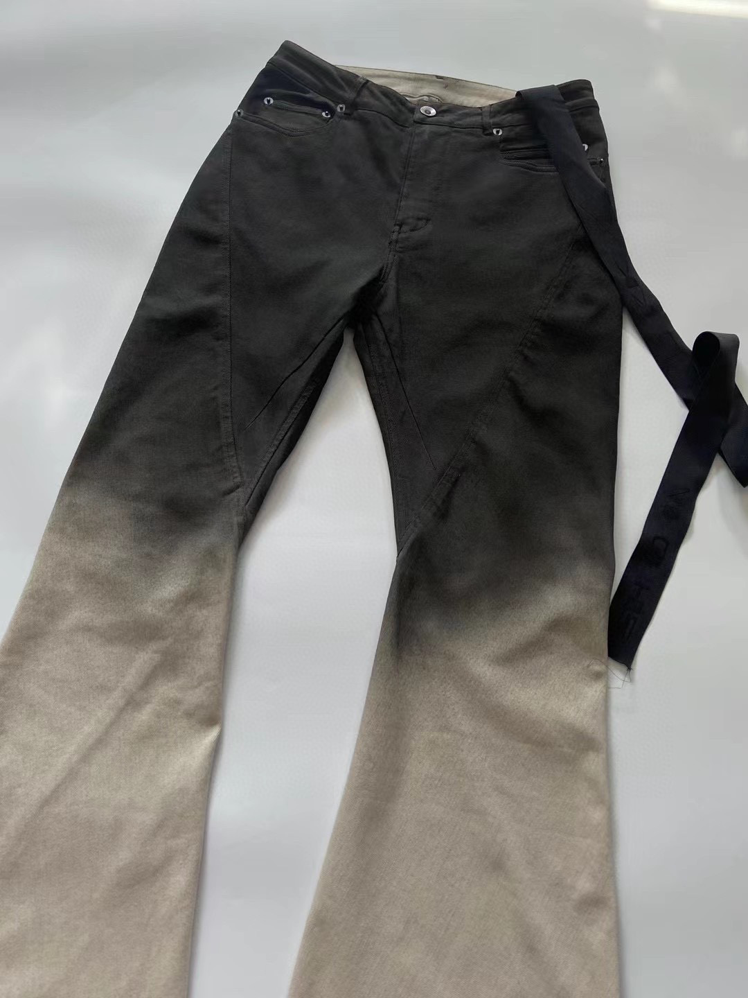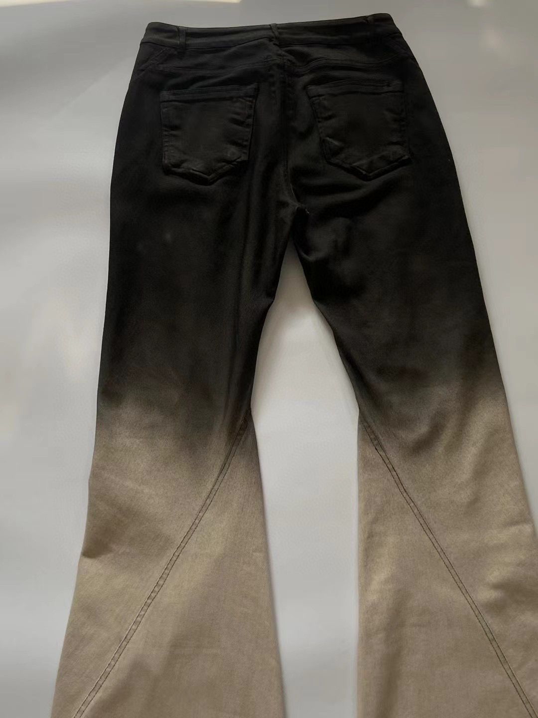 NIGO Rick Owens Men's Cotton Casual Zipper Black Gradient Skinny Wash Denim Flare Pants Ngvp #nigo7286