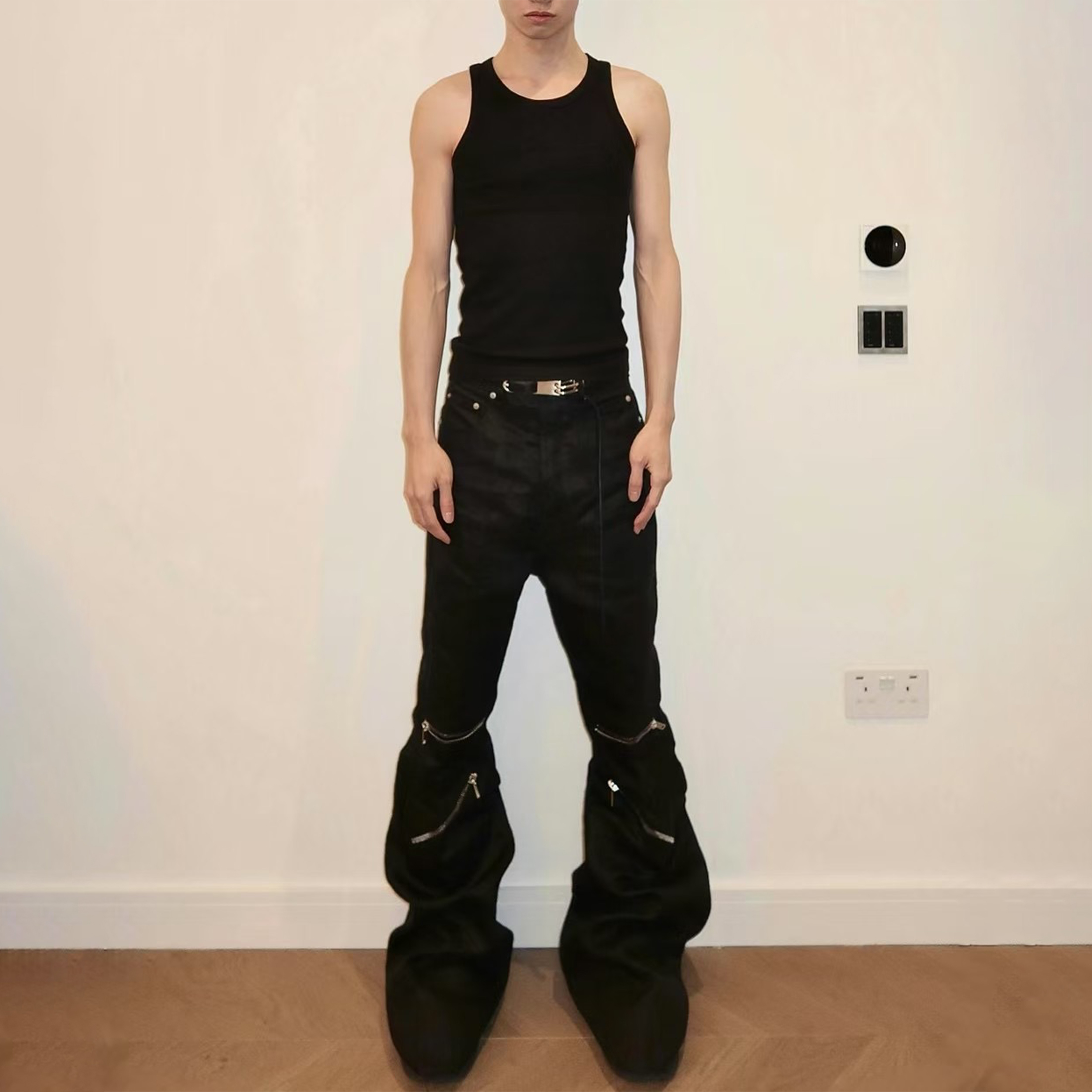 NIGO Rick Owens Men's Dark Style Trend Zipper God Pants Skinny Leg Long Flared Trousers Trendy High Street Men's Clothing Ngvp #nigo1994