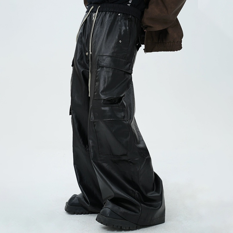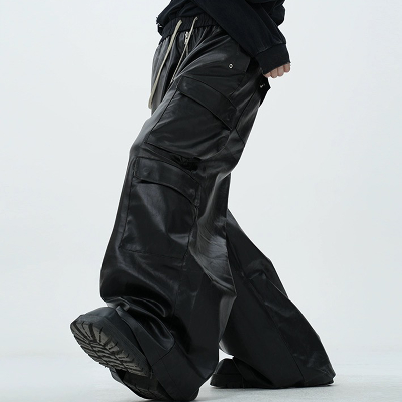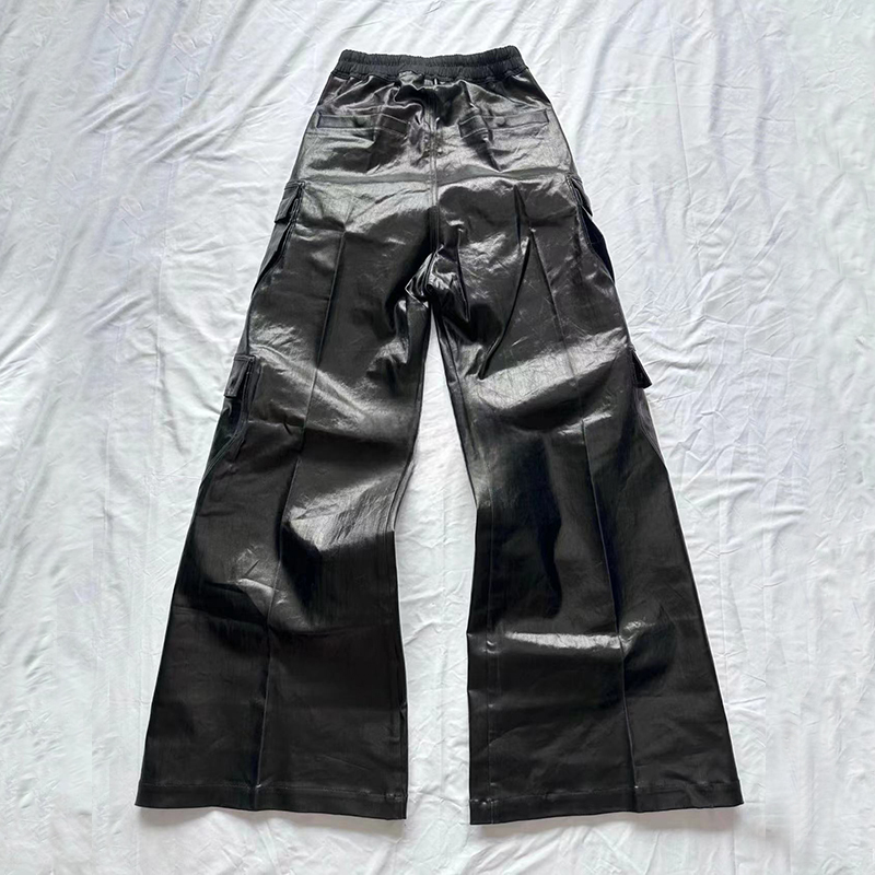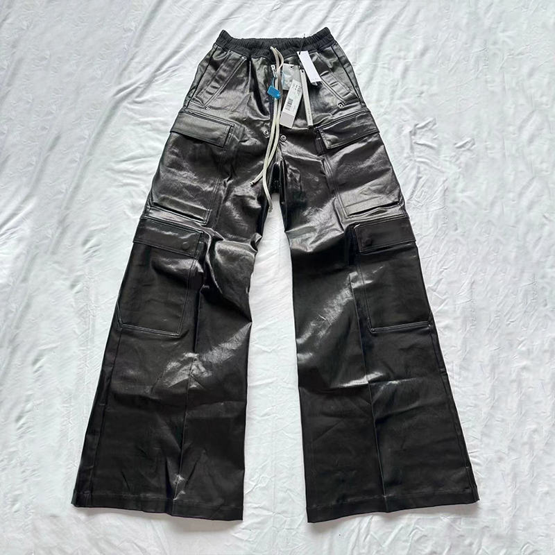 NIGO Rick Owens Men's Fashion Biker Retro Work Pants Zipper Drawstring Black Multi-pocket Loose Long Pants Ngvp #nigo7442