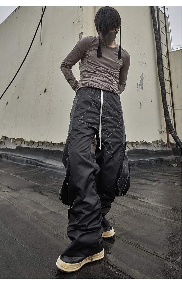 NIGO Rick Owens Men's Four Seasons Dark Line Button Workwear Pants Loose Retro Trend Drawstring Straight Leg Pants Ngvp #nigo8779
