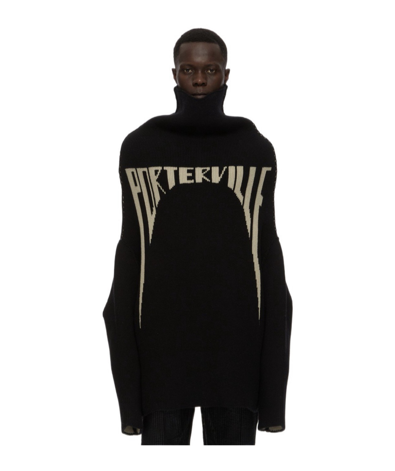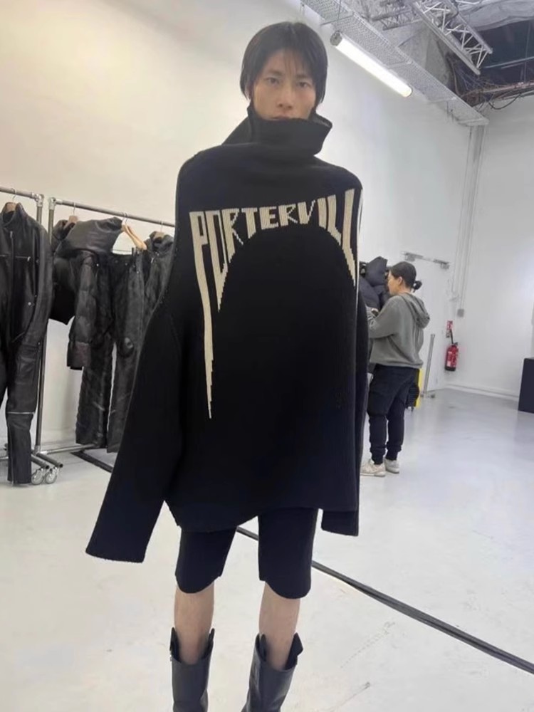 NIGO Rick Owens Men's High Neck Letters Jacquard Knit Large Silhouette Casual Long Sleeve Black Sweater For Fall And Winter Ngvp #nigo9431