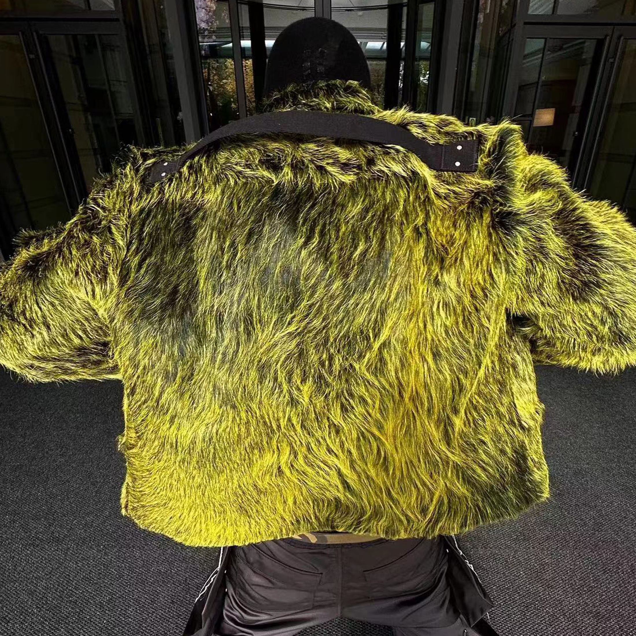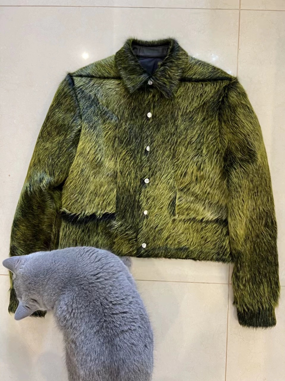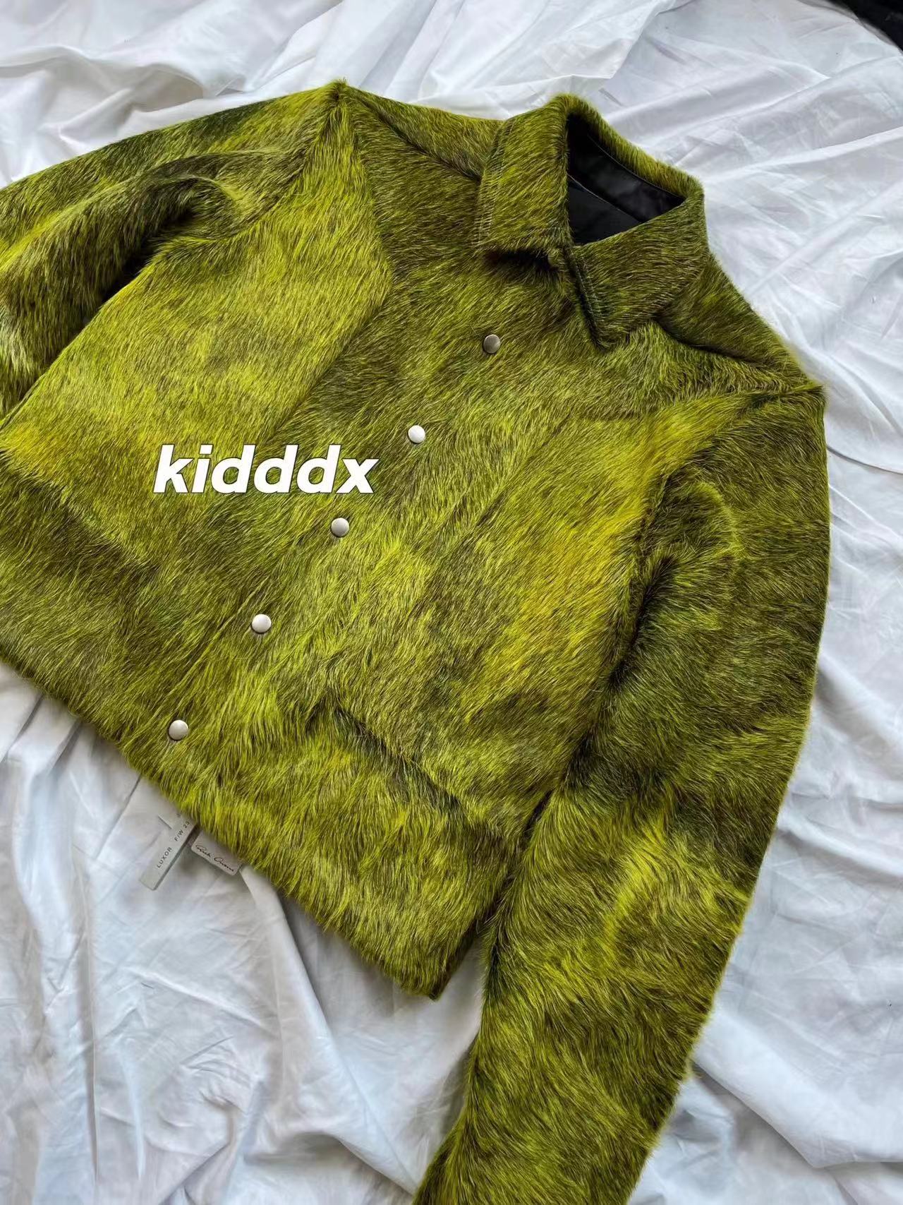 NIGO Rick Owens Men's spring and fall trend of high street retro yellow-green plush cowhide jacket lapel single-breasted casual jacket Ngvp #nigo8247