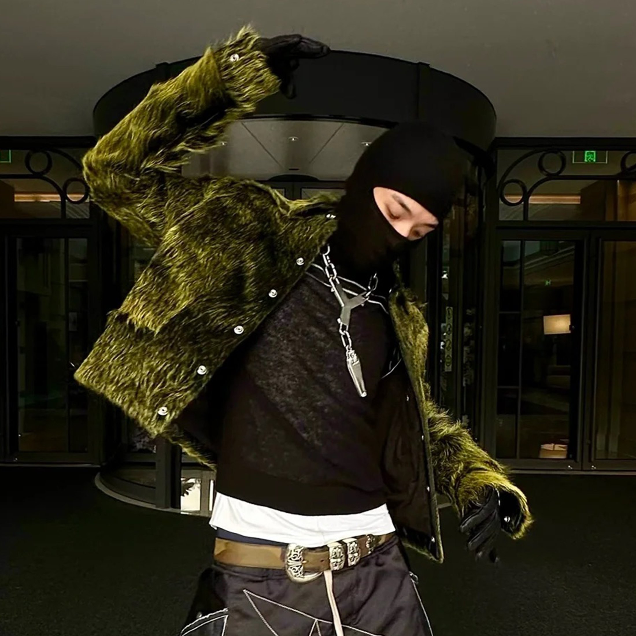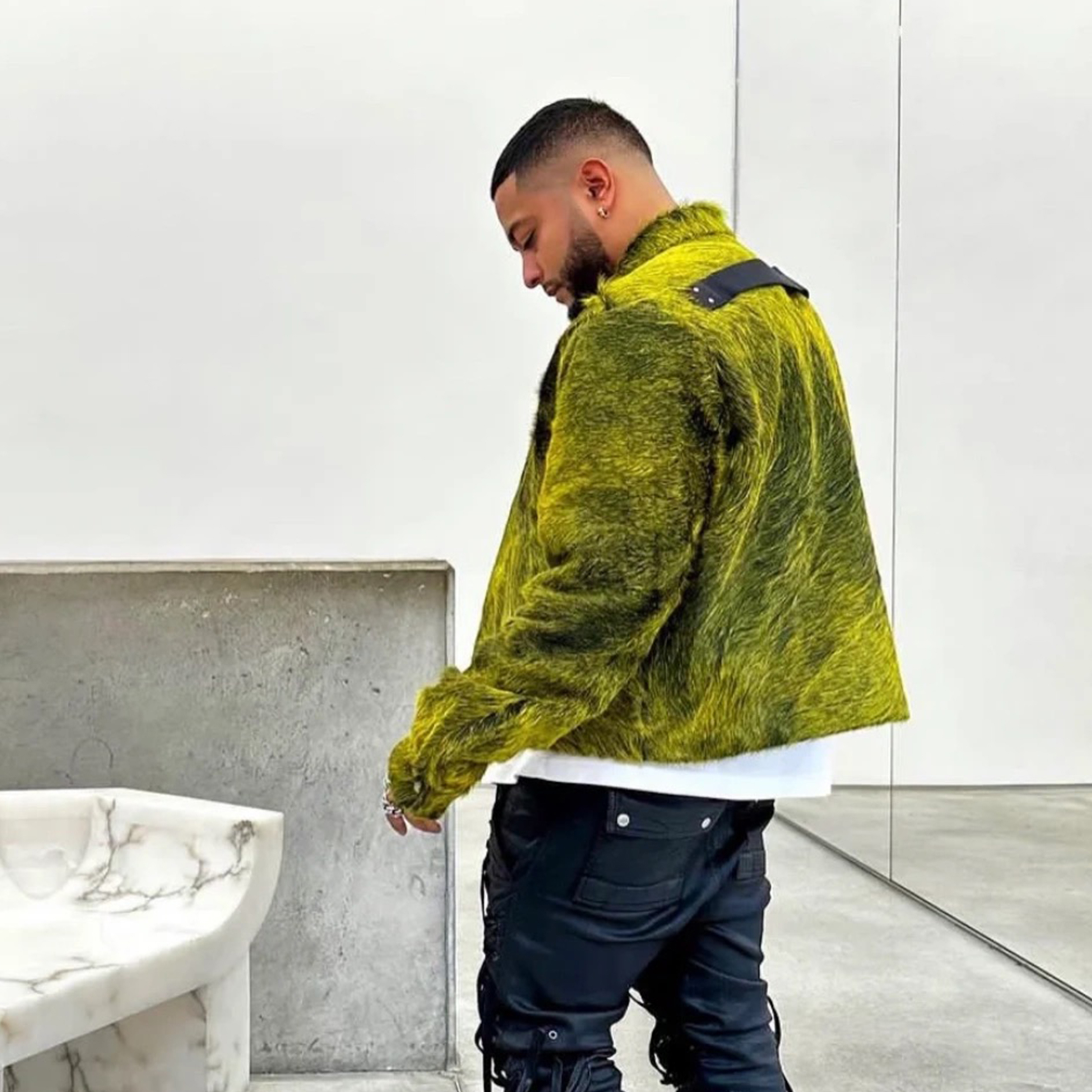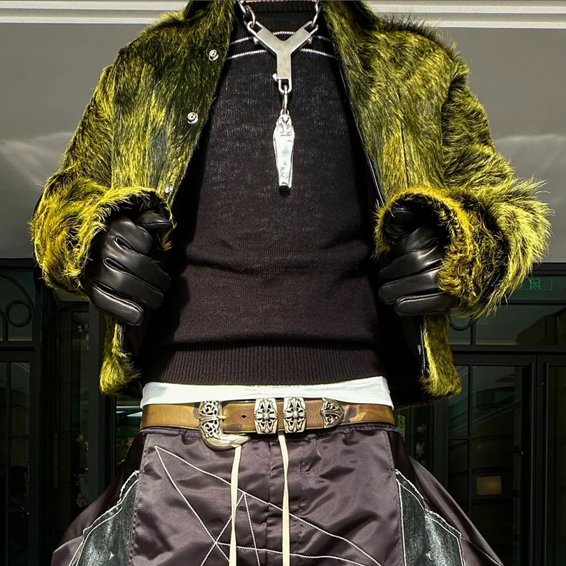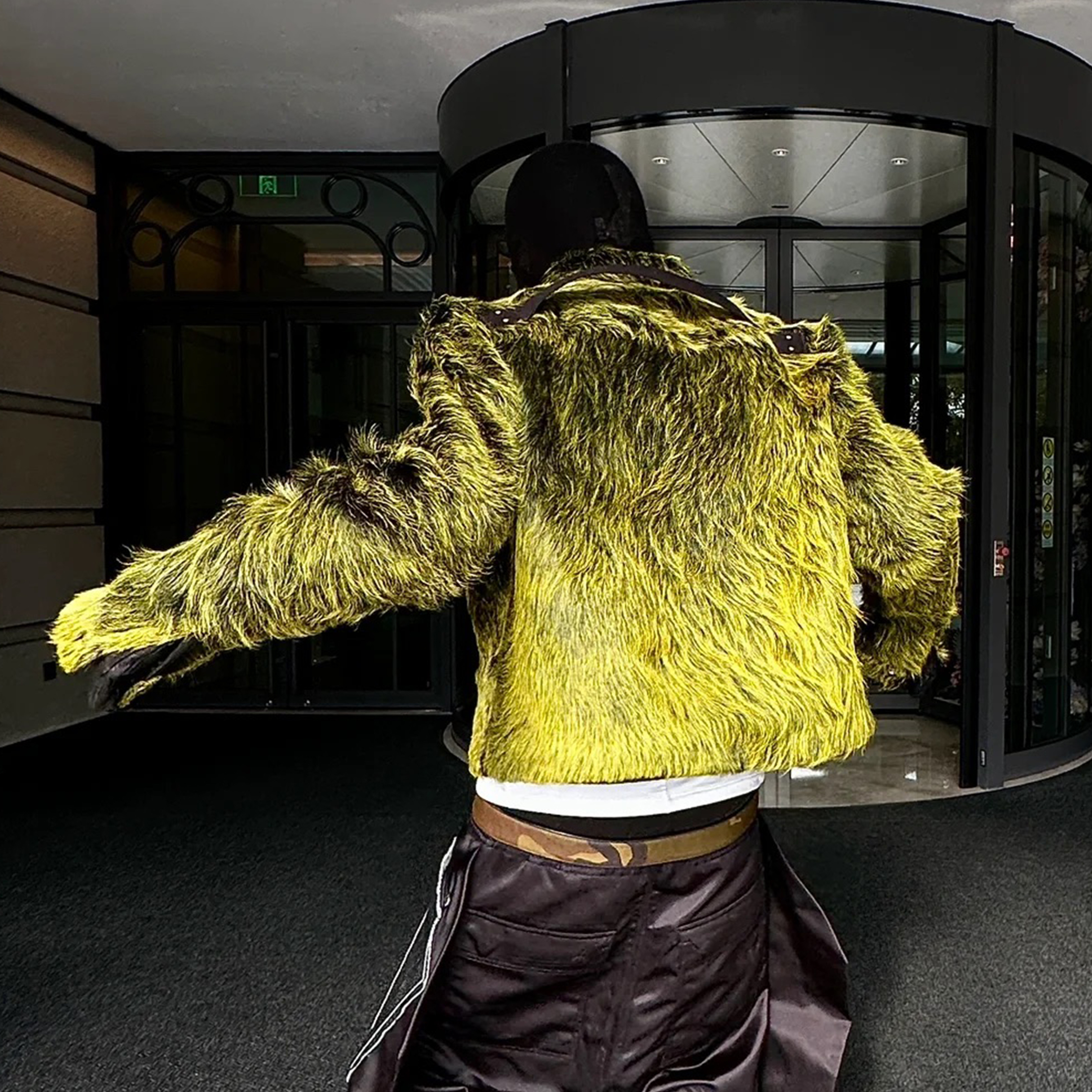 NIGO Rick Owens Men's spring and fall trend of high street retro yellow-green plush cowhide jacket lapel single-breasted casual jacket Ngvp #nigo8247