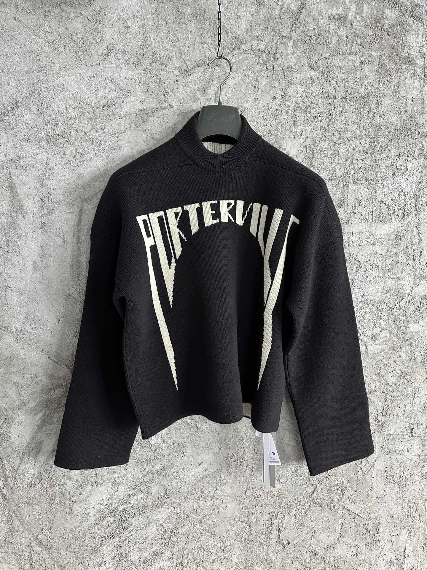 NIGO Rick Owens Men's Spring, Fall And Winter Half Turtleneck Letter Jacquard Black Knit Long Sleeve Wool Sweater Ngvp #nigo9438
