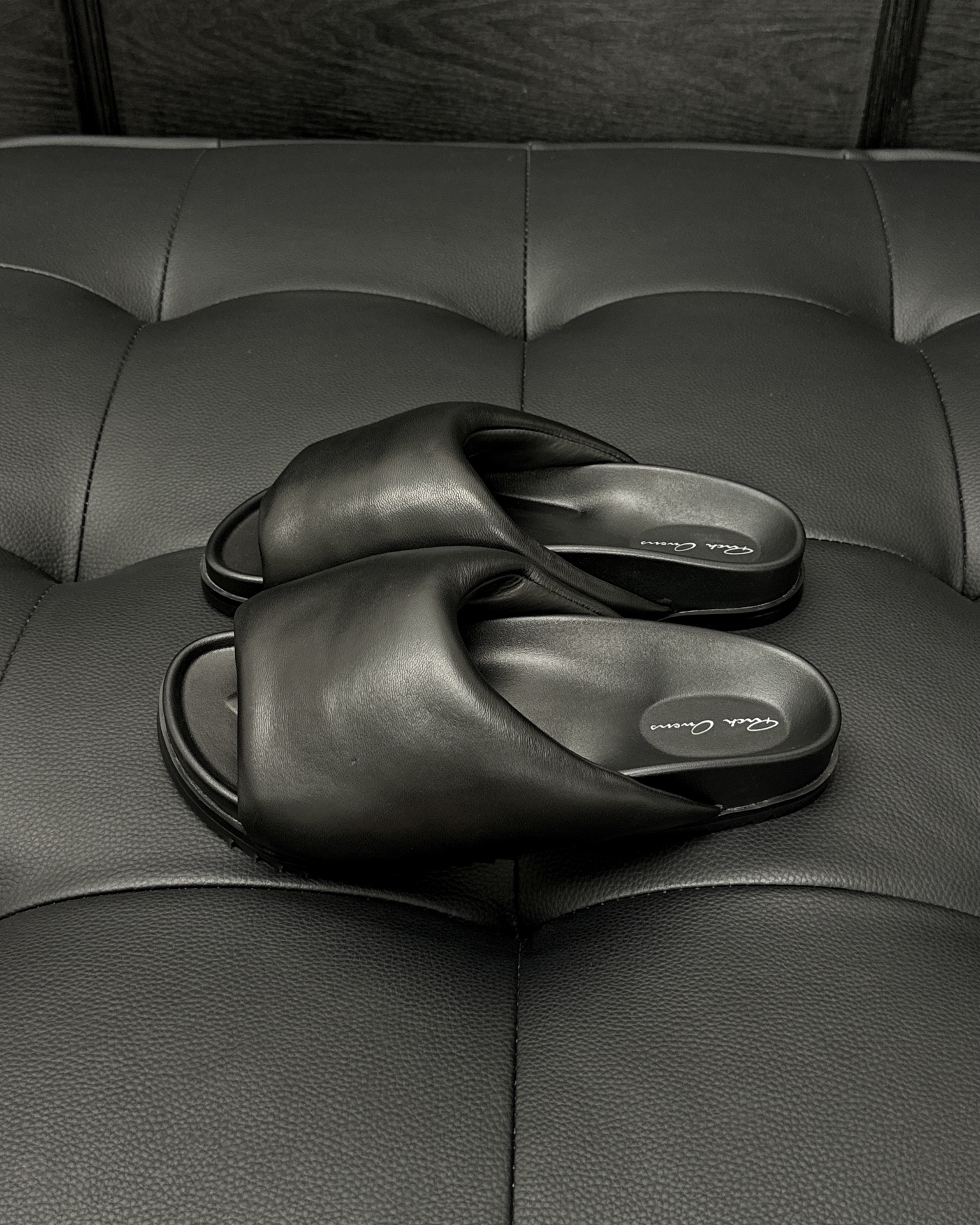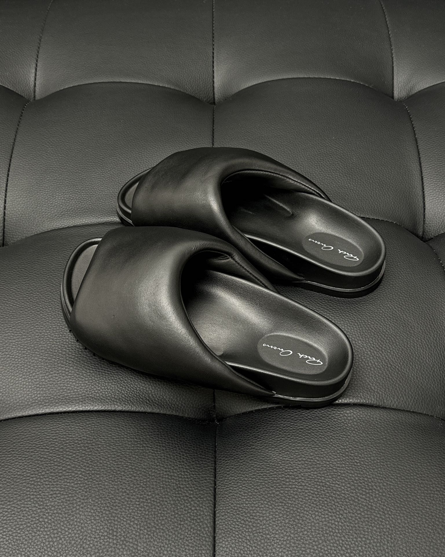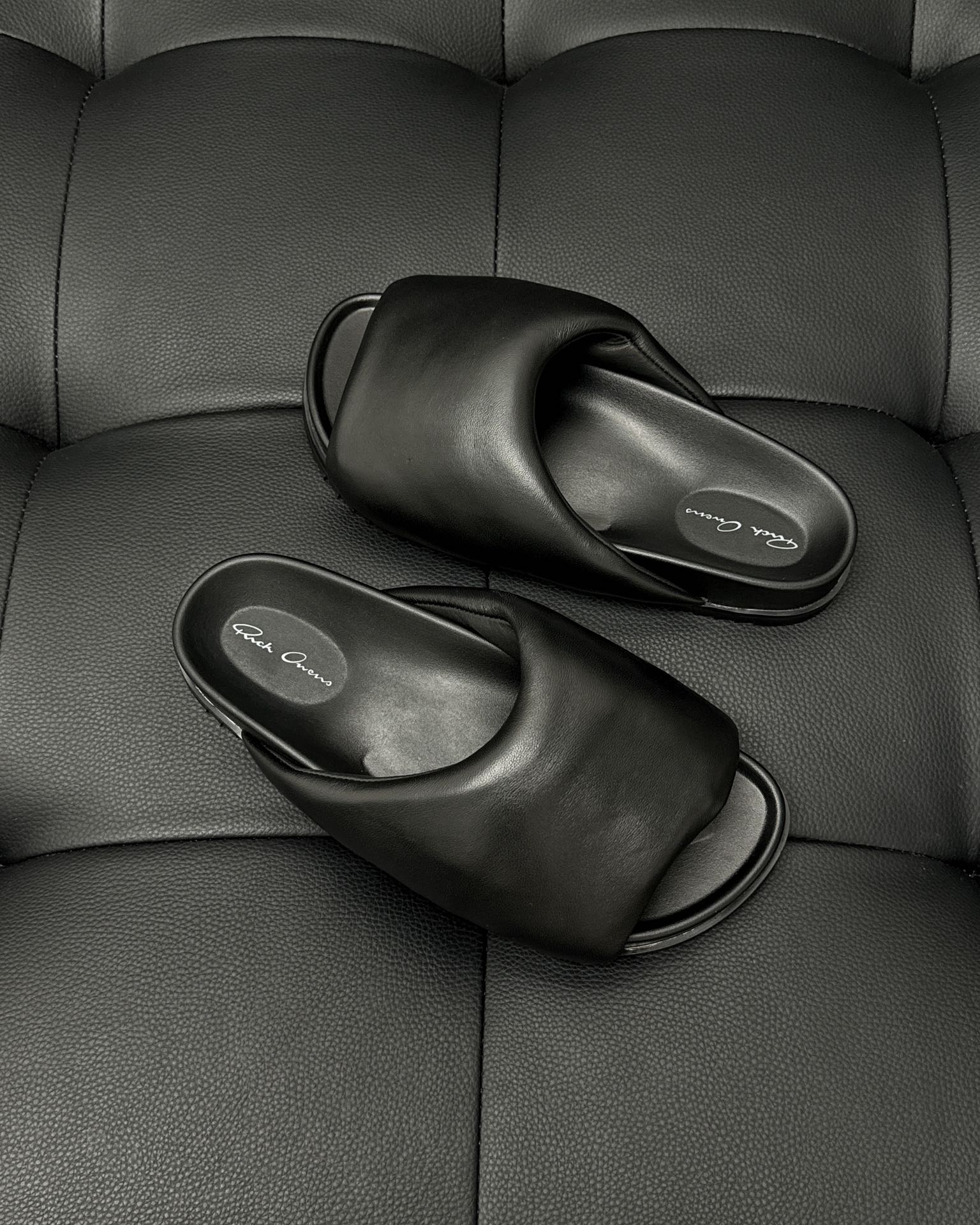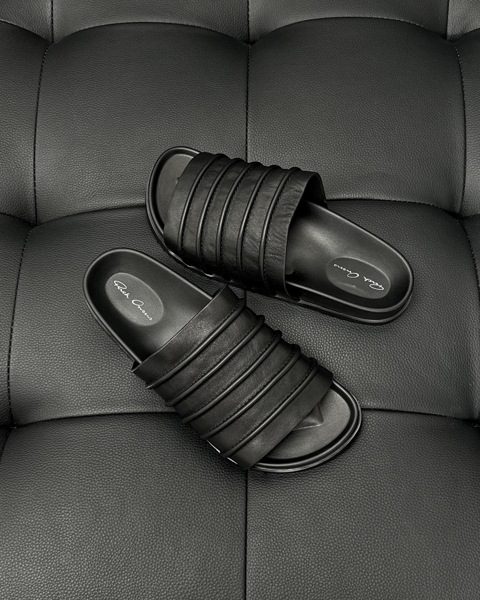 NIGO Rick Owens Men's Spring Summer Autumn Black Patchwork Leather Slippers Comfortable Casual Shoes Ngvp #nigo8756