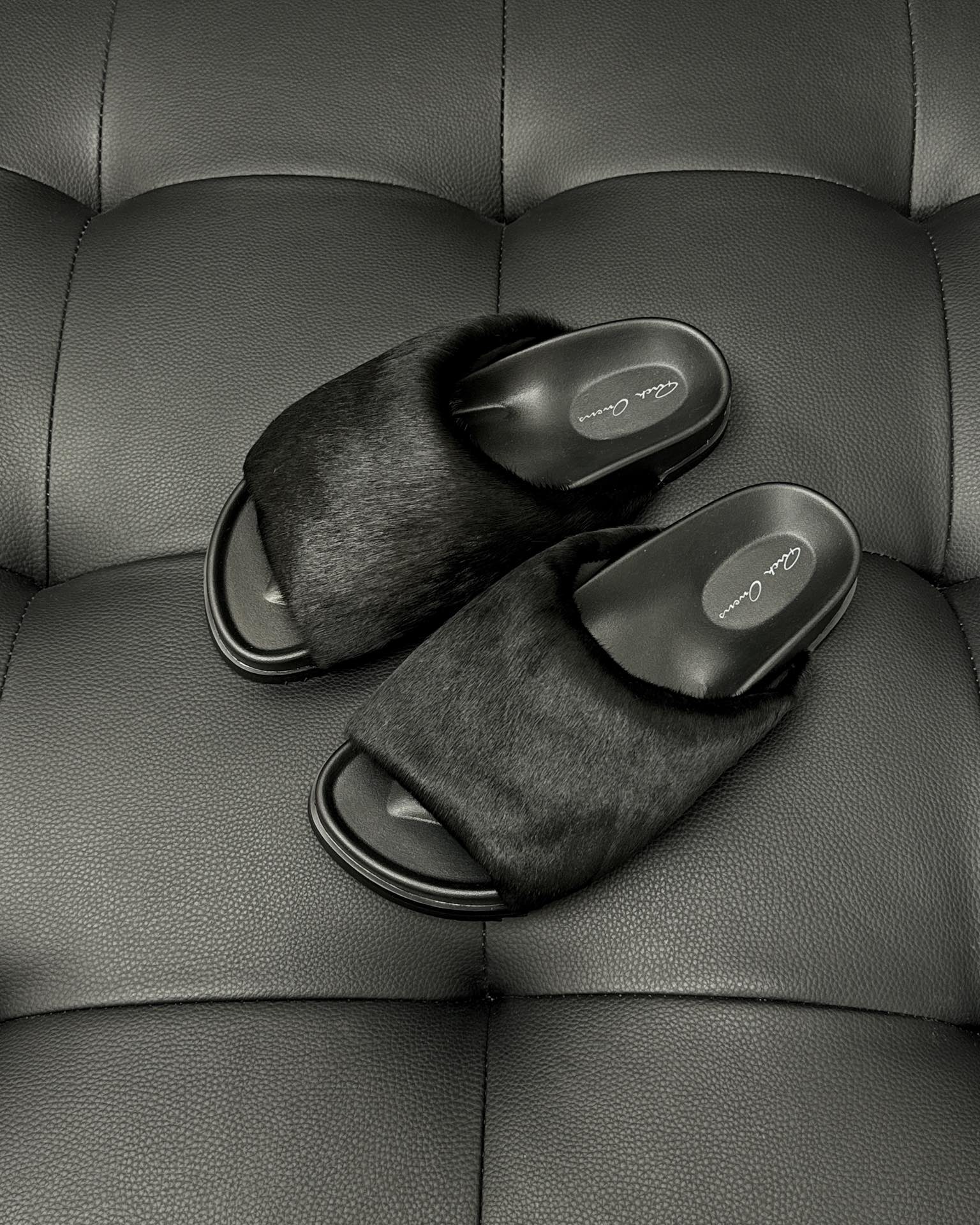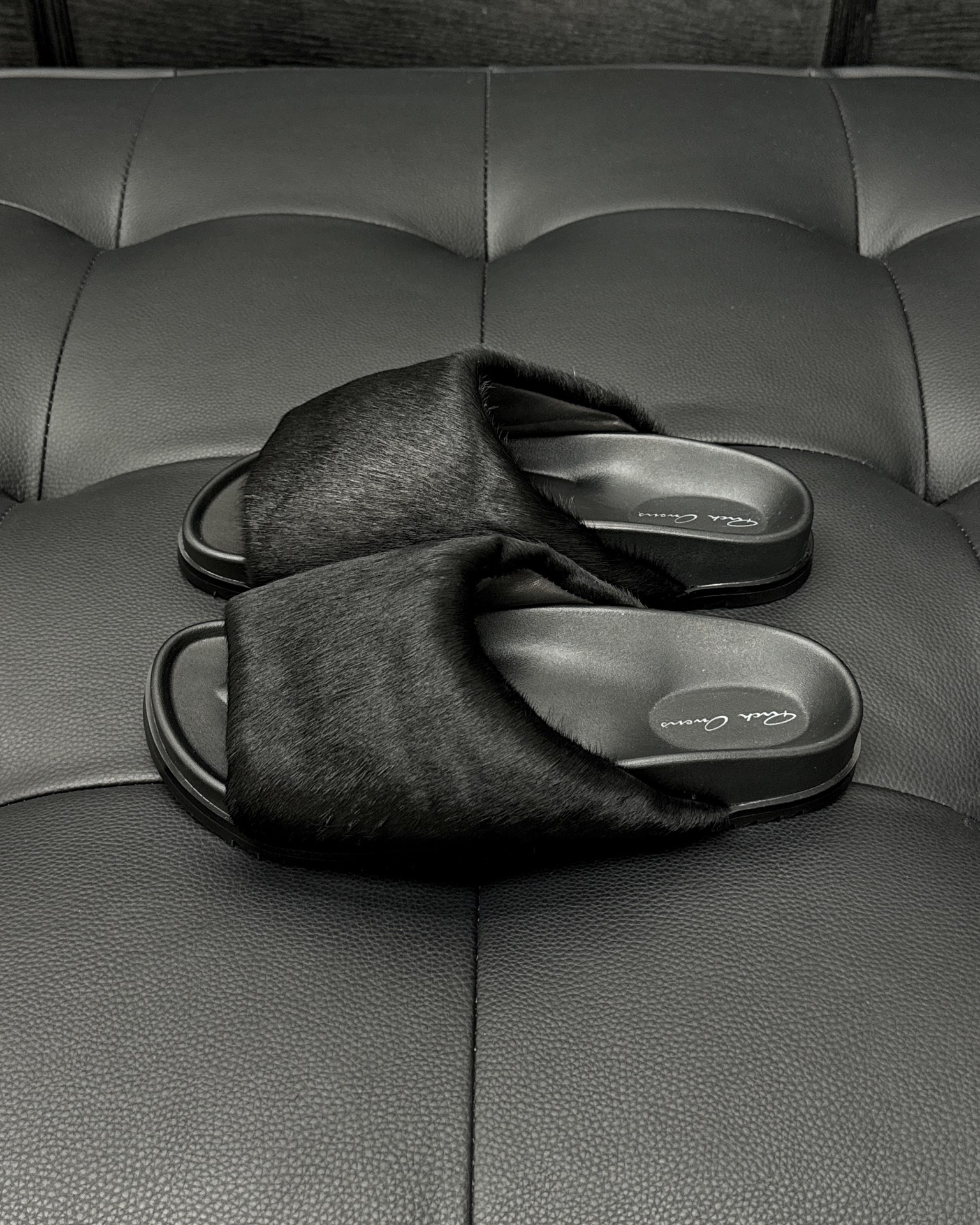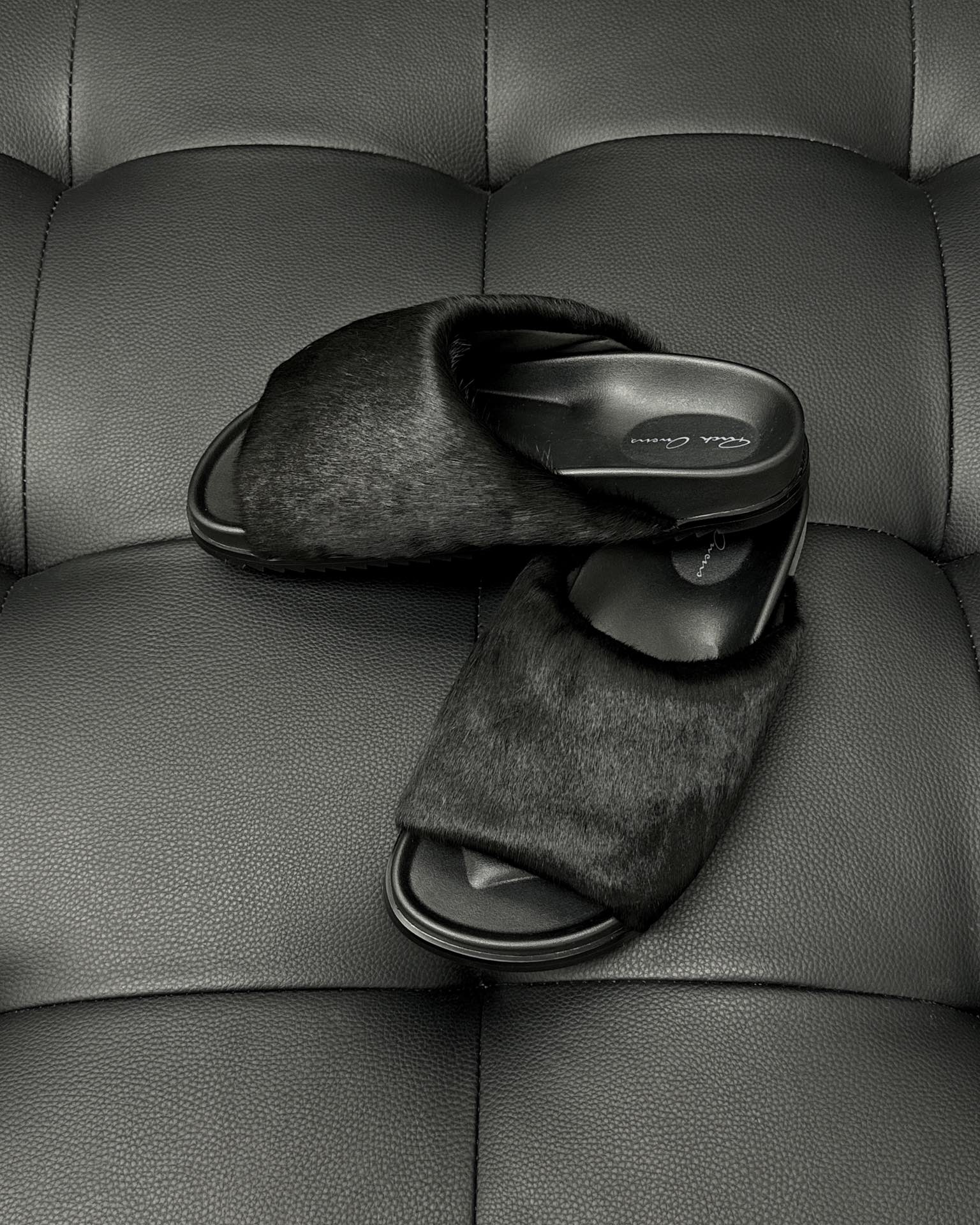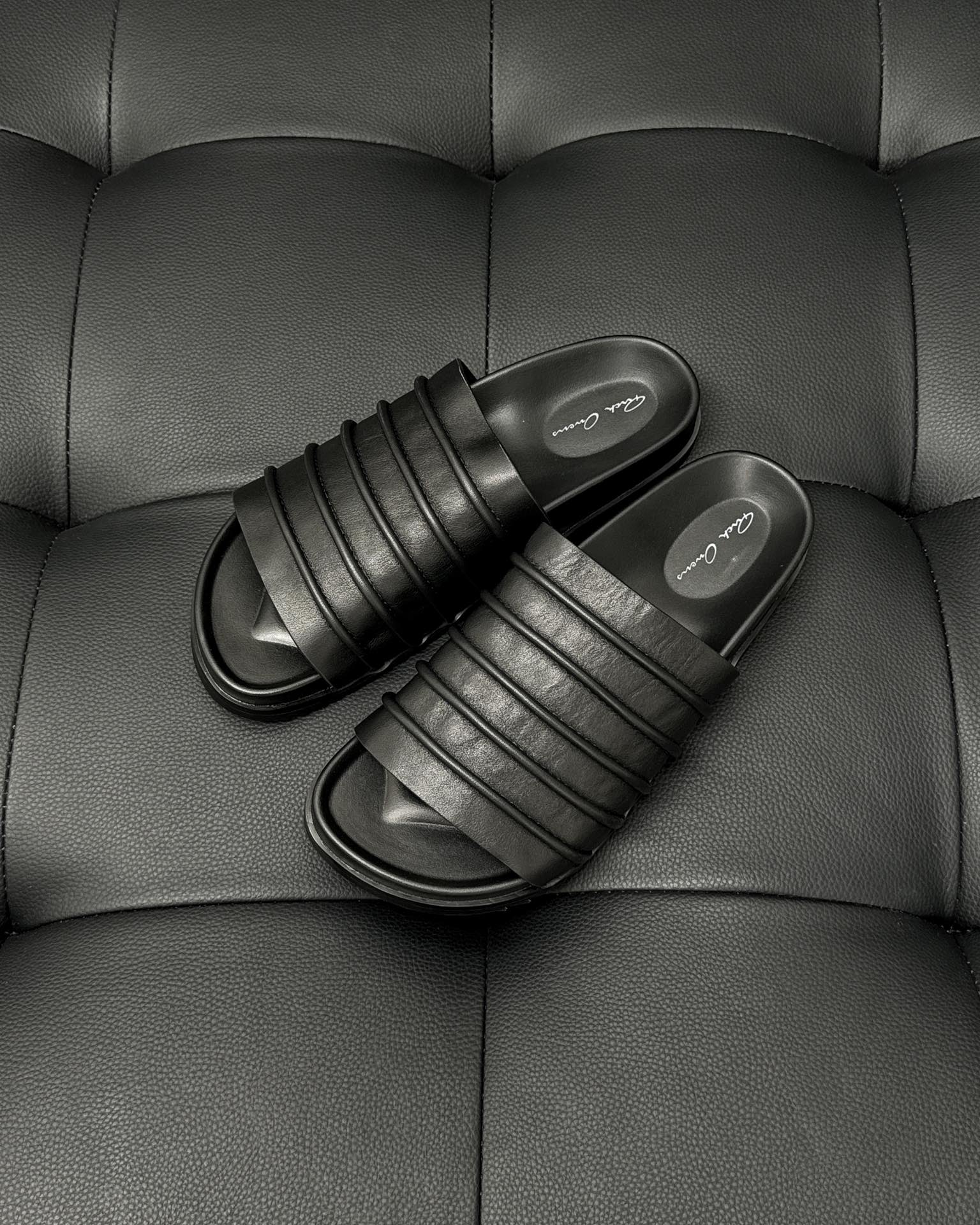 NIGO Rick Owens Men's Spring Summer Autumn Black Patchwork Leather Slippers Comfortable Casual Shoes Ngvp #nigo8756