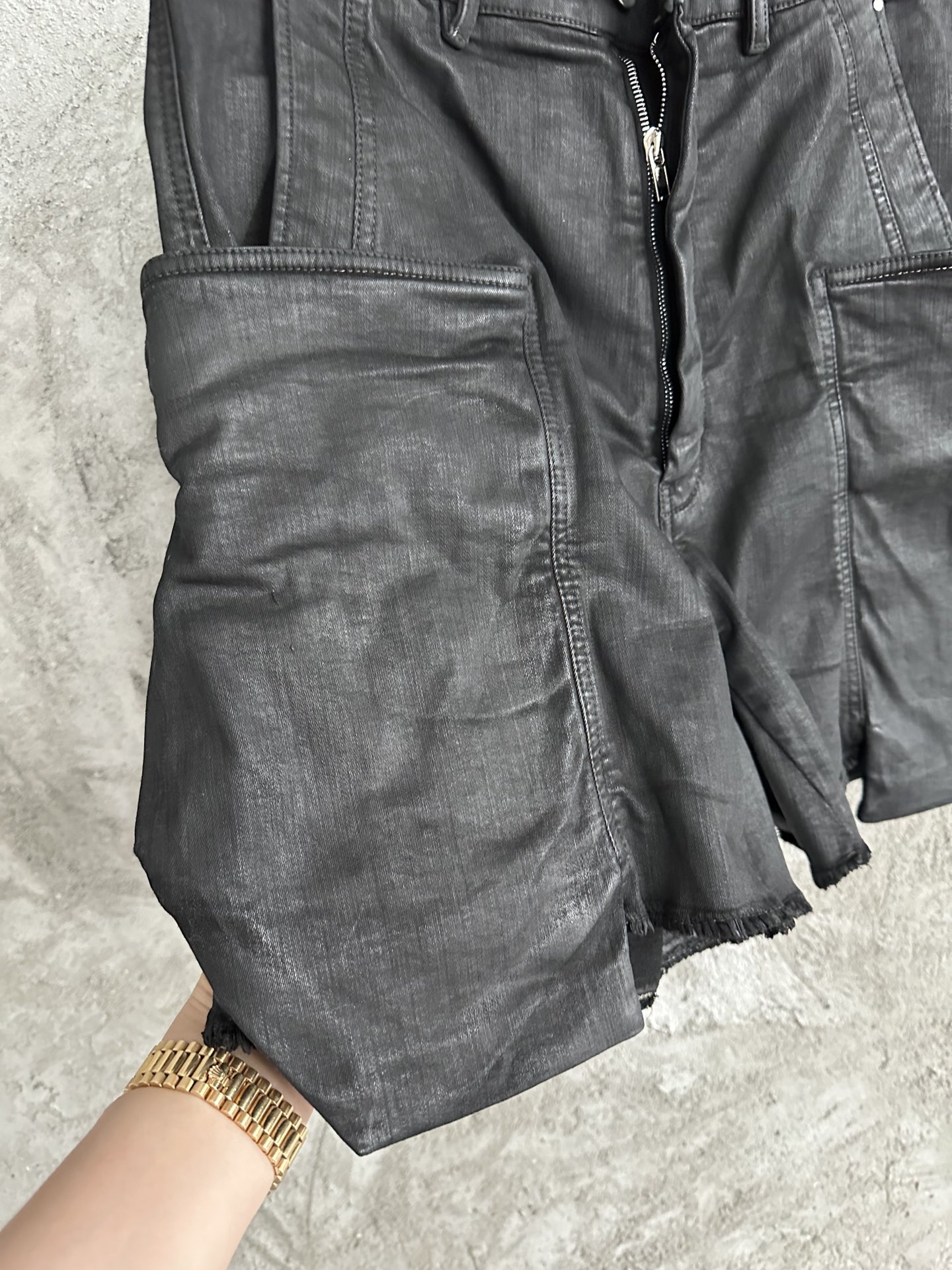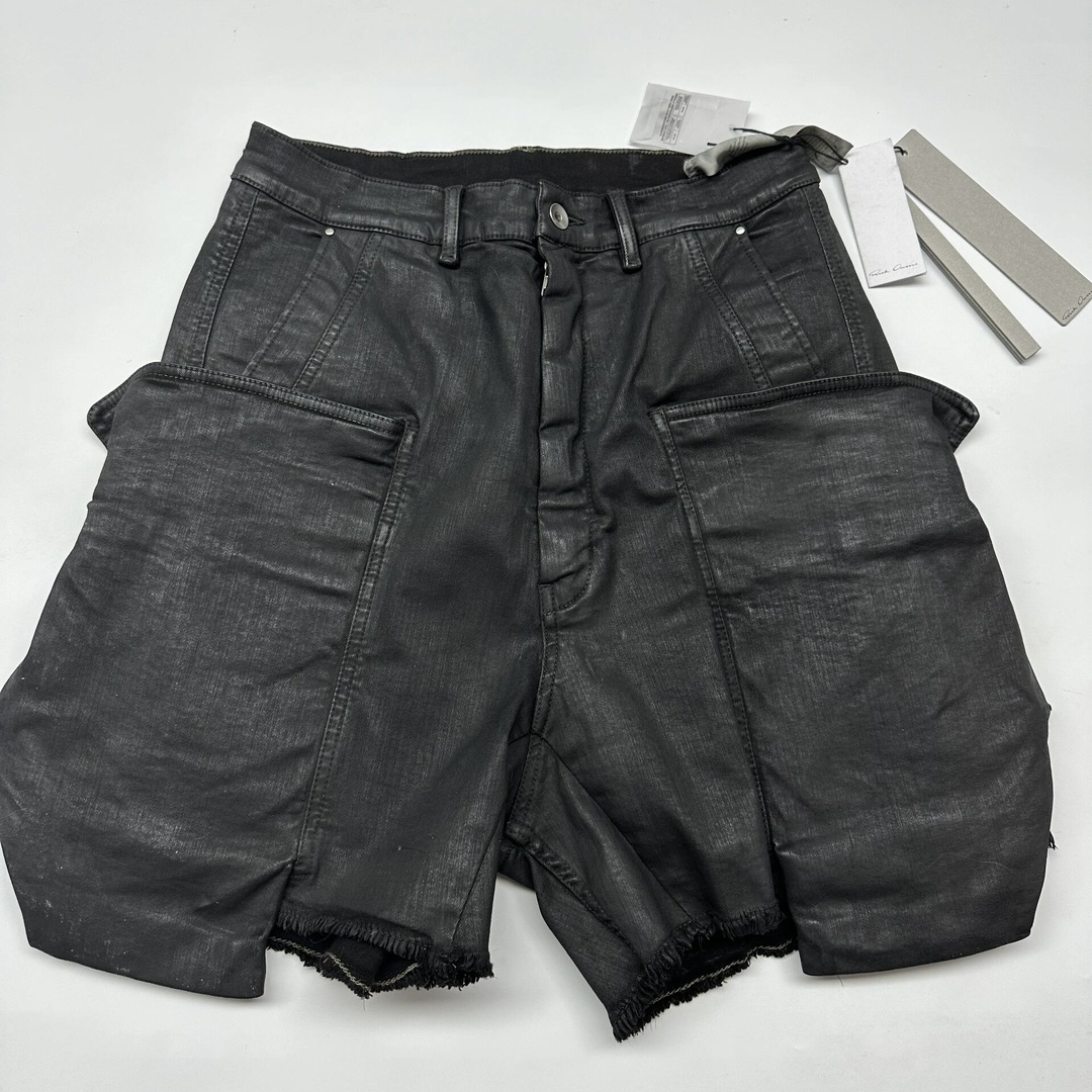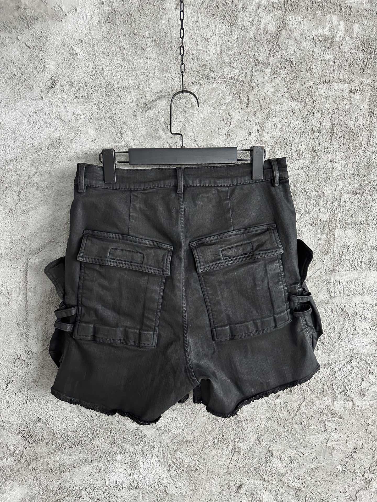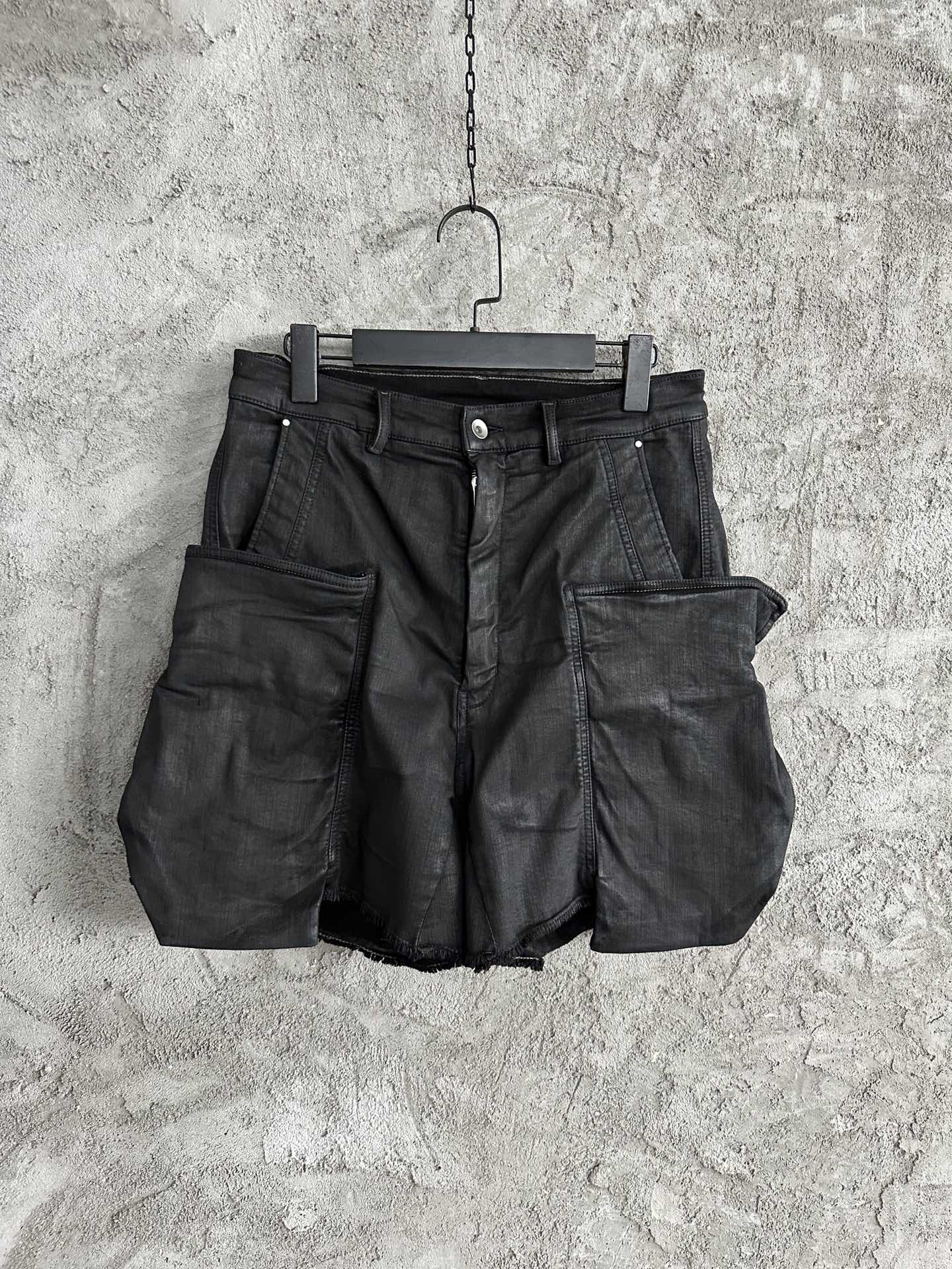 NIGO Rick Owens Men's Summer Mid Waist Zipper Loose Straight Waxed Casual Black Multi-Pocket Shorts Ngvp #nigo8661