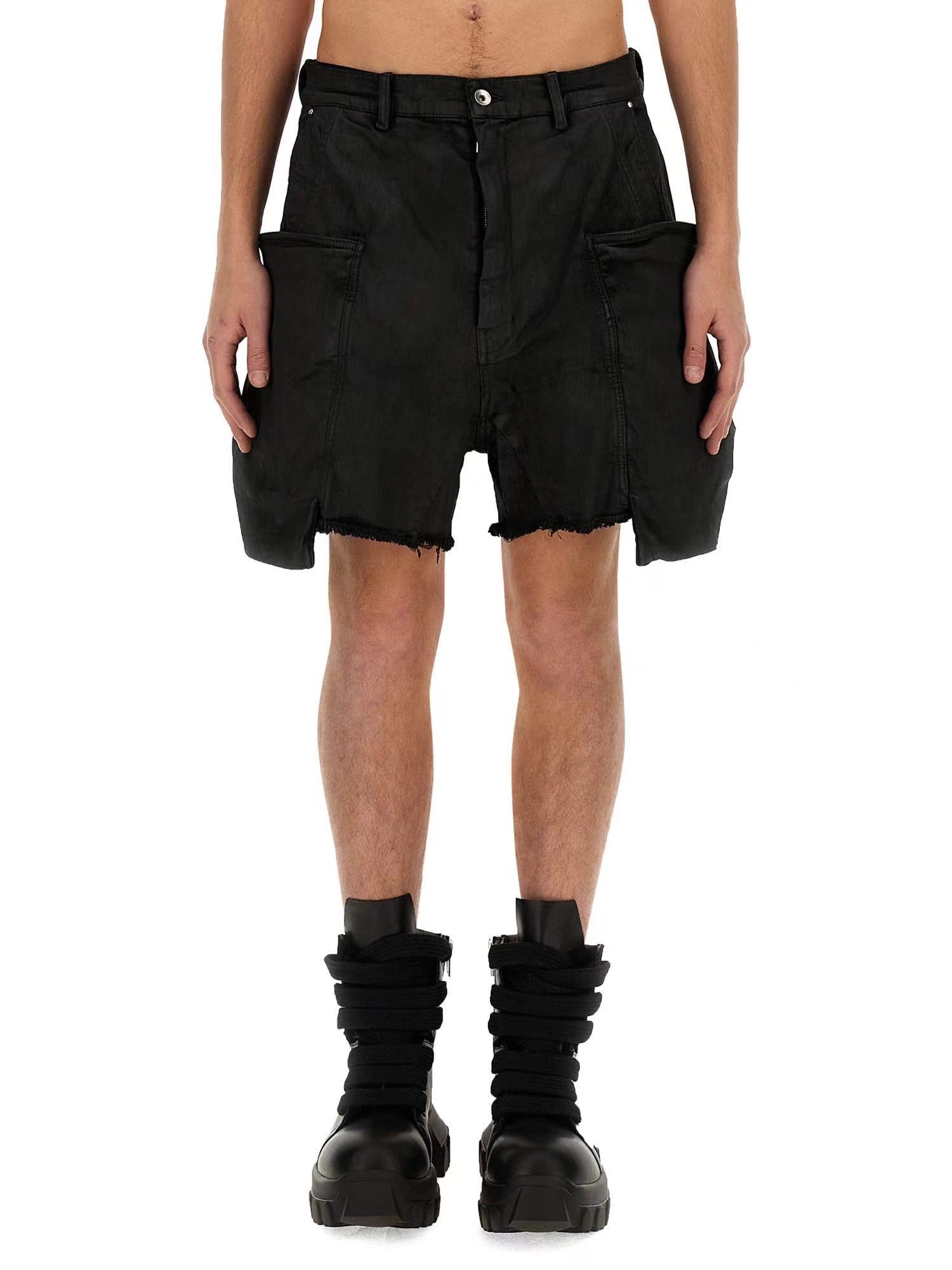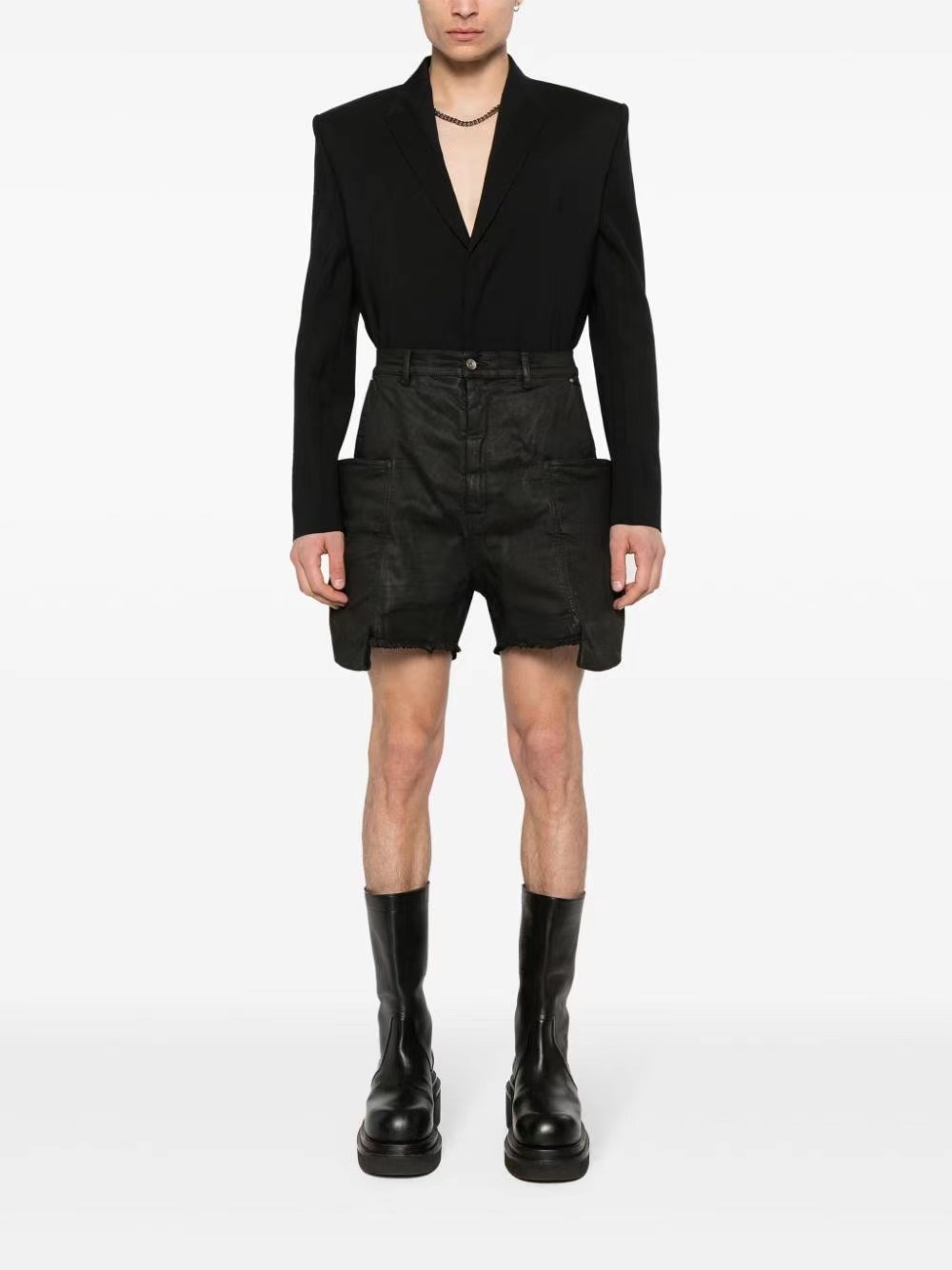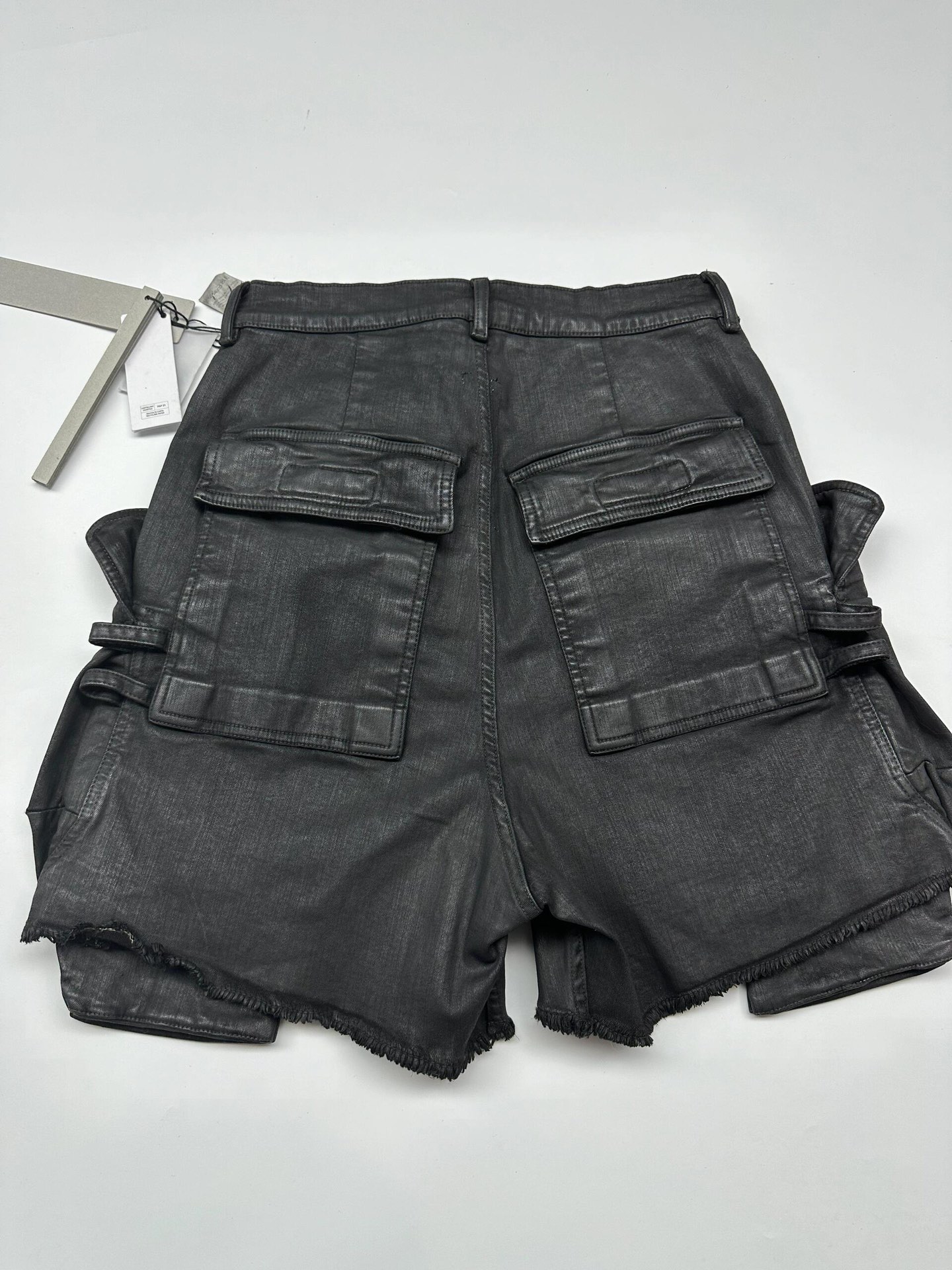 NIGO Rick Owens Men's Summer Mid Waist Zipper Loose Straight Waxed Casual Black Multi-Pocket Shorts Ngvp #nigo8661