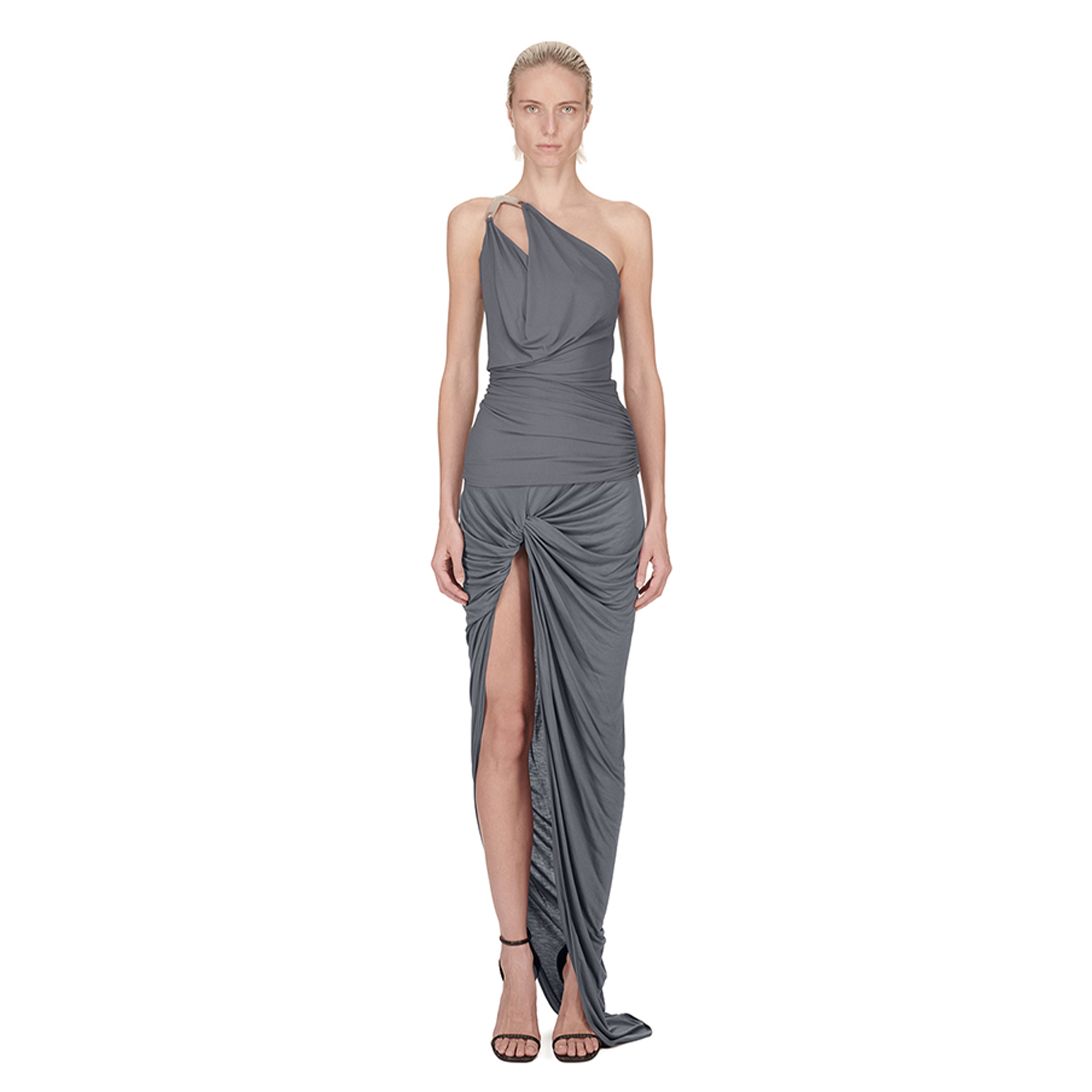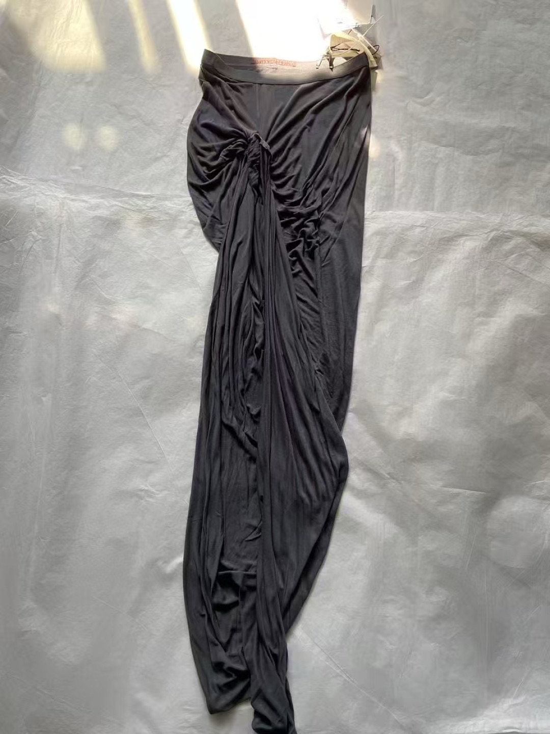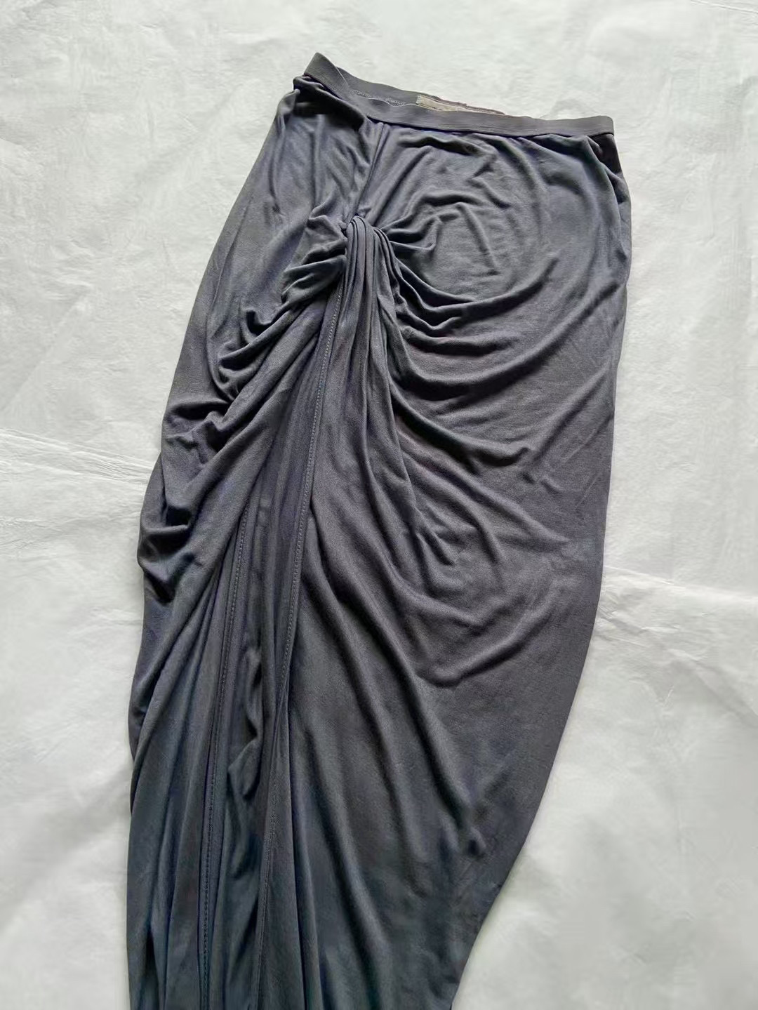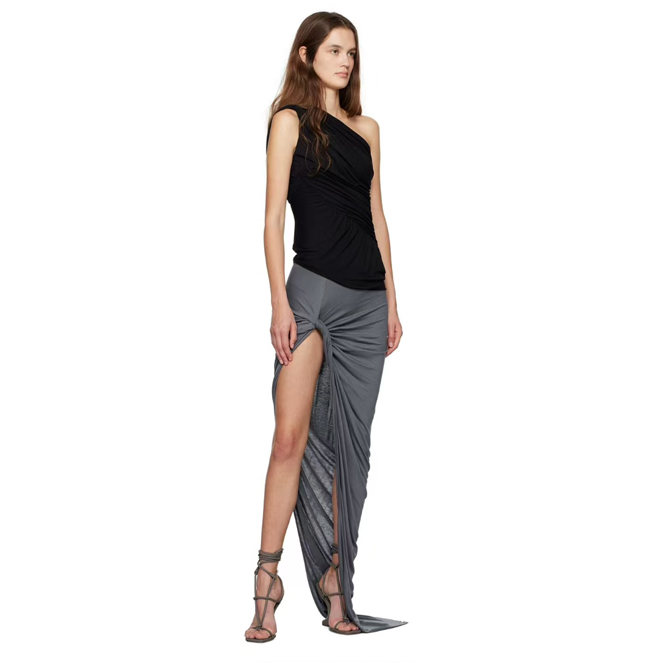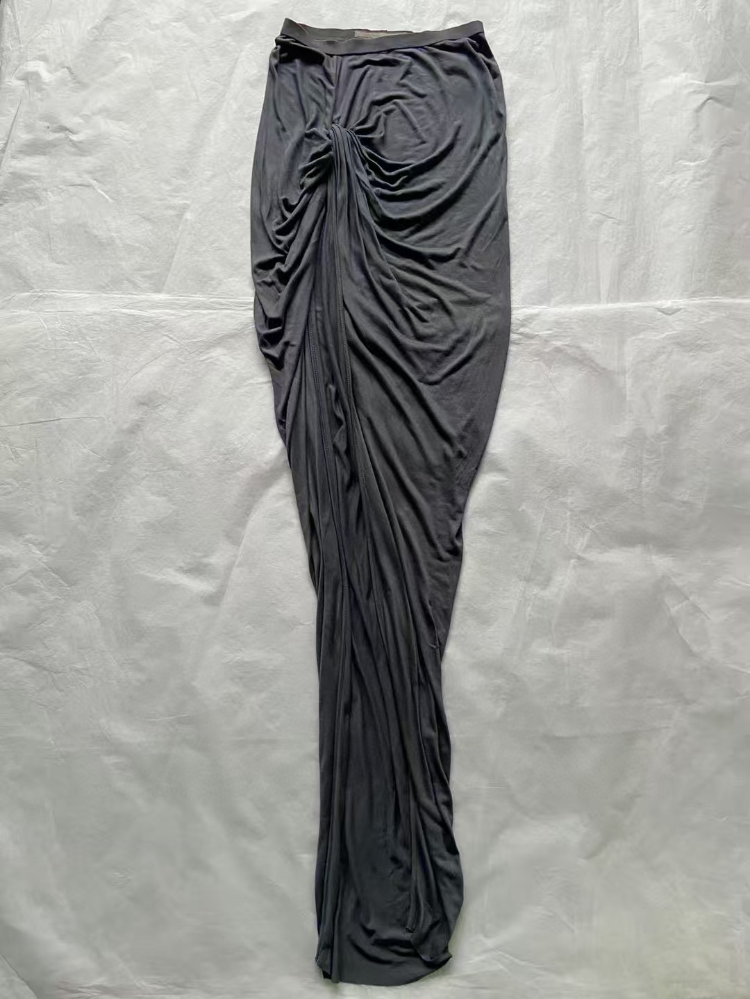 NIGO Rick Owens Women‘s Iron Grey Fibre Knit Twisted Pleated Halter Dark Irregular Slim Sexy Knotted Knit Draggy Hip Long Skirt Ngvp #nigo1493