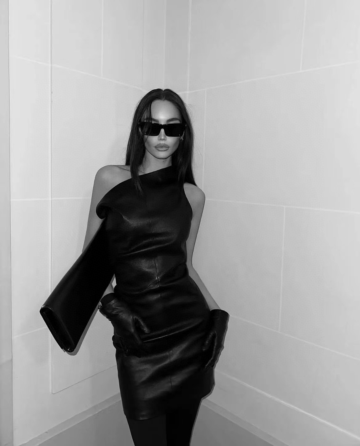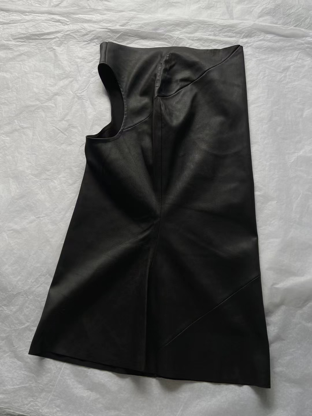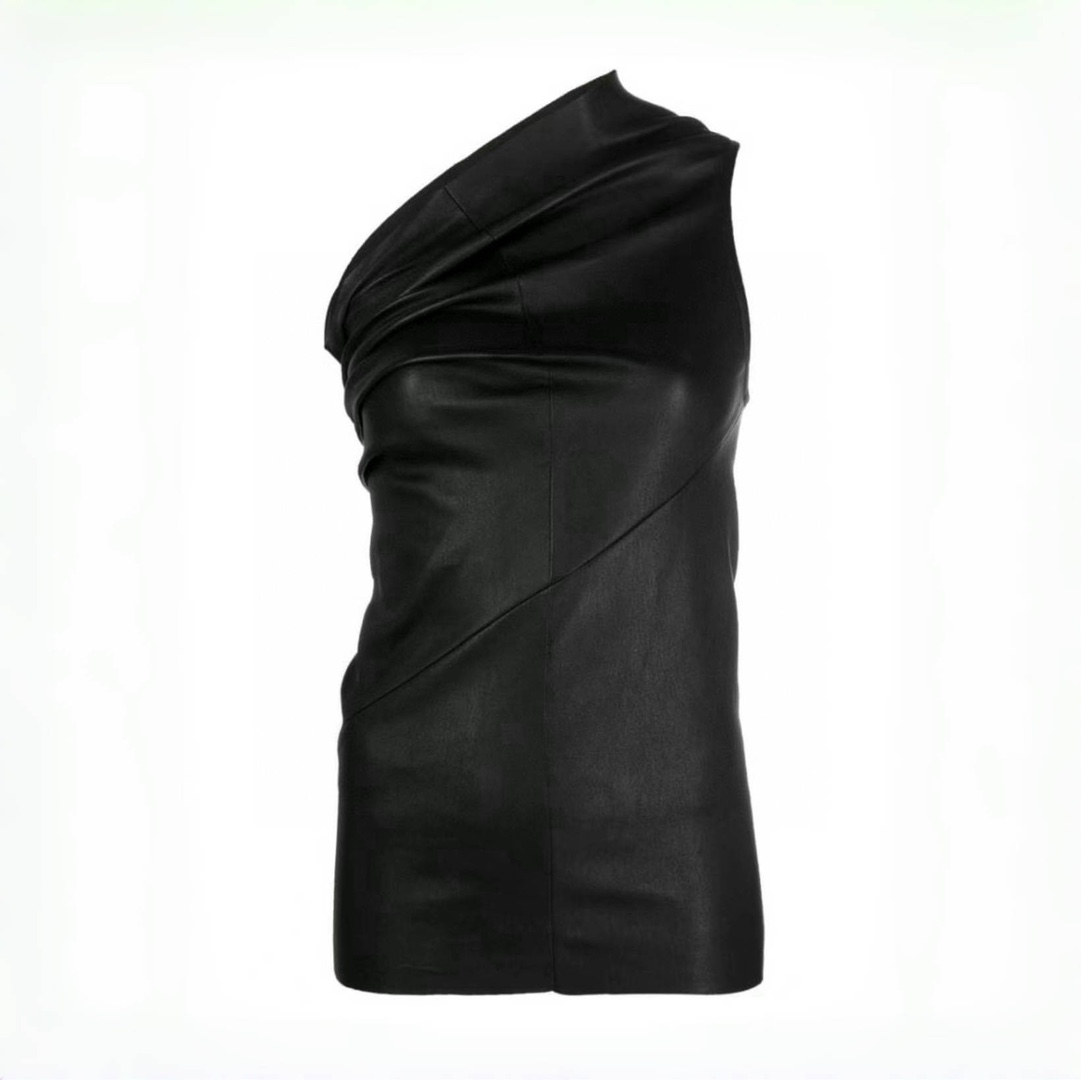 NIGO Rick Owens Women's Summer Lambskin One Shoulder Sleeveless Slim Black Top Shirt Ngvp #nigo9175