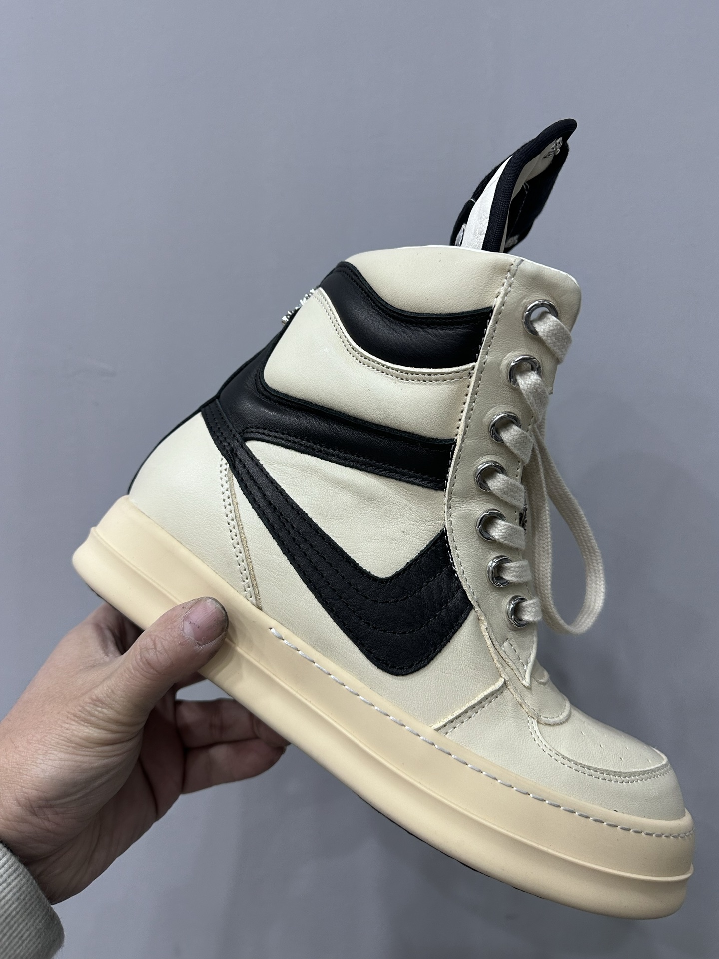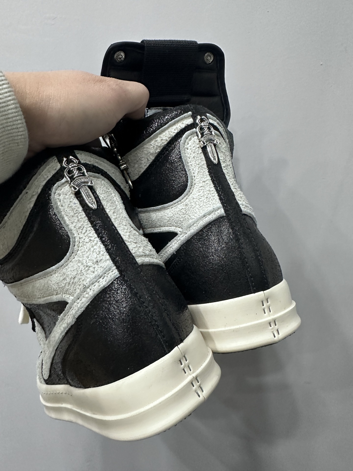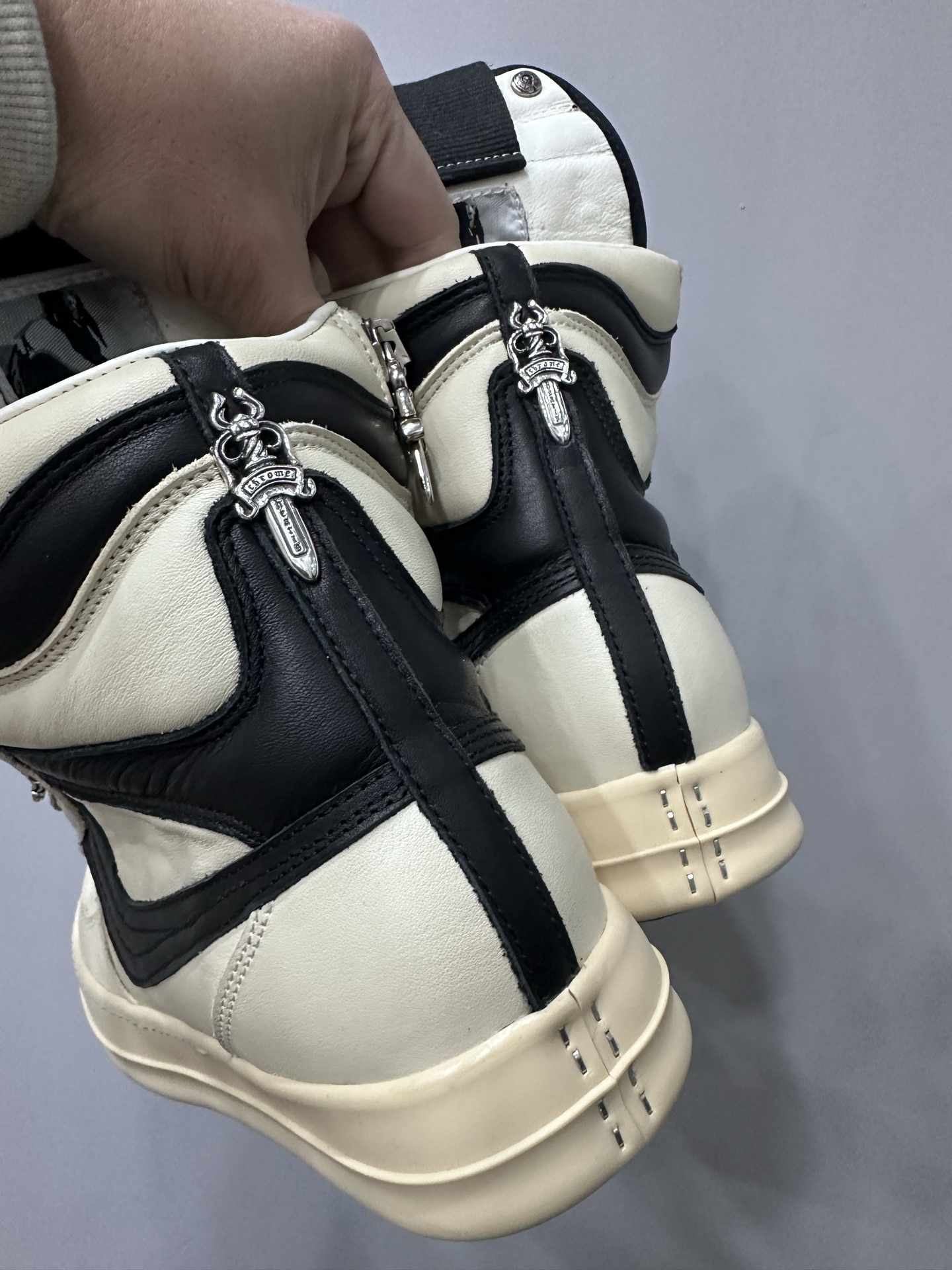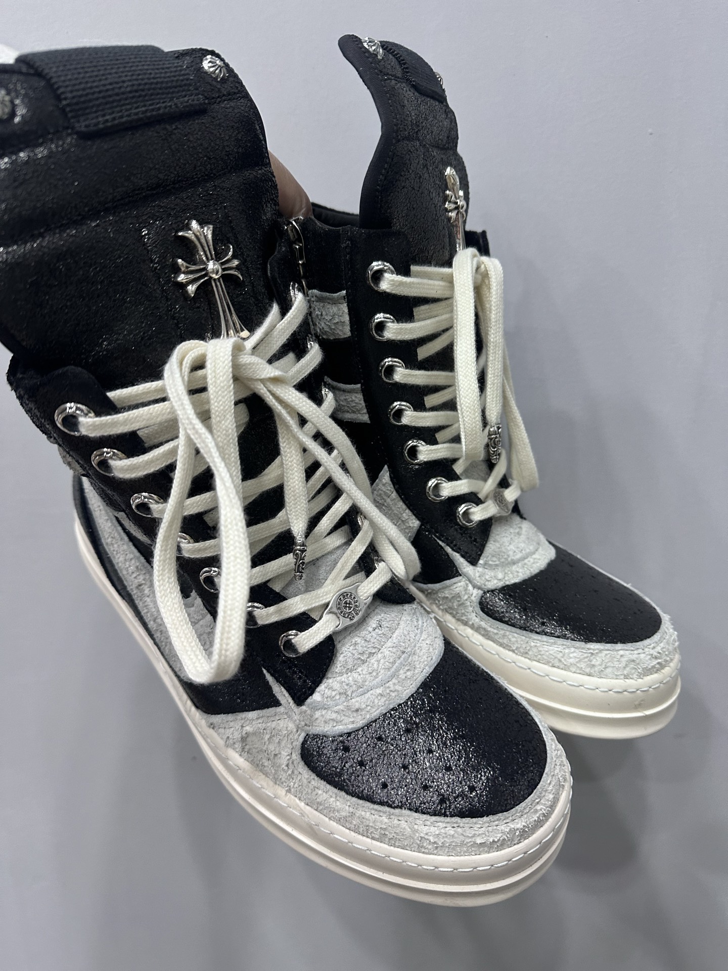 NIGO Rick Owens x Chrome Hearts Geobasket Men's And Women's Solid-colour Leather High-top Lace-up Side Zip Casual Shoes #nigo77726