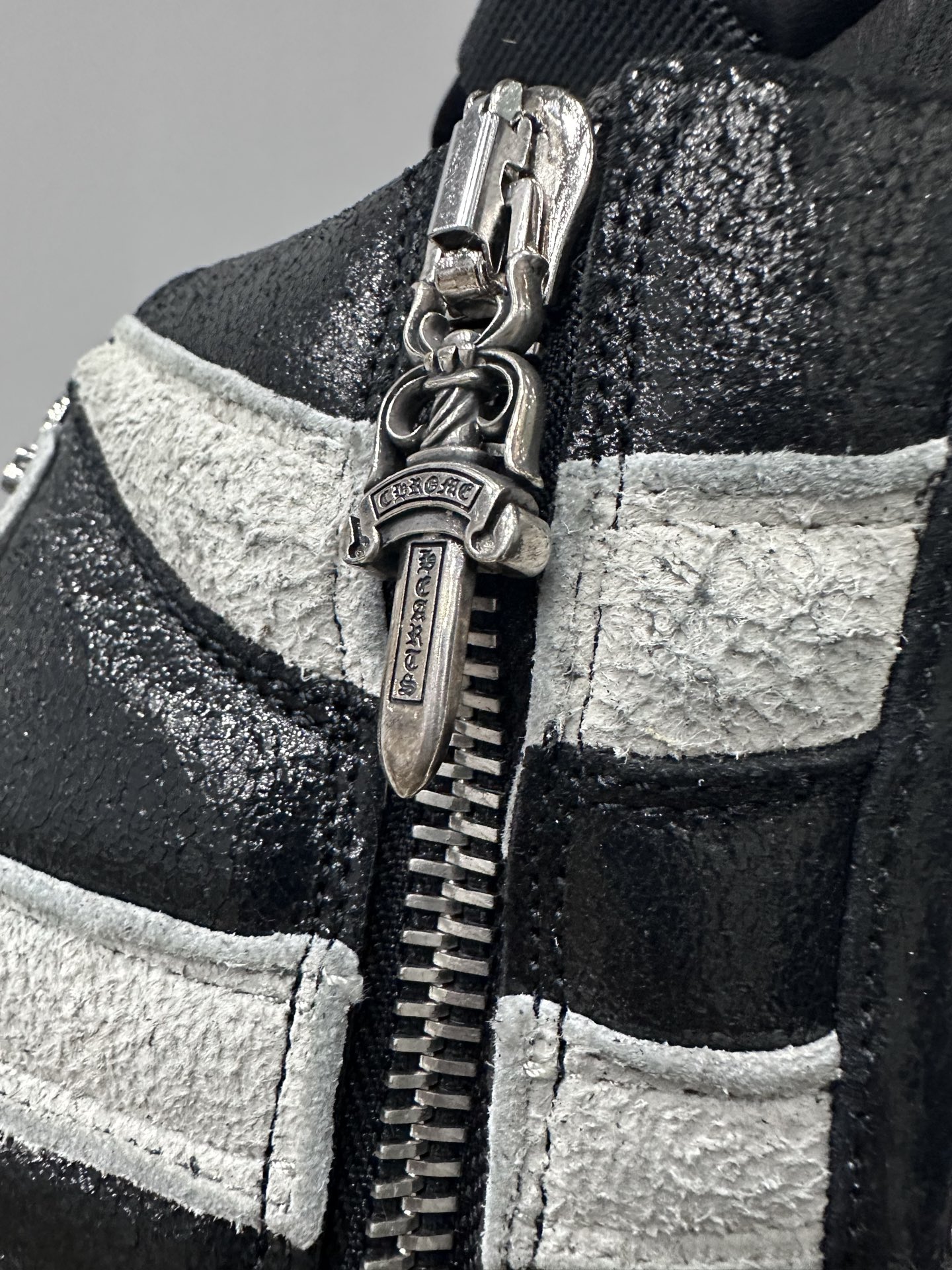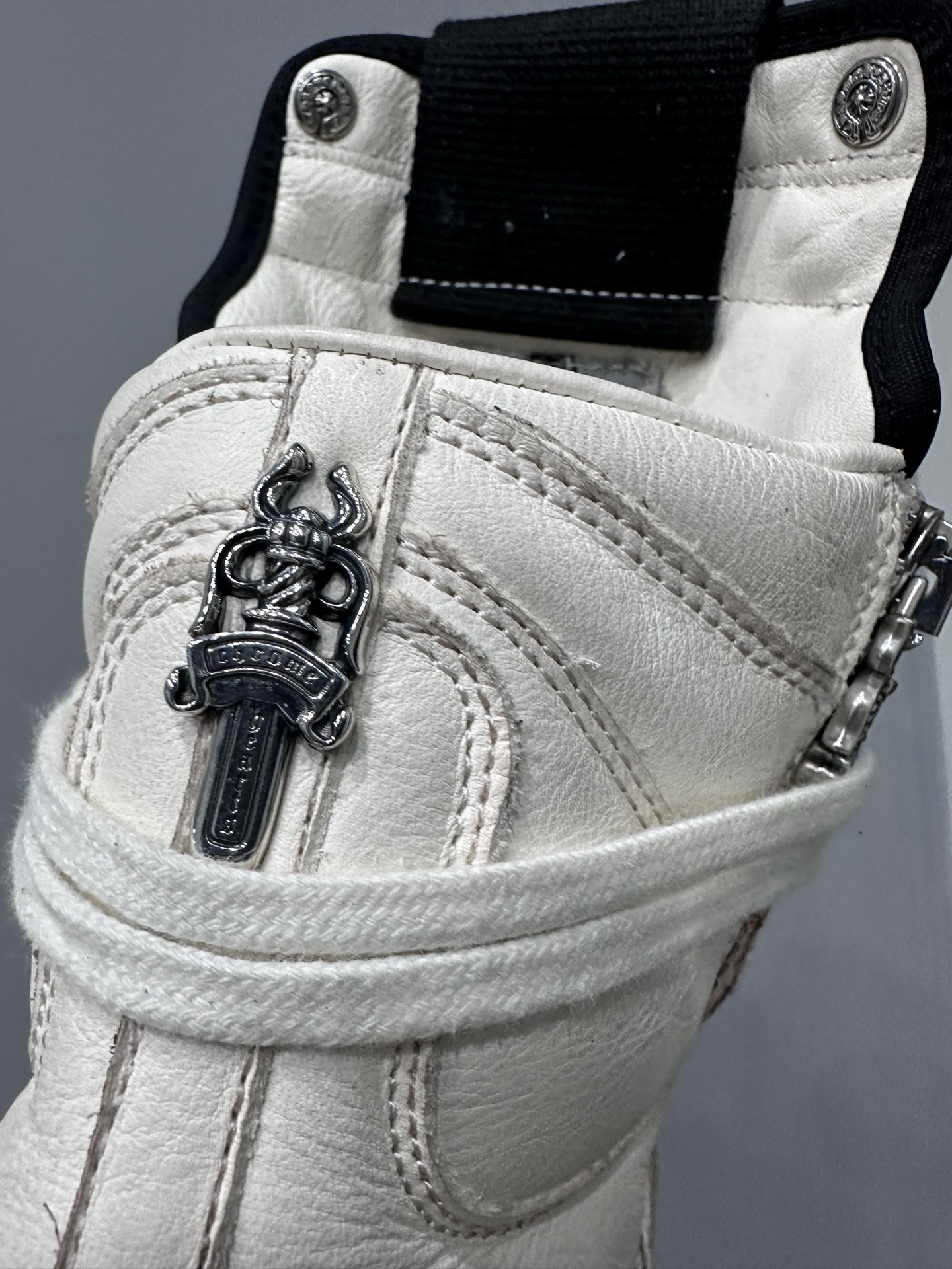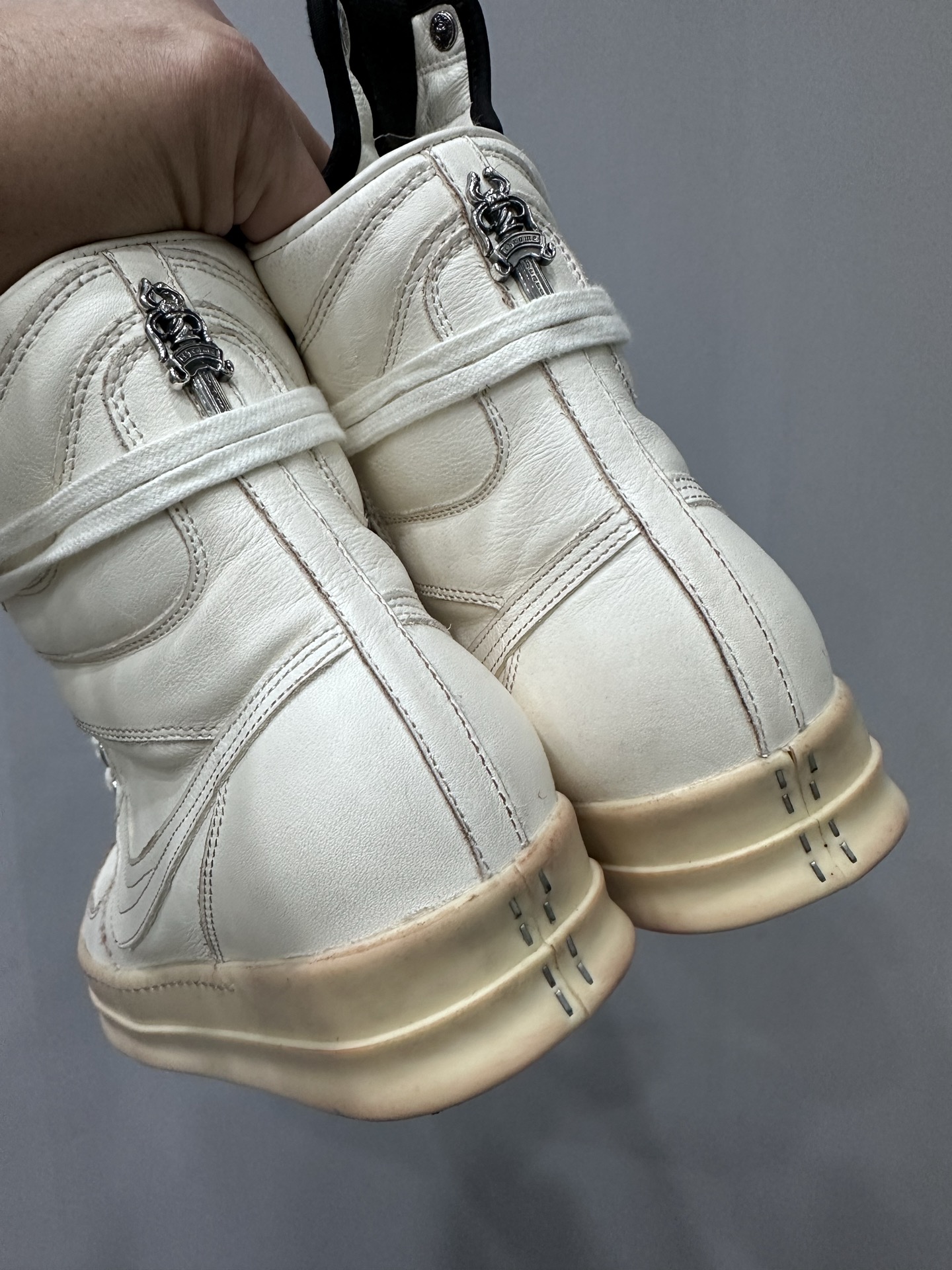 NIGO Rick Owens x Chrome Hearts Geobasket Men's And Women's Solid-colour Leather High-top Lace-up Side Zip Casual Shoes #nigo77726