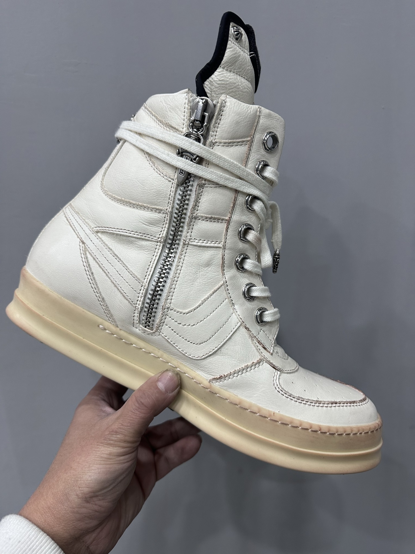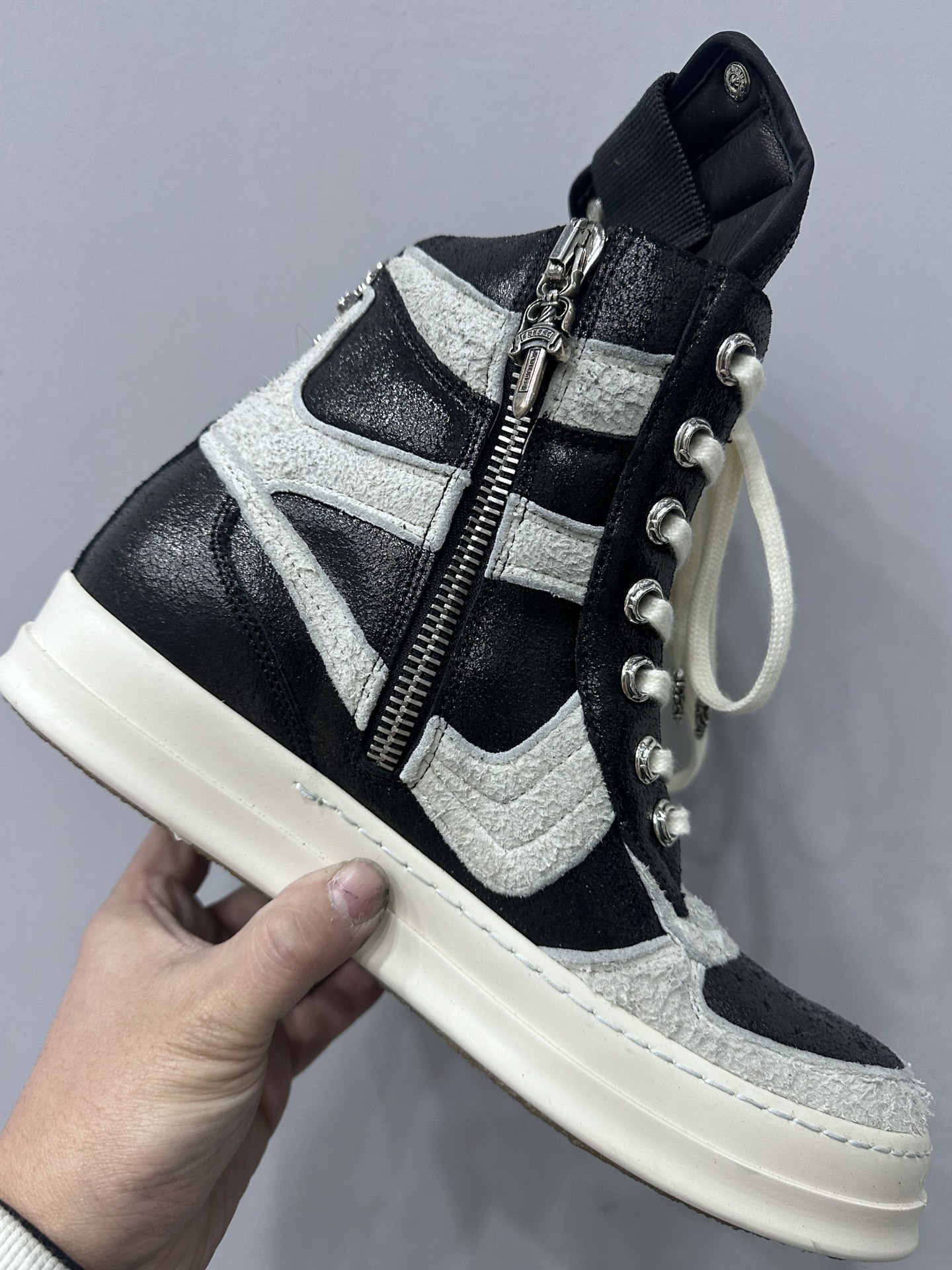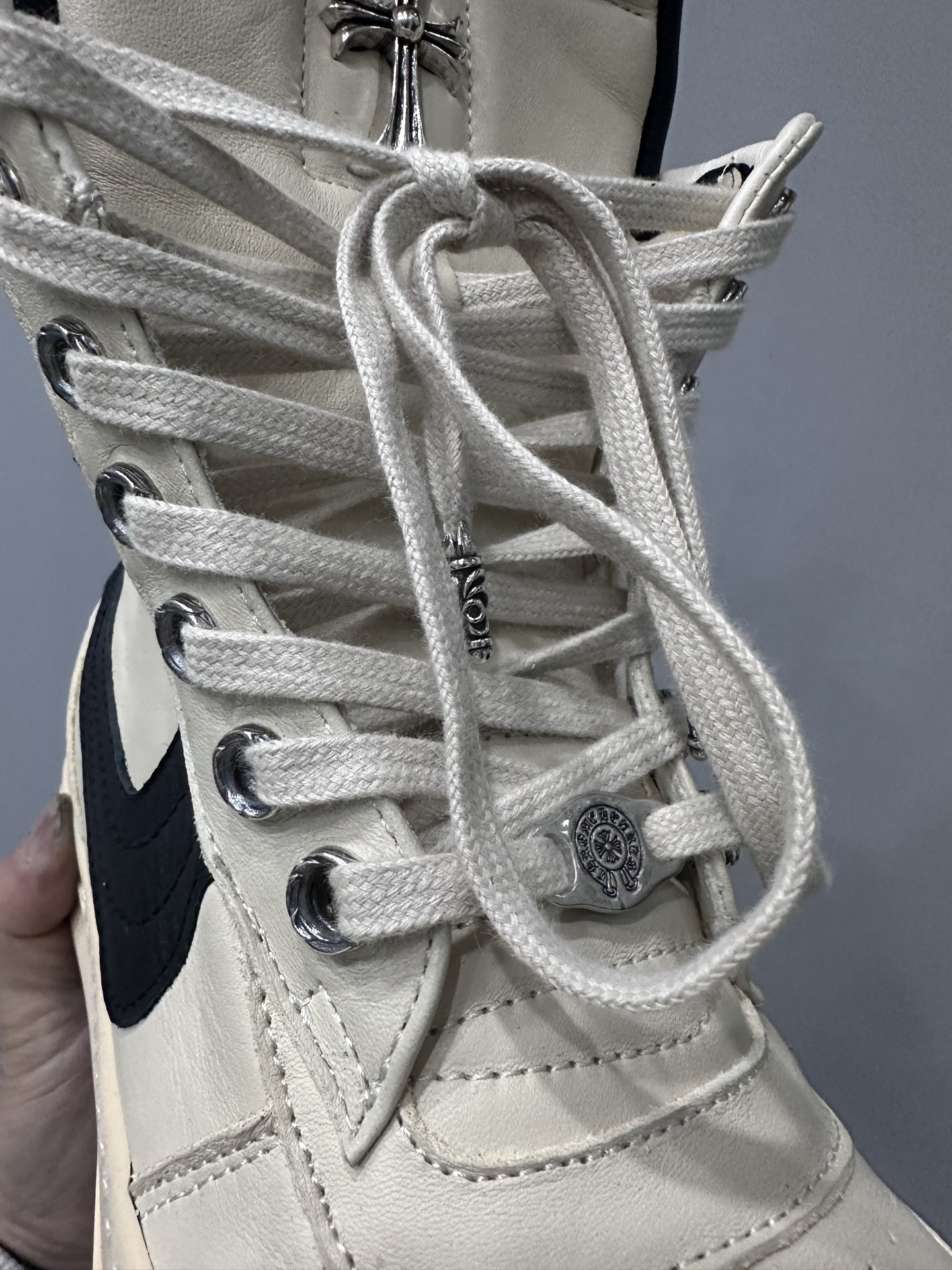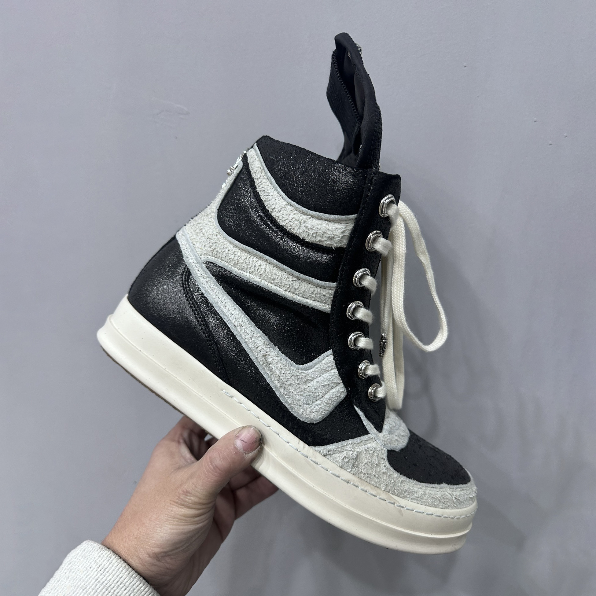 NIGO Rick Owens x Chrome Hearts Geobasket Men's And Women's Solid-colour Leather High-top Lace-up Side Zip Casual Shoes #nigo77726