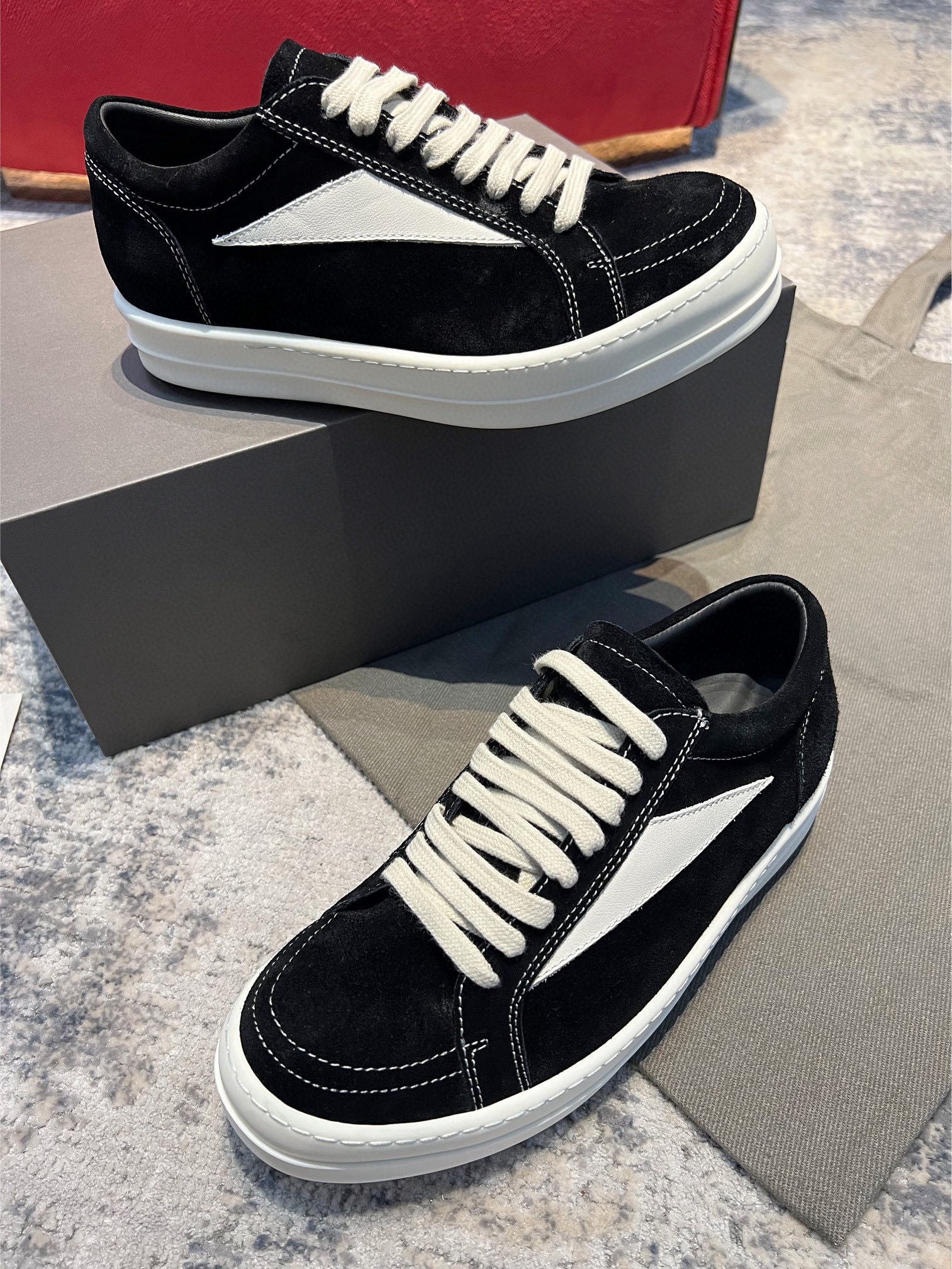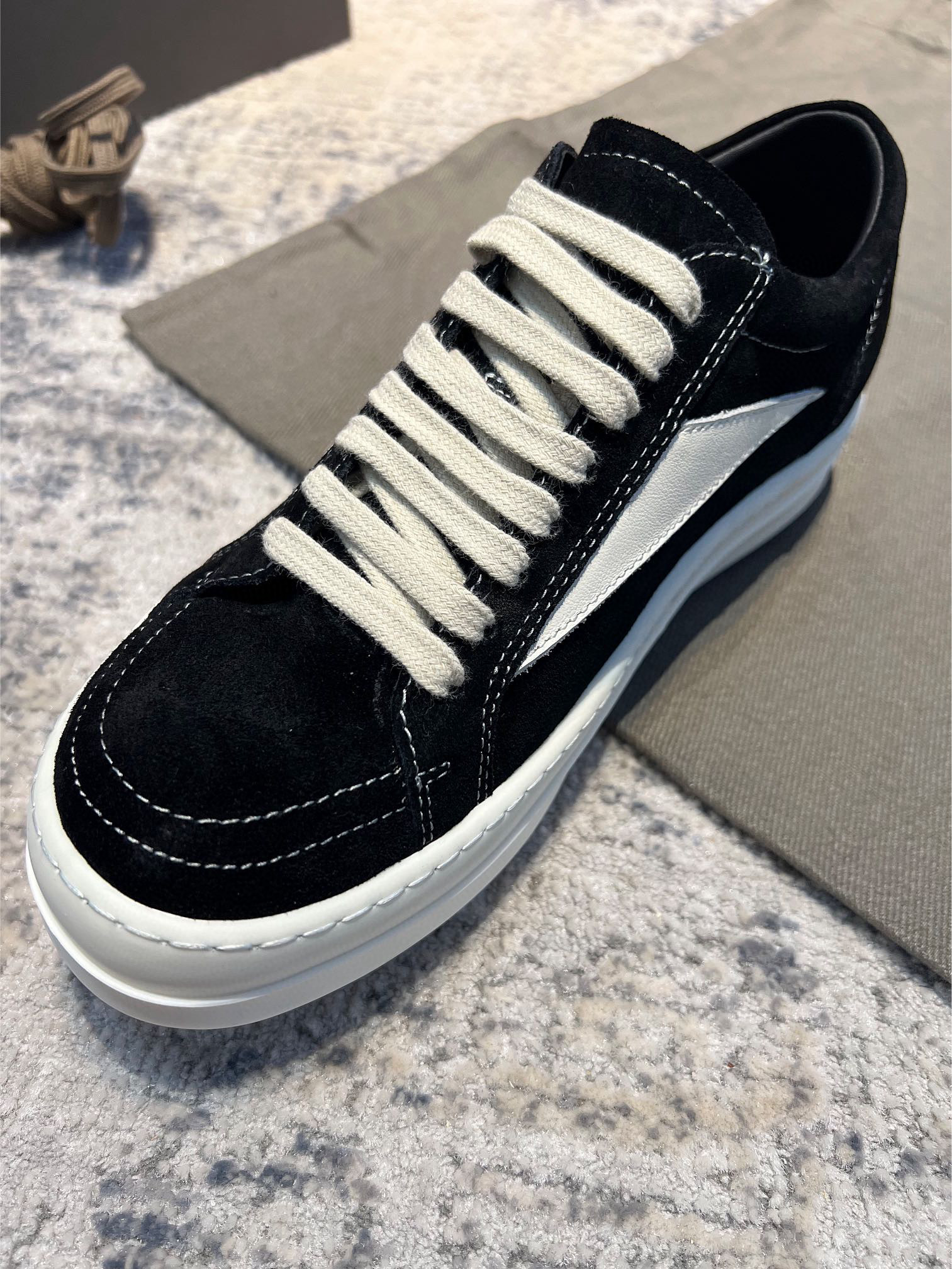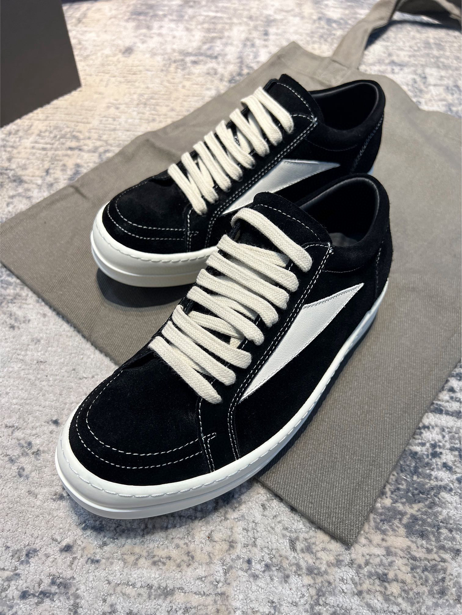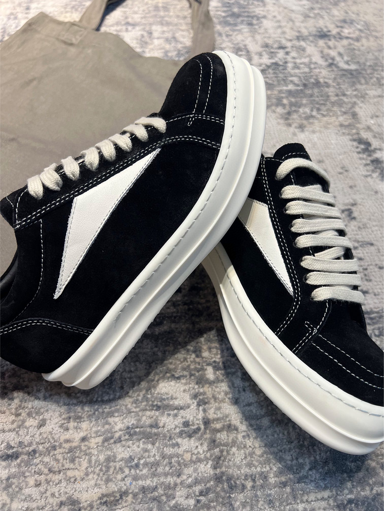 NIGO Rick Owens X Vans Men's and Women's Black and White Patchwork Leather Comfort Low Top Lace-Up Board Shoes #nigo76246