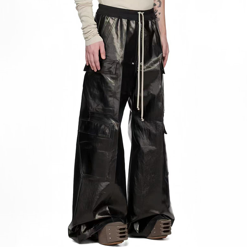 NIGO Rick Owens Men's Fashion Biker Retro Work Pants Zipper Drawstring Black Multi-pocket Loose Long Pants Ngvp #nigo7442