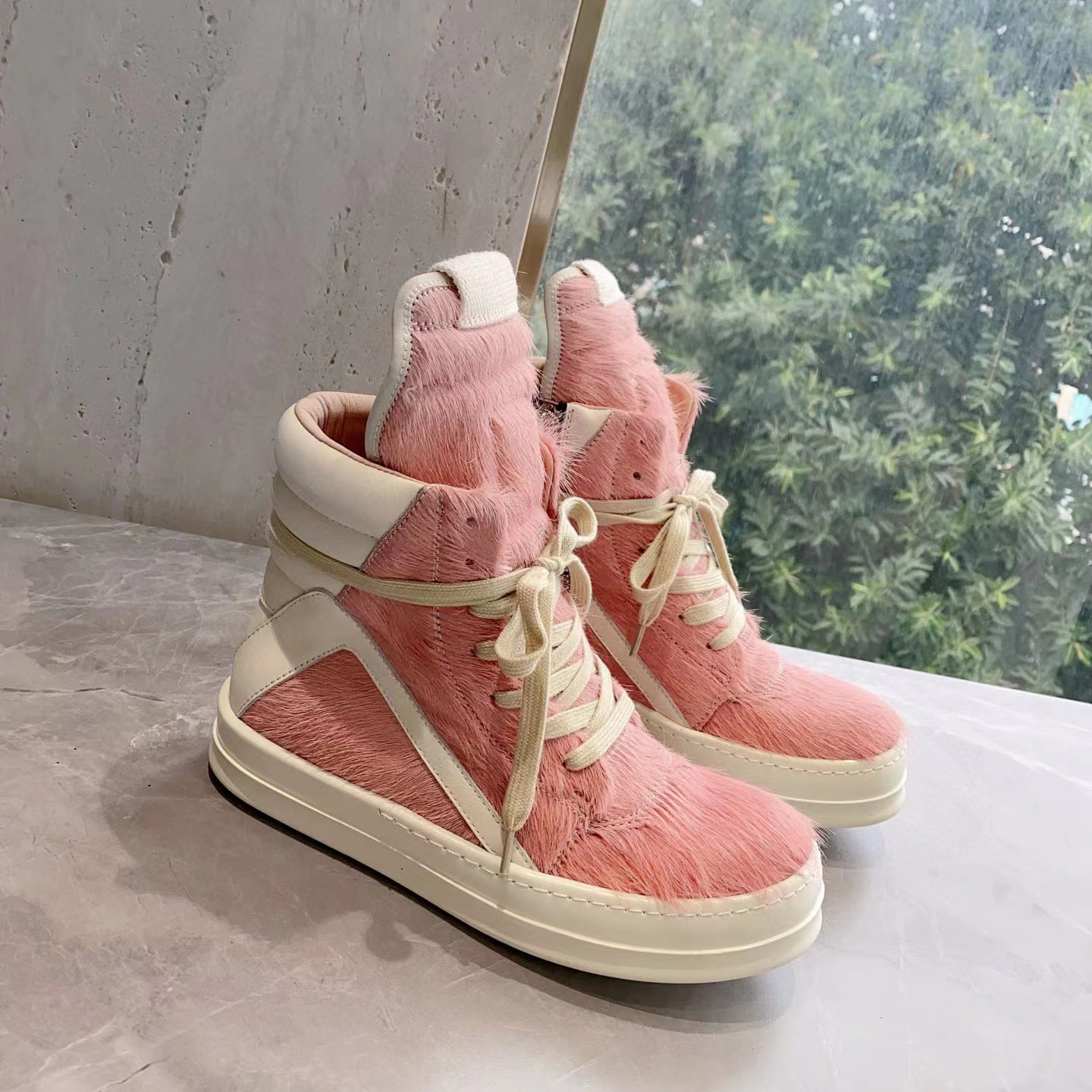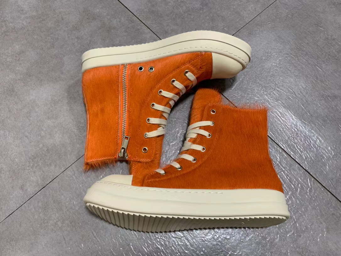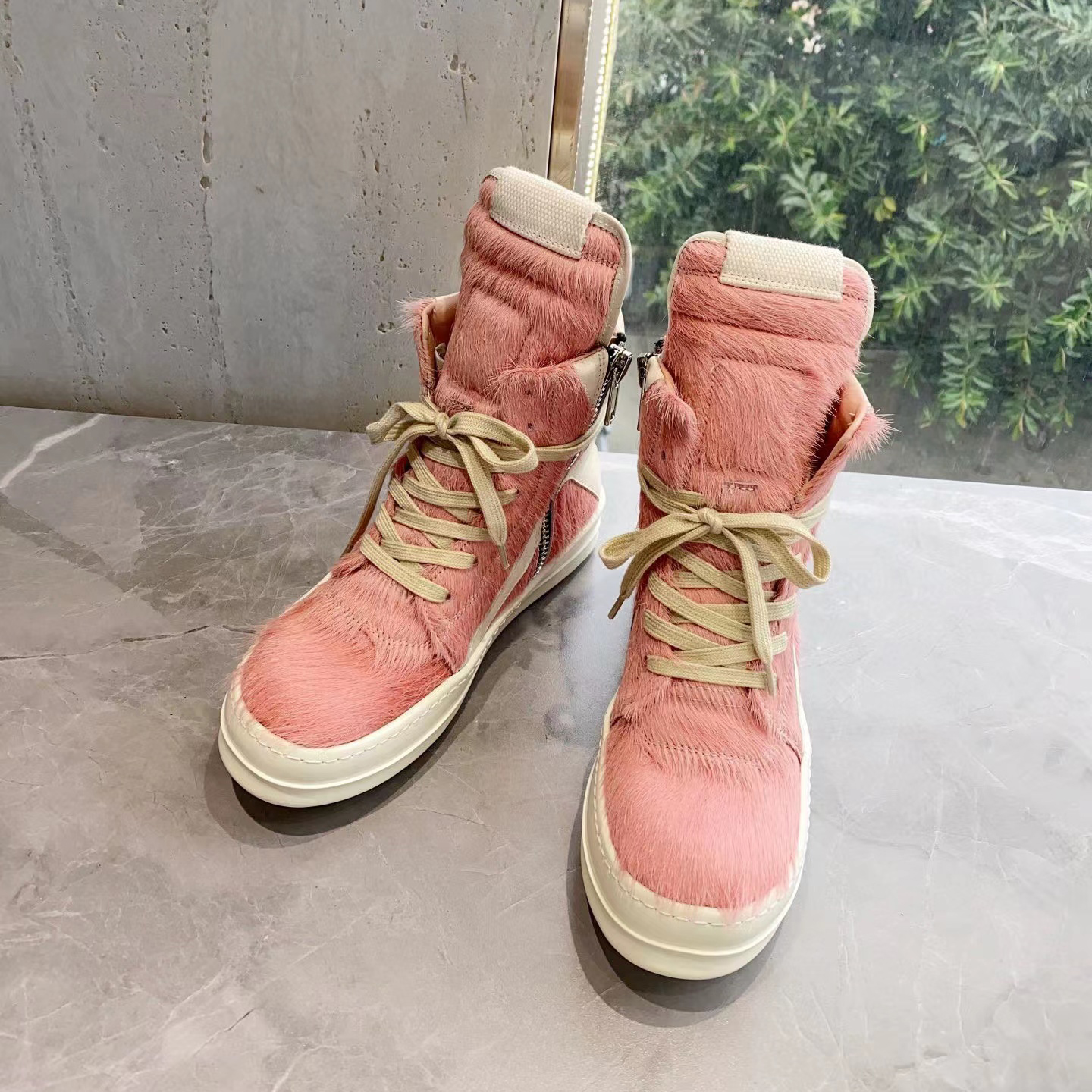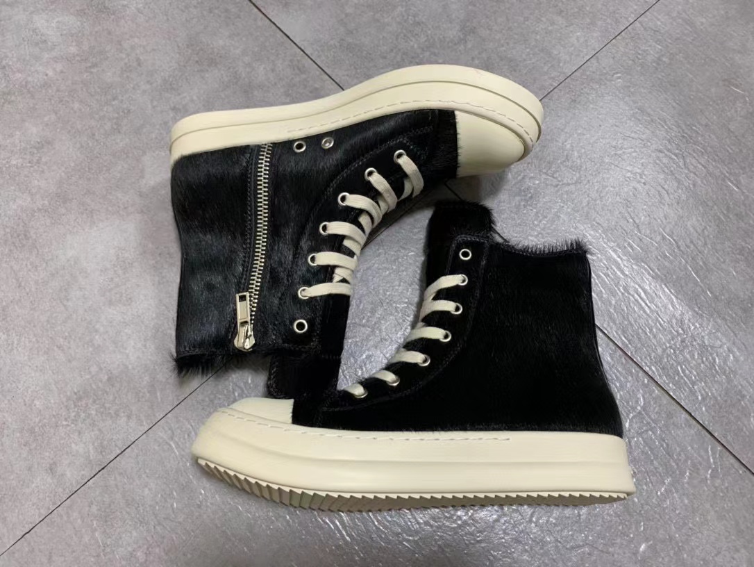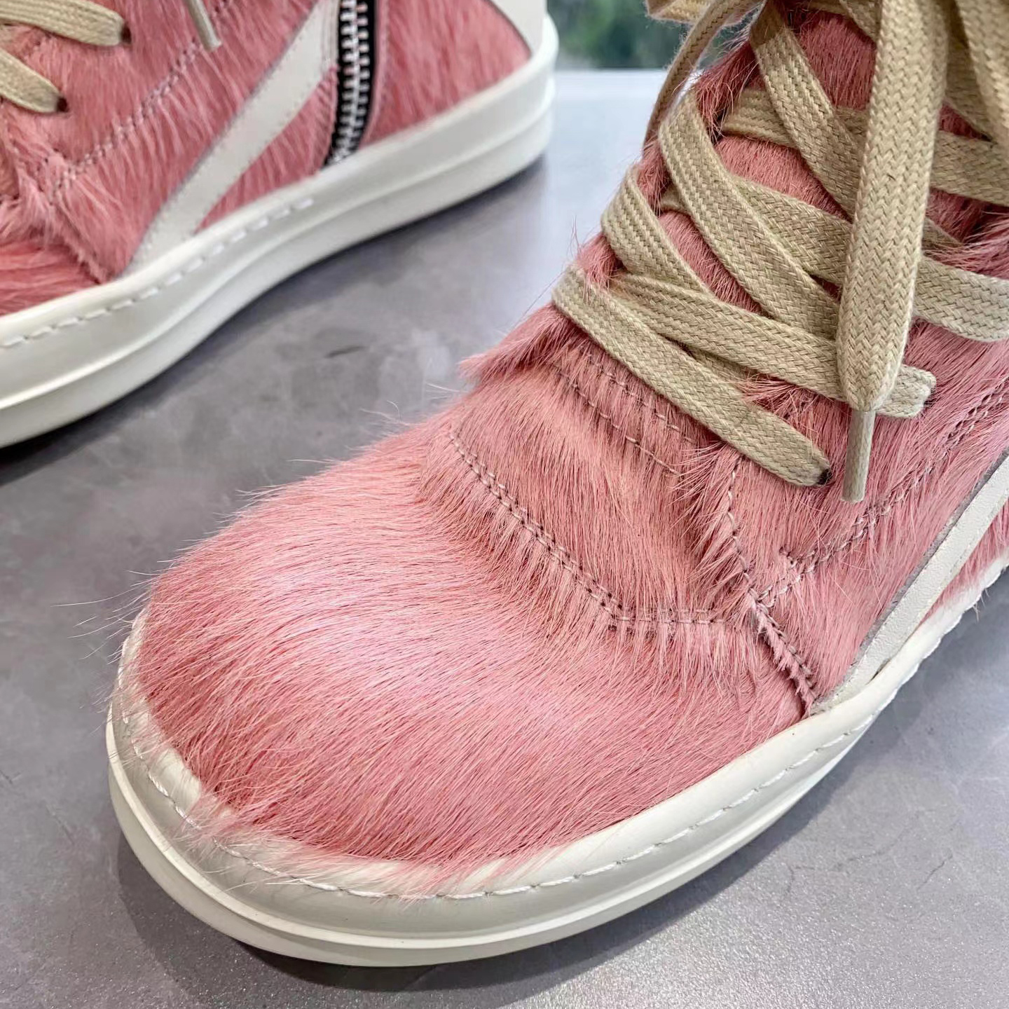 Rick Owens Mink Fur Cow Leather Lace up Boots Shoes #nigo56298