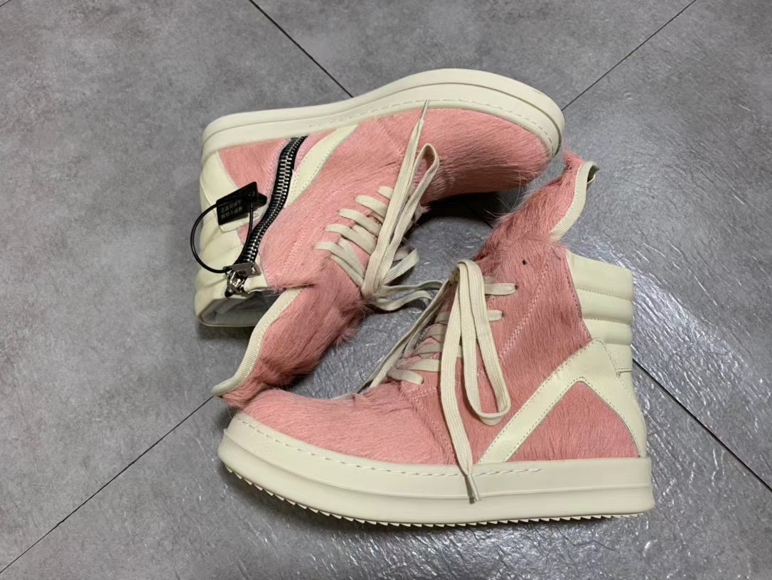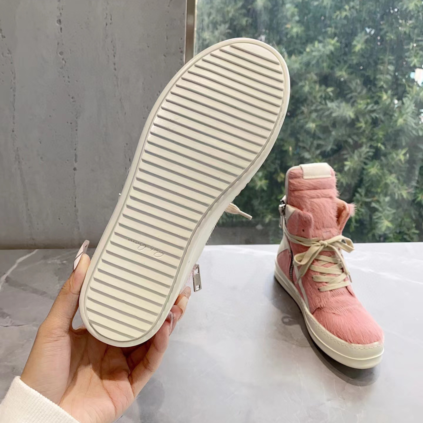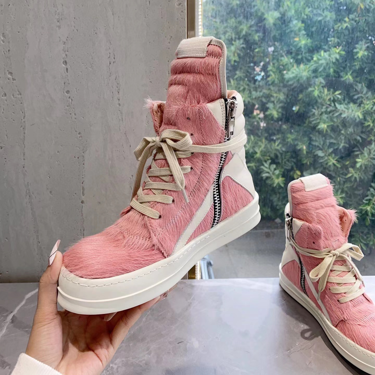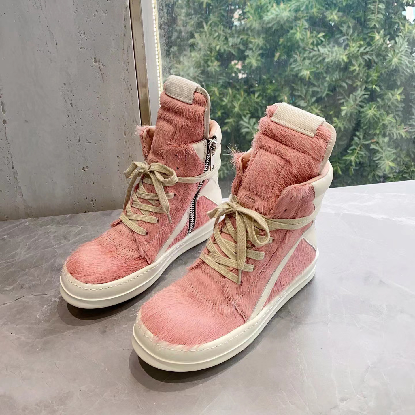 Rick Owens Mink Fur Cow Leather Lace up Boots Shoes #nigo56298