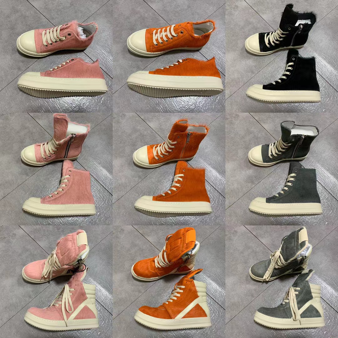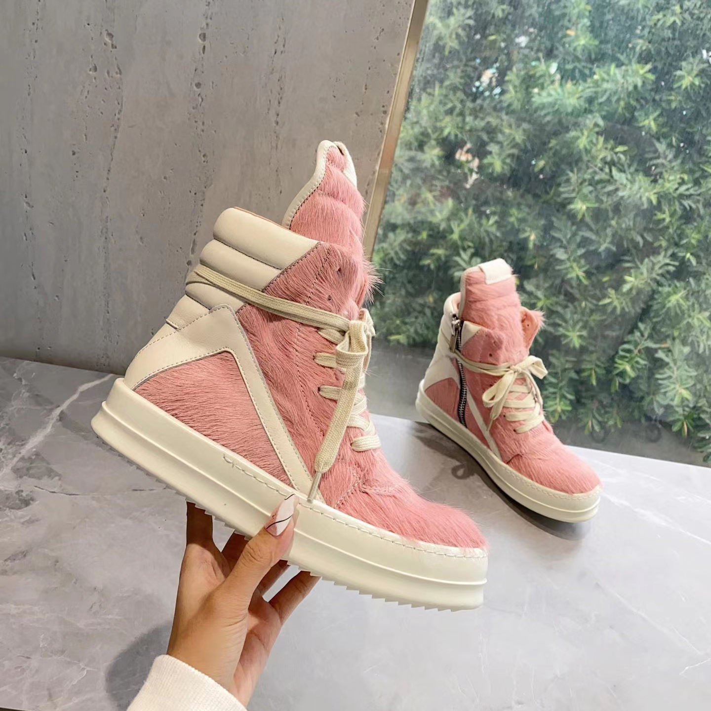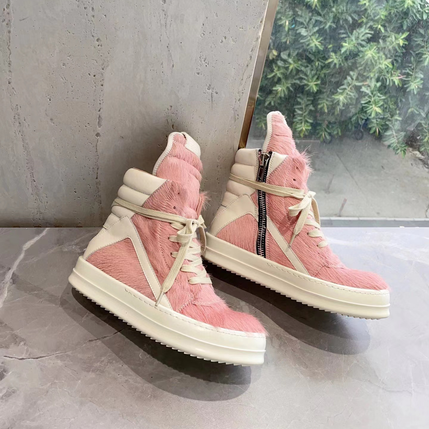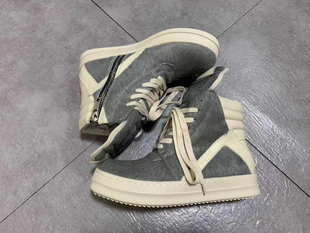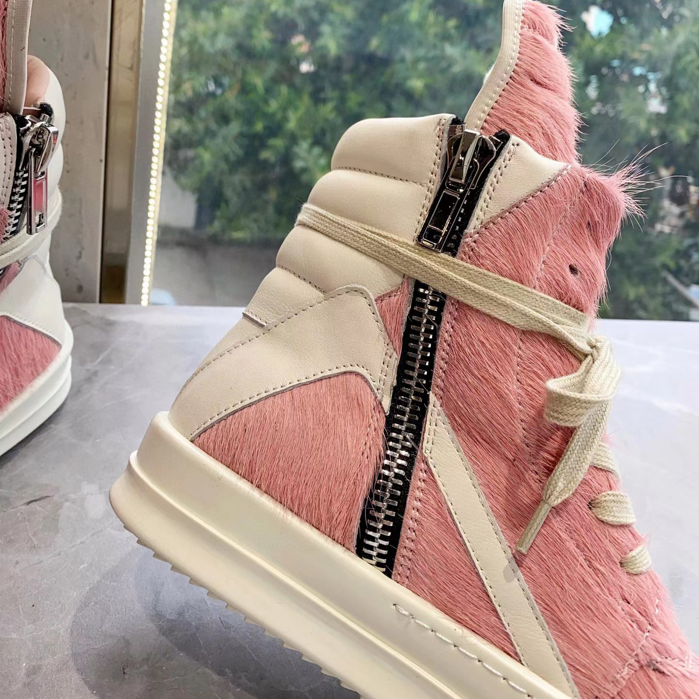 Rick Owens Mink Fur Cow Leather Lace up Boots Shoes #nigo56298