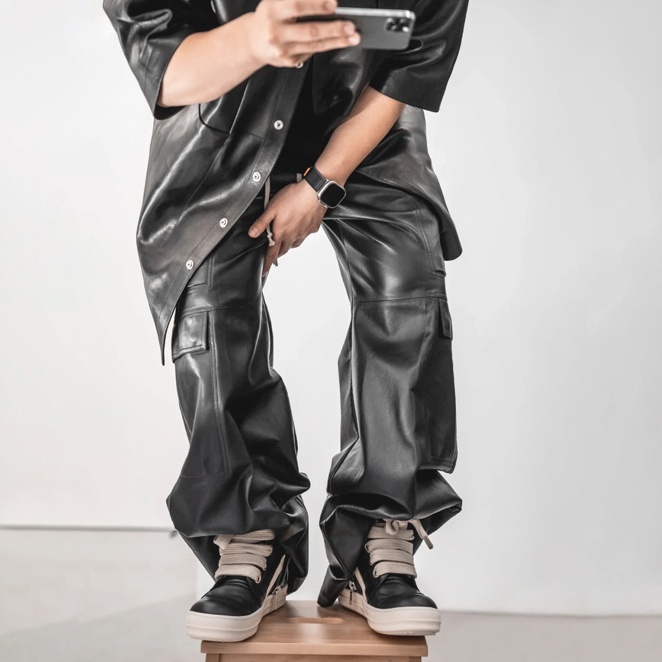 Rick Owens Multi-Pocket Leather Loose Fit Work Pants Ngvp #nigo6625