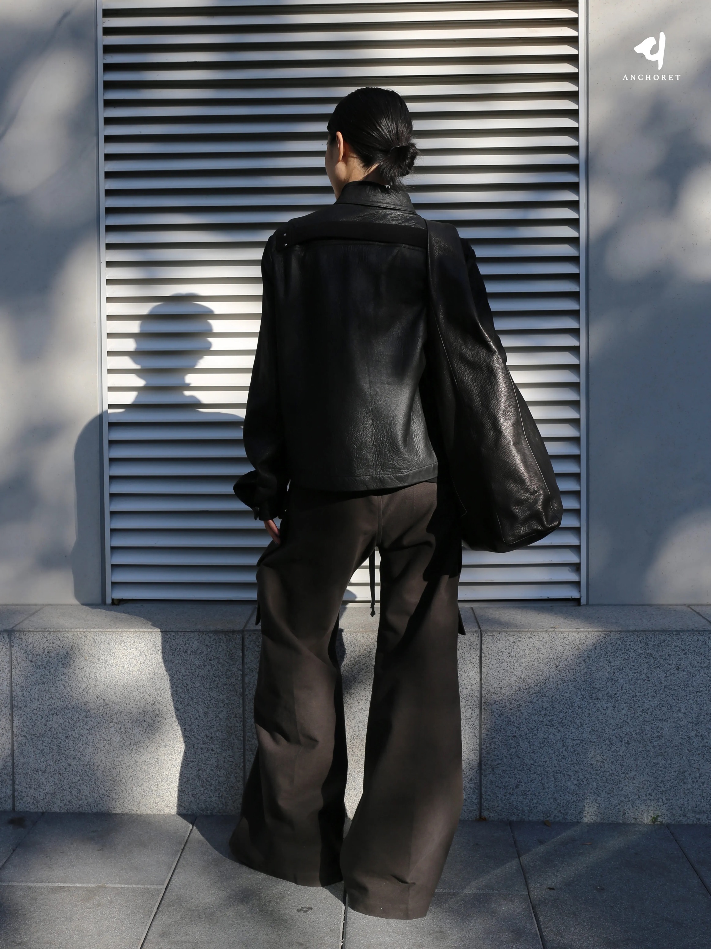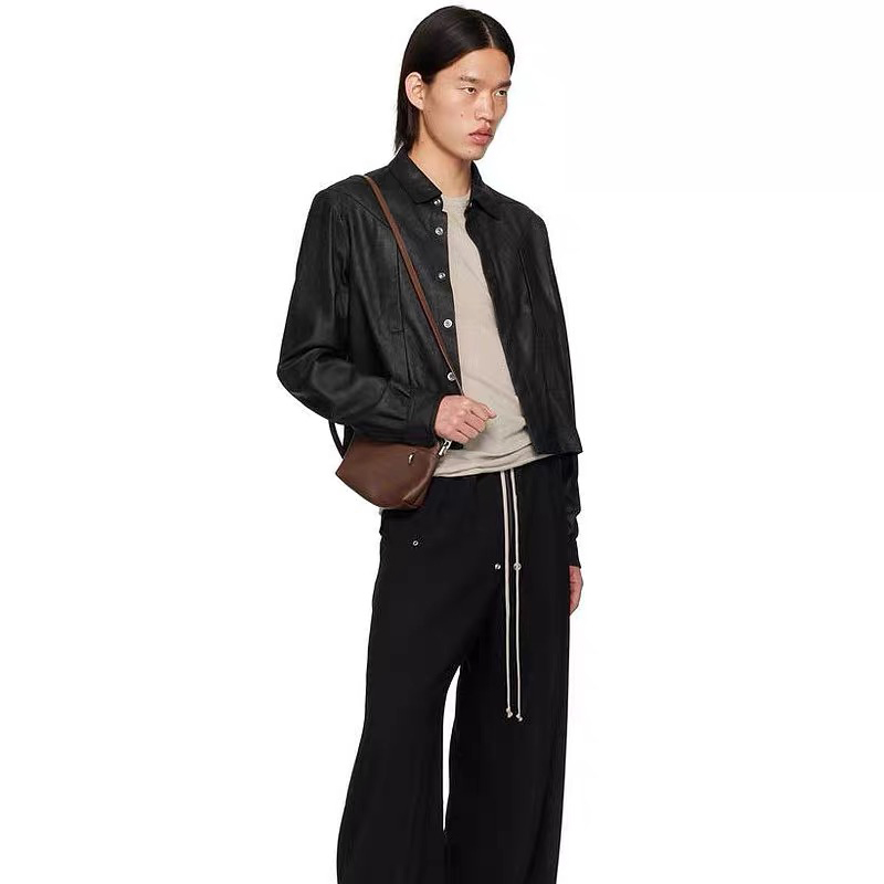 NIGO Rick Owens Men's Spring And Fall Single-Breasted Solid Color Long Sleeve Fitted Short Leather Shirt Ngvp #nigo1162