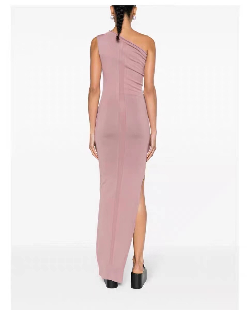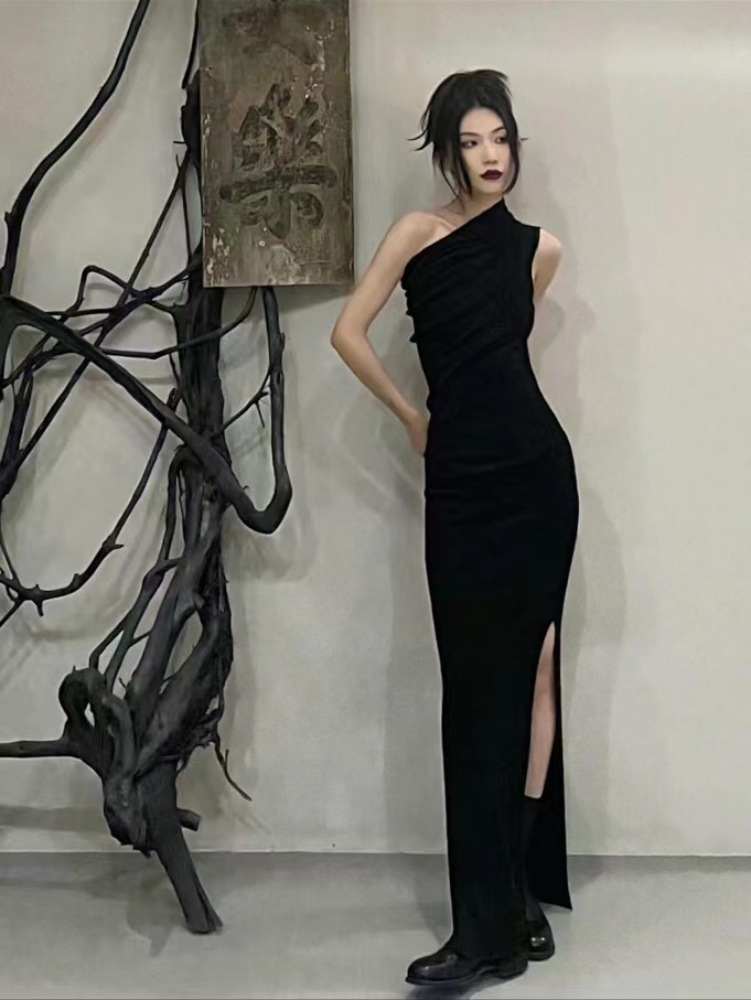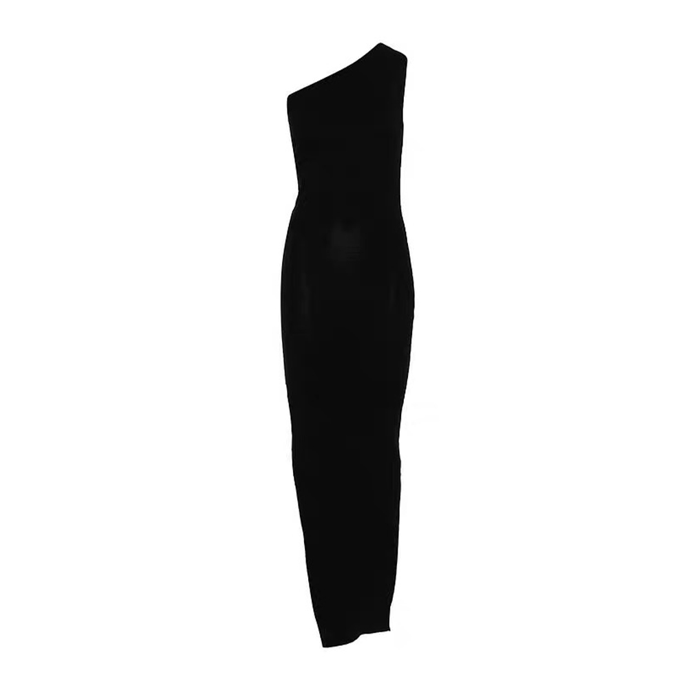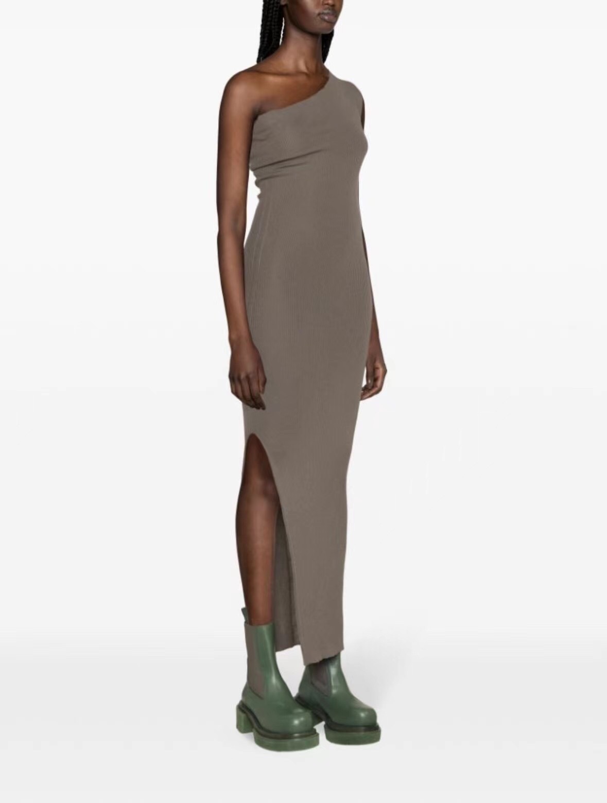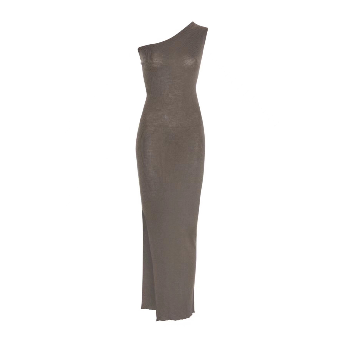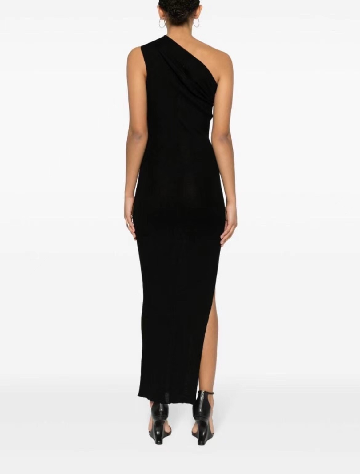 NIGO Rick Owens Women's Summer Slant Shoulder Slim Wool Side Slit Sleeveless Solid Color Dresses #nigo81161